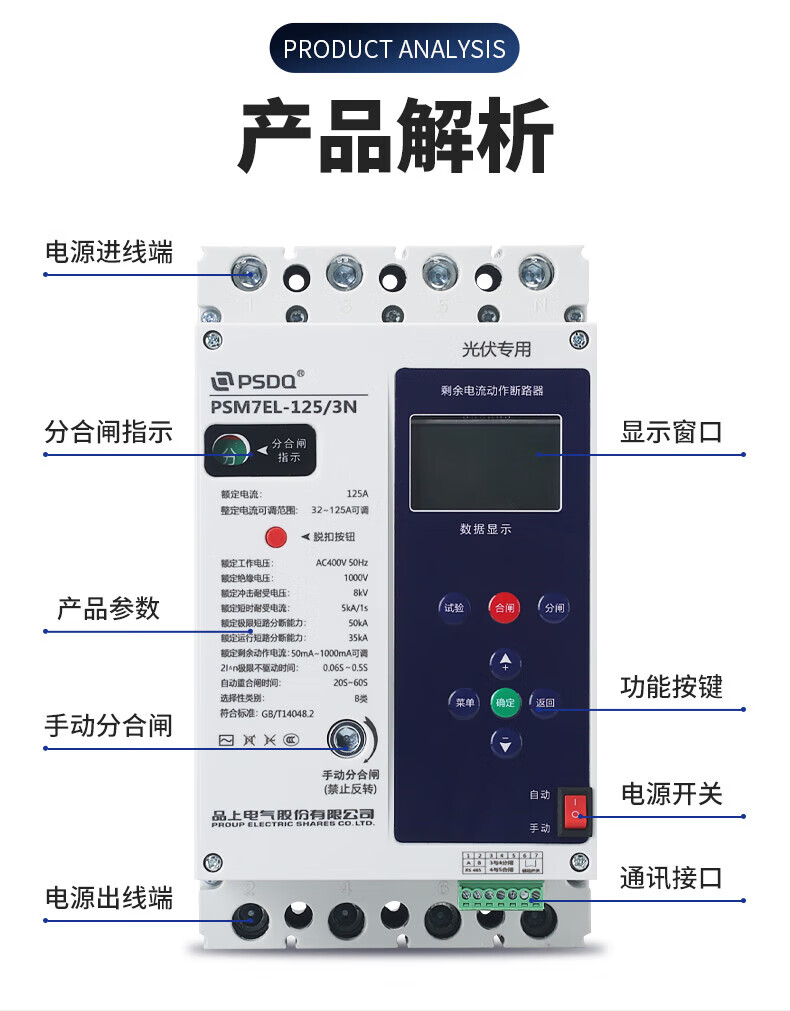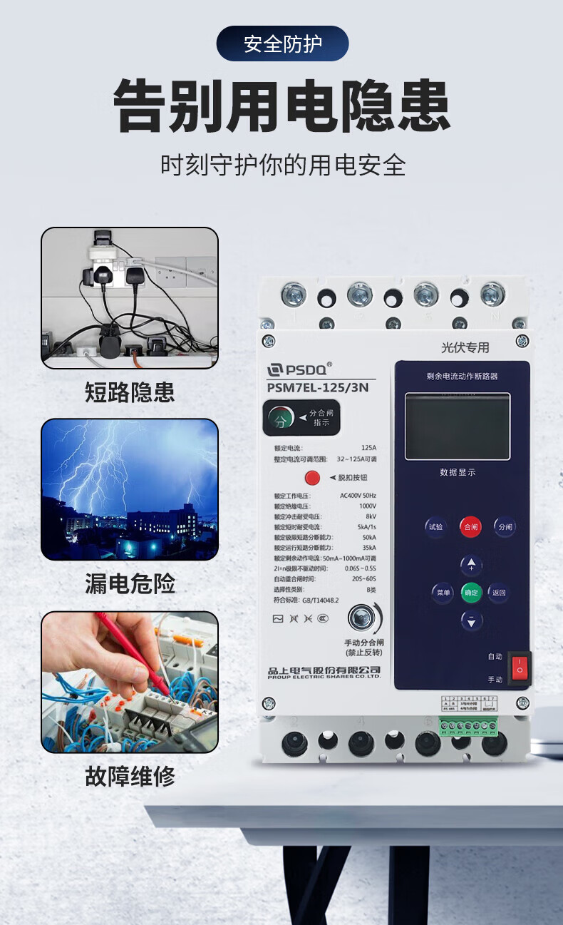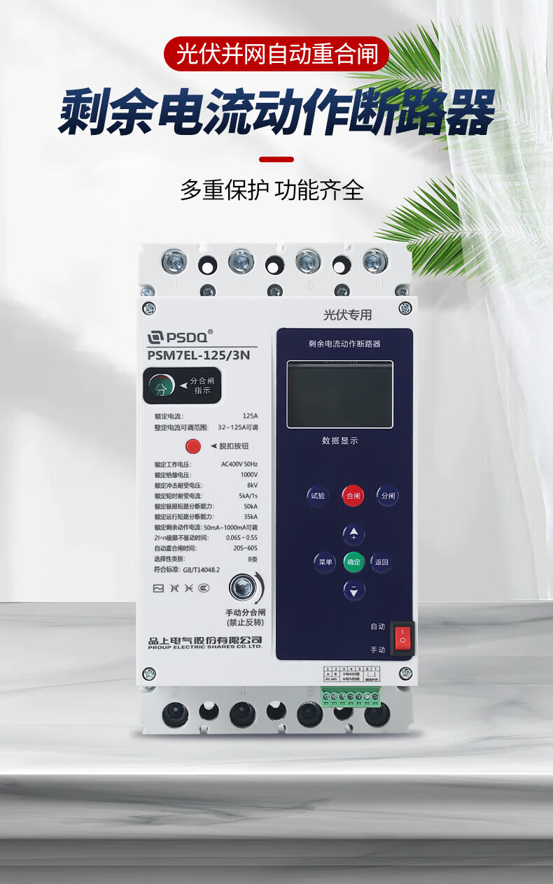 MPPMCK automatic reclosing three-phase leakage protector 380V phase loss over and under voltage zero protection photovoltaic circuit breaker 630A