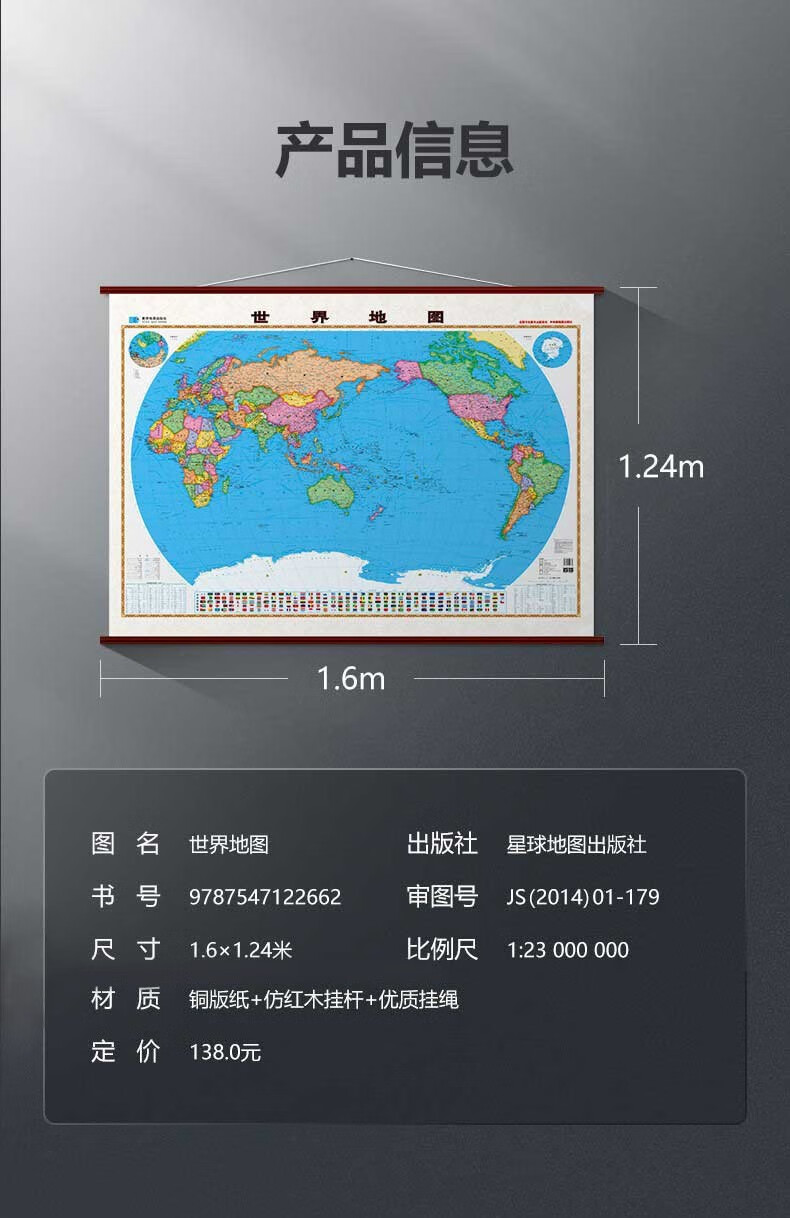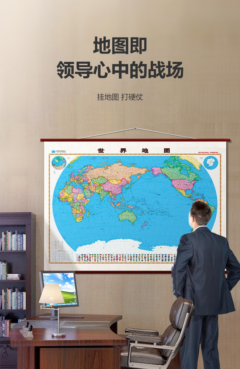 World map wall chart hardcover lanyard version living room/office background wall decoration hanging picture 2.4x1.77m world map extra large
