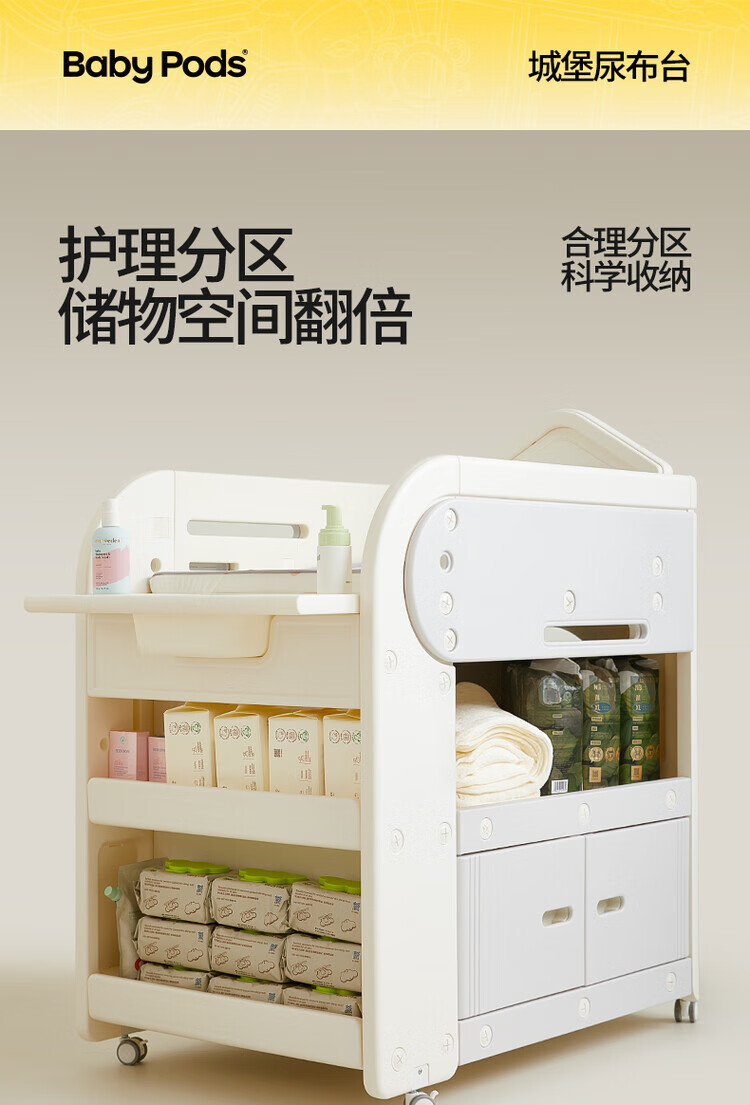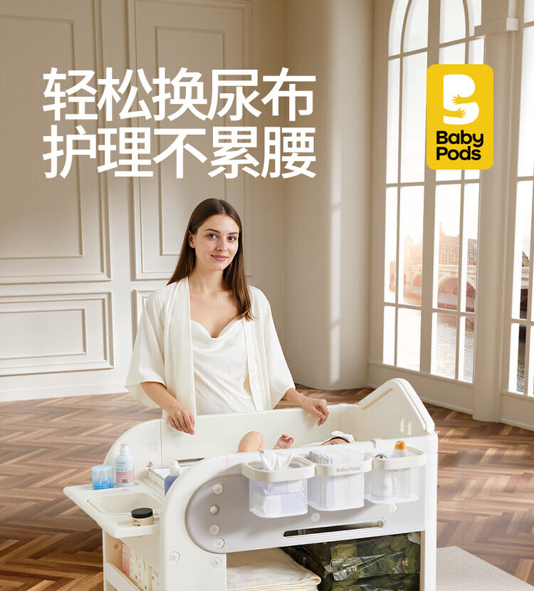 babypodsbabypods尿布台宝宝护理台新生婴儿床多功能移动换尿布幼儿洗澡台 【隔尿防水】多功能护理台+防尿垫+矽胶垫+挂篮 其他 组装 框架结构