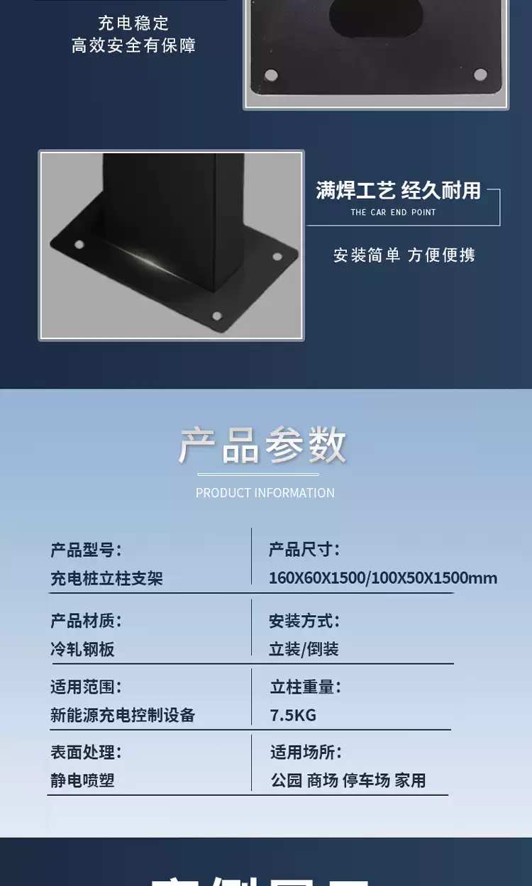 Mihong Charging Pile Pole Tengshi Wuling Chery Aian Xiaopeng Asking the World Lynk & Co Extreme Fox Fixed Bracket Outdoor Upside Down 1.5 Meter Black Thickened Model 60x160 Official Standard