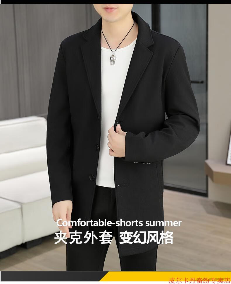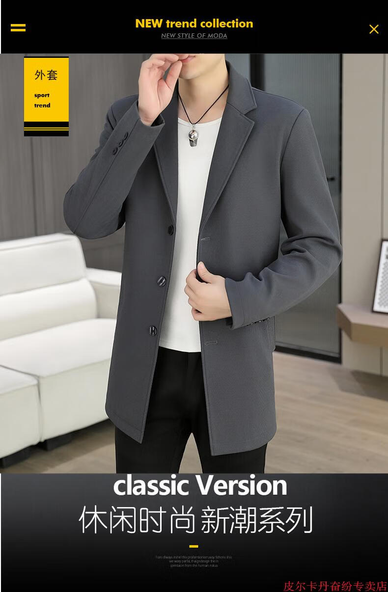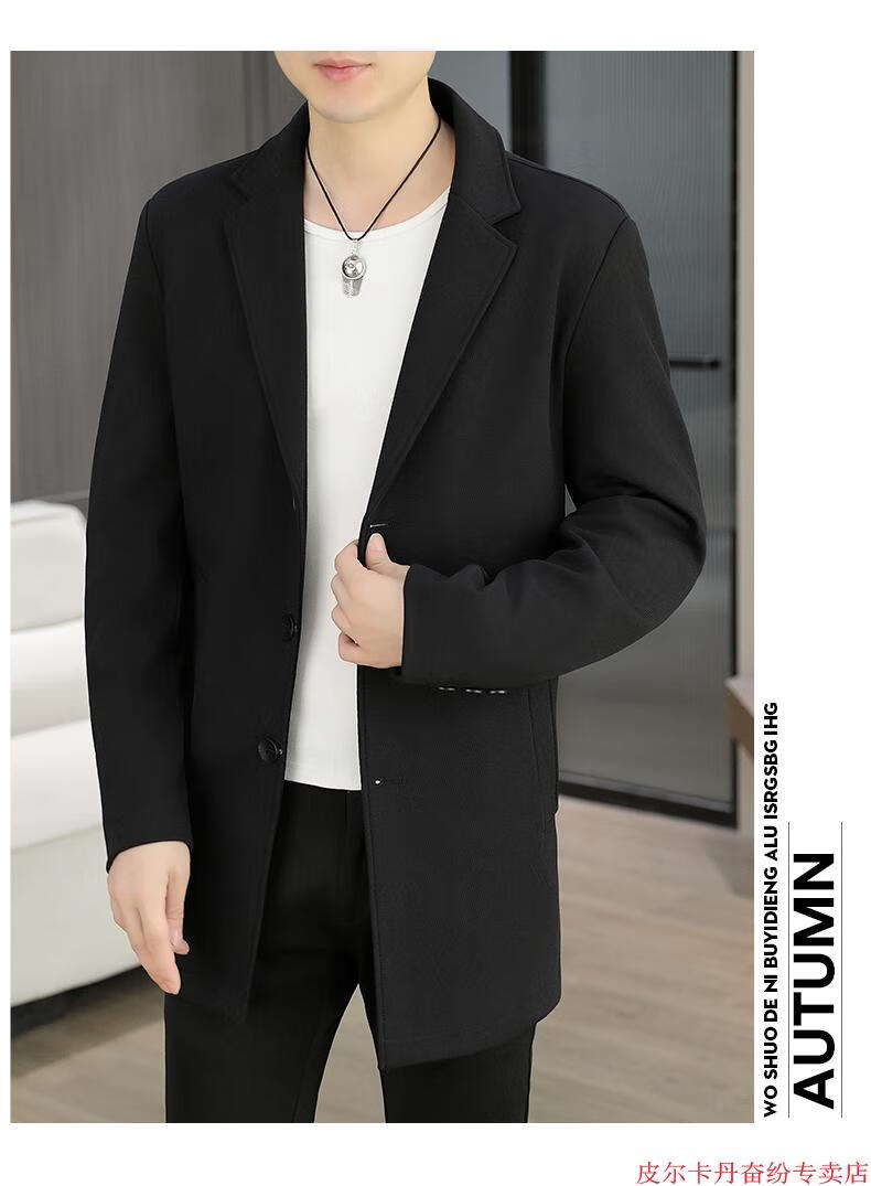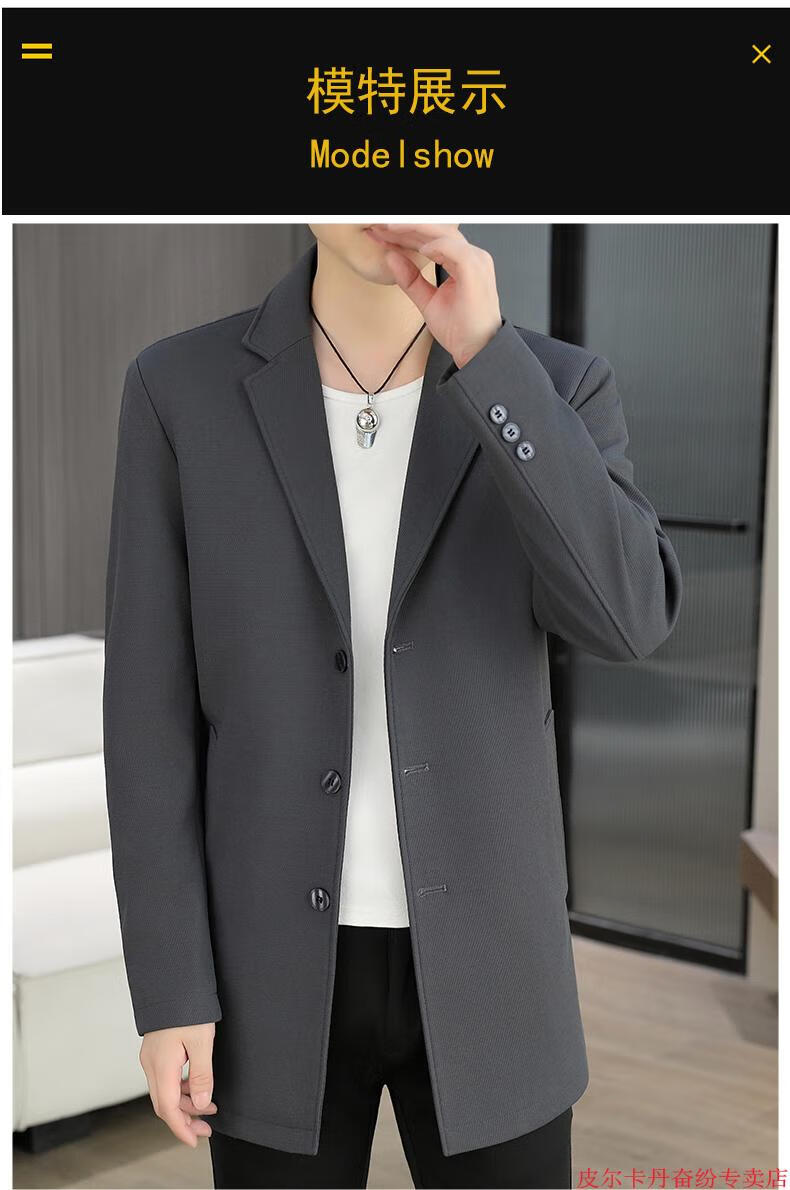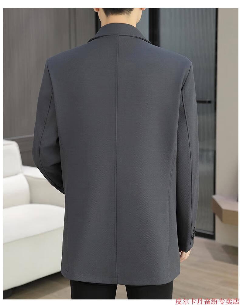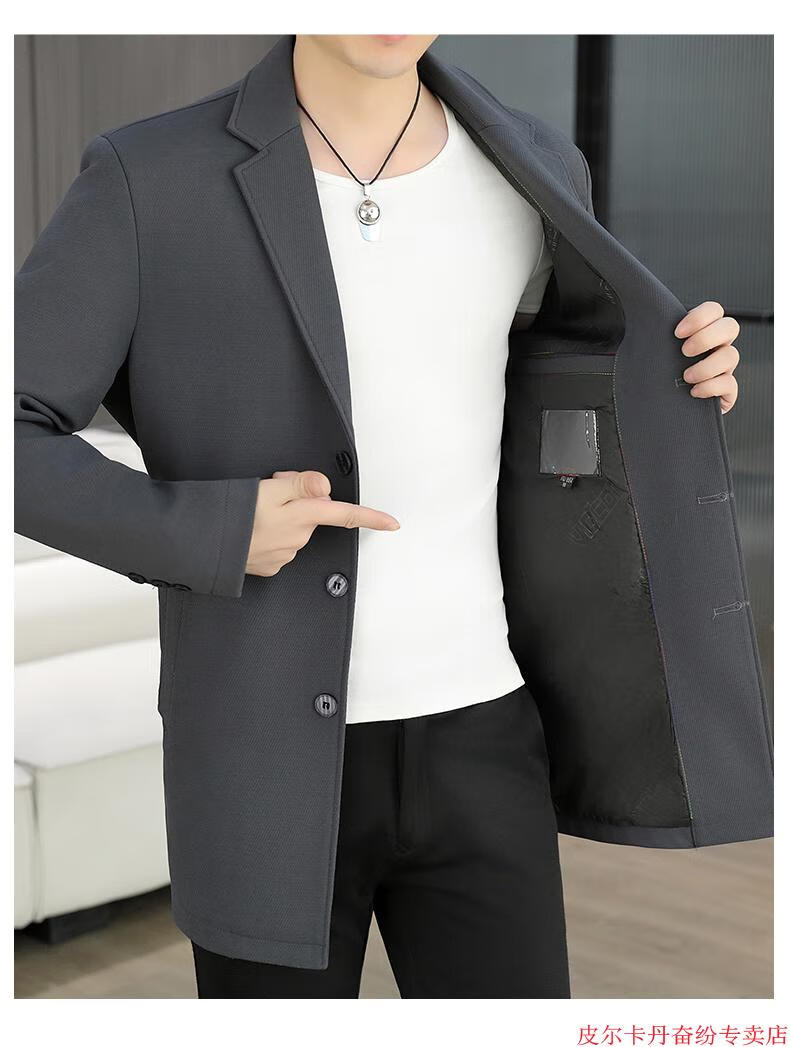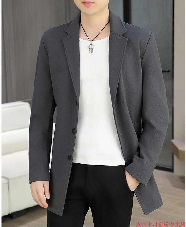 皮尔卡丹(pierre cardin)春秋季中长款风衣男士潮牌感韩版修身纯色西装外套男休闲西服针织 灰色 L 110-125斤