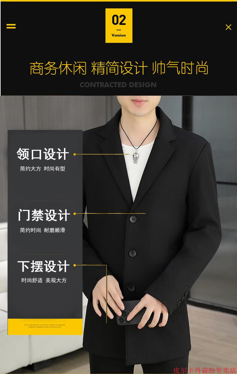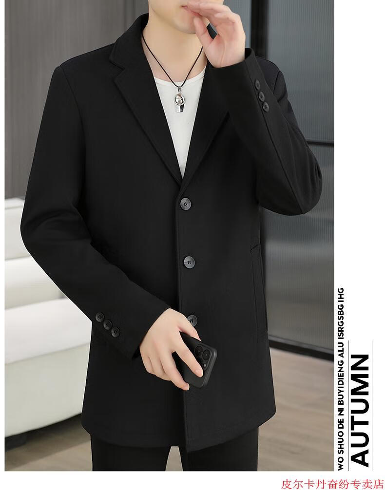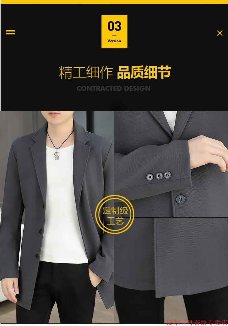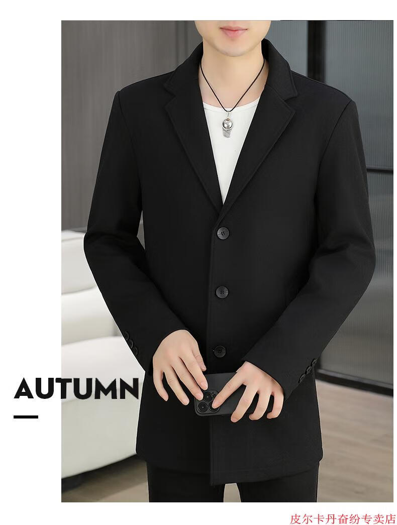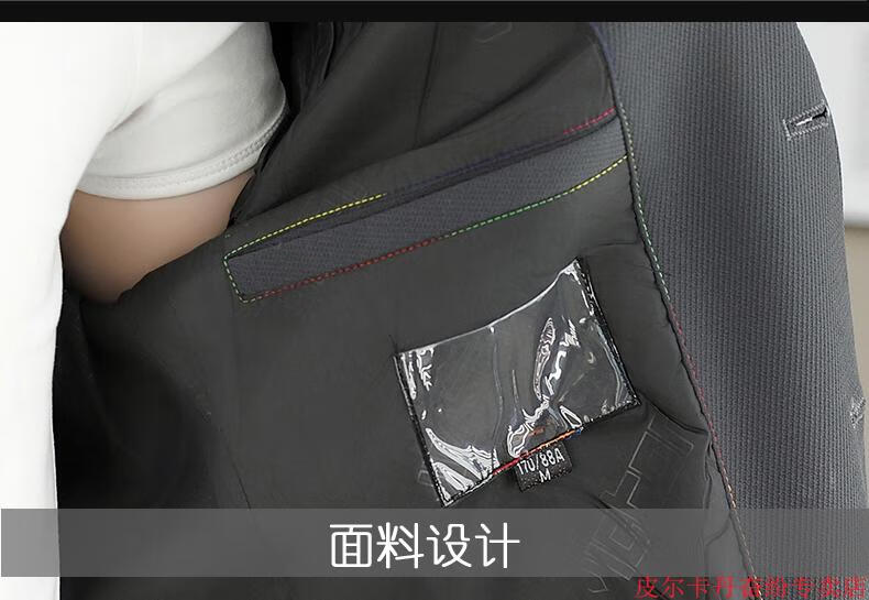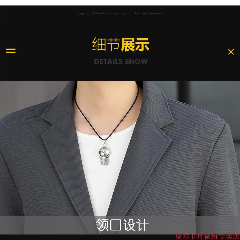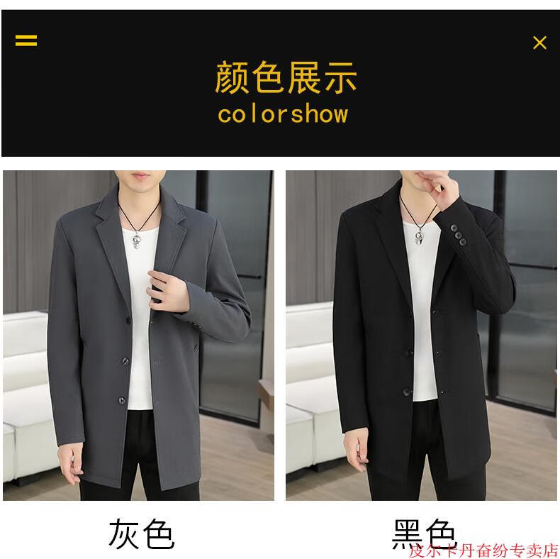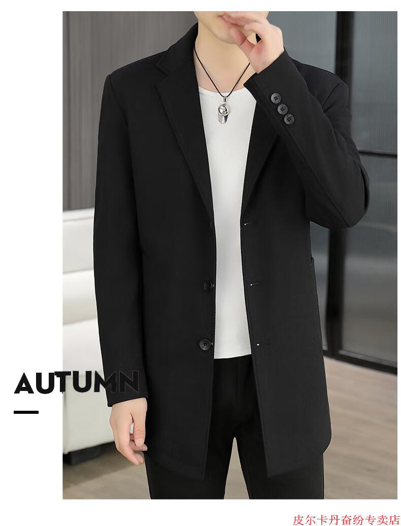 皮尔卡丹(pierre cardin)春秋季中长款风衣男士潮牌感韩版修身纯色西装外套男休闲西服针织 灰色 L 110-125斤