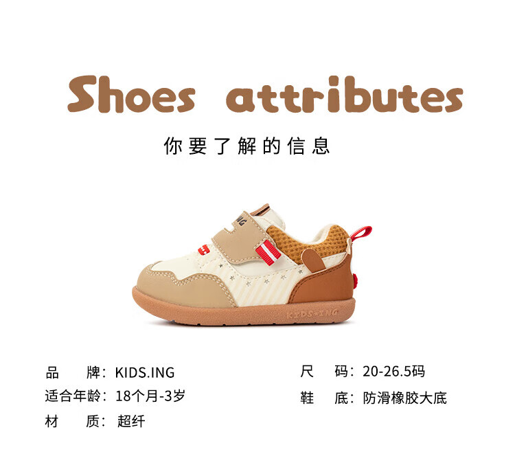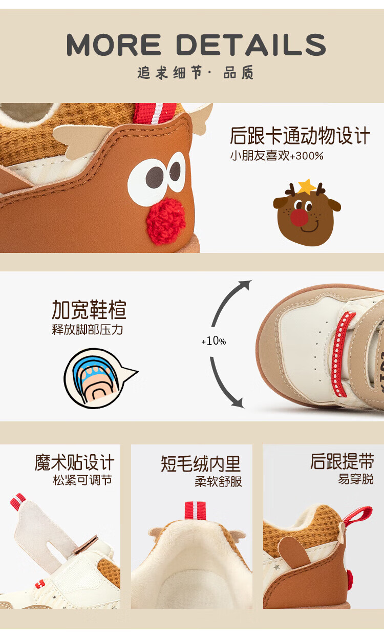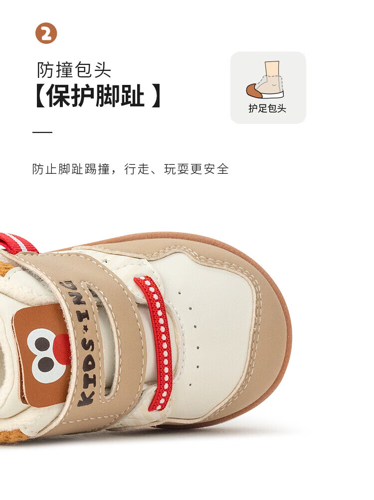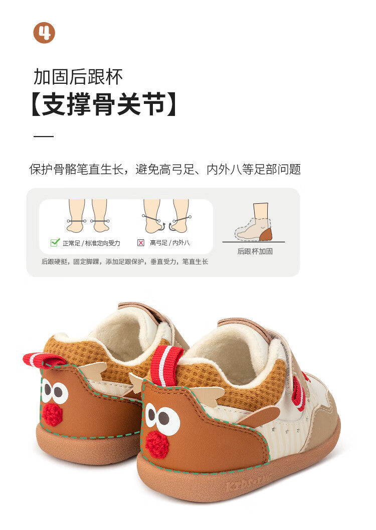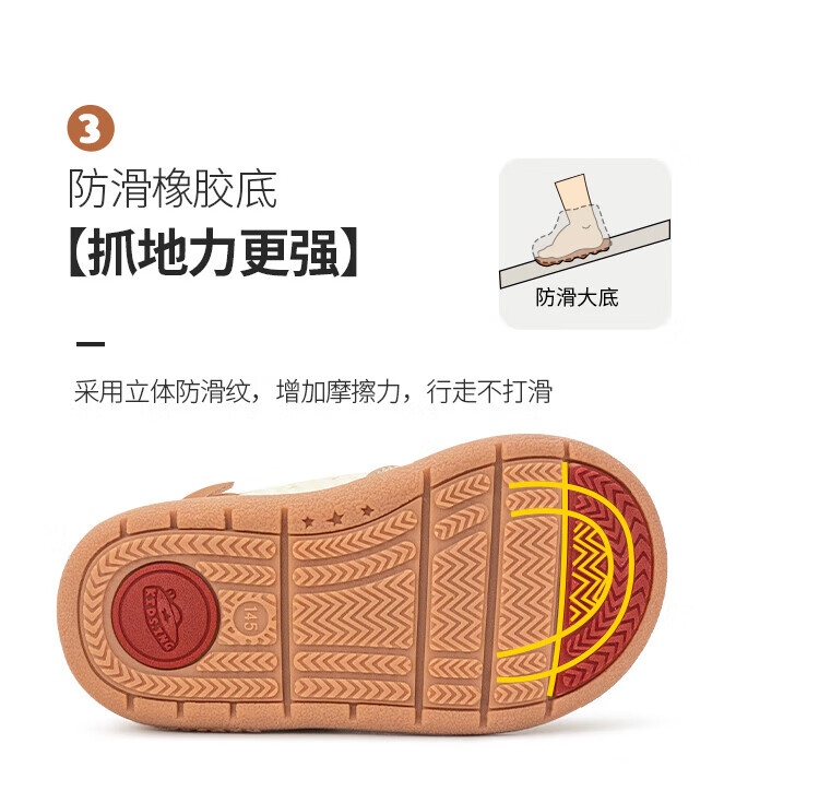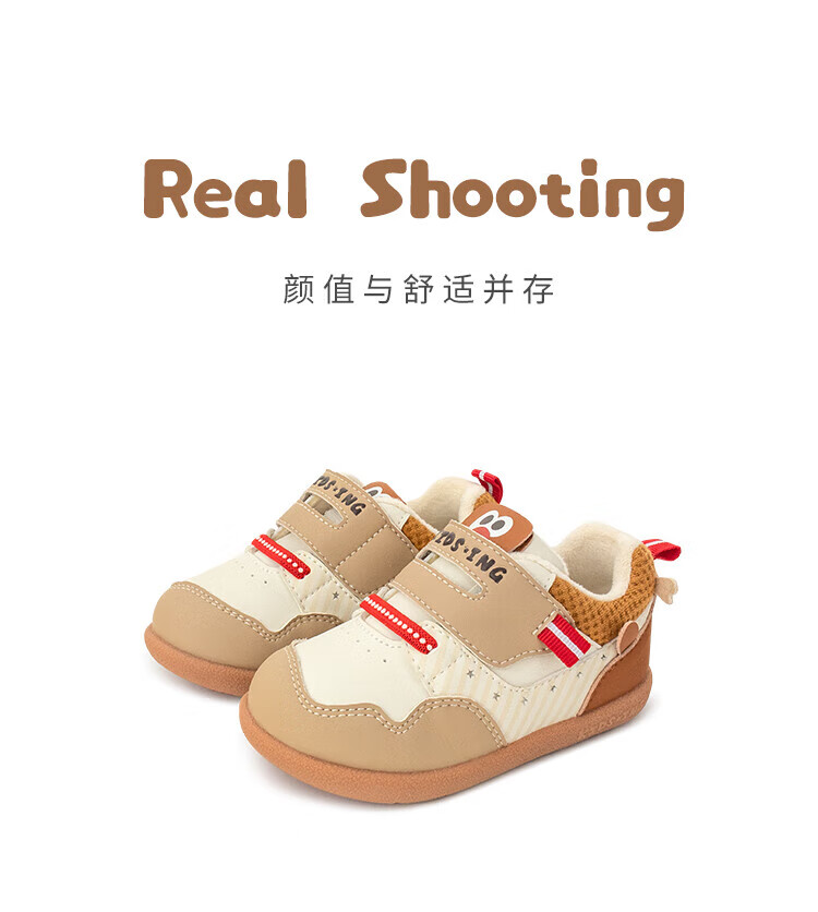 kids.ing可迪星宝宝加绒学步鞋秋冬款男女童小童棉鞋软底机能鞋童鞋 米/卡其 小麋鹿 26.5 适合脚长15.1-15.5cm