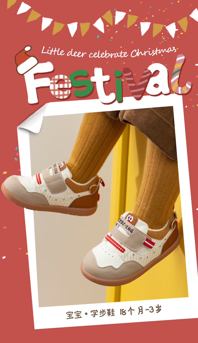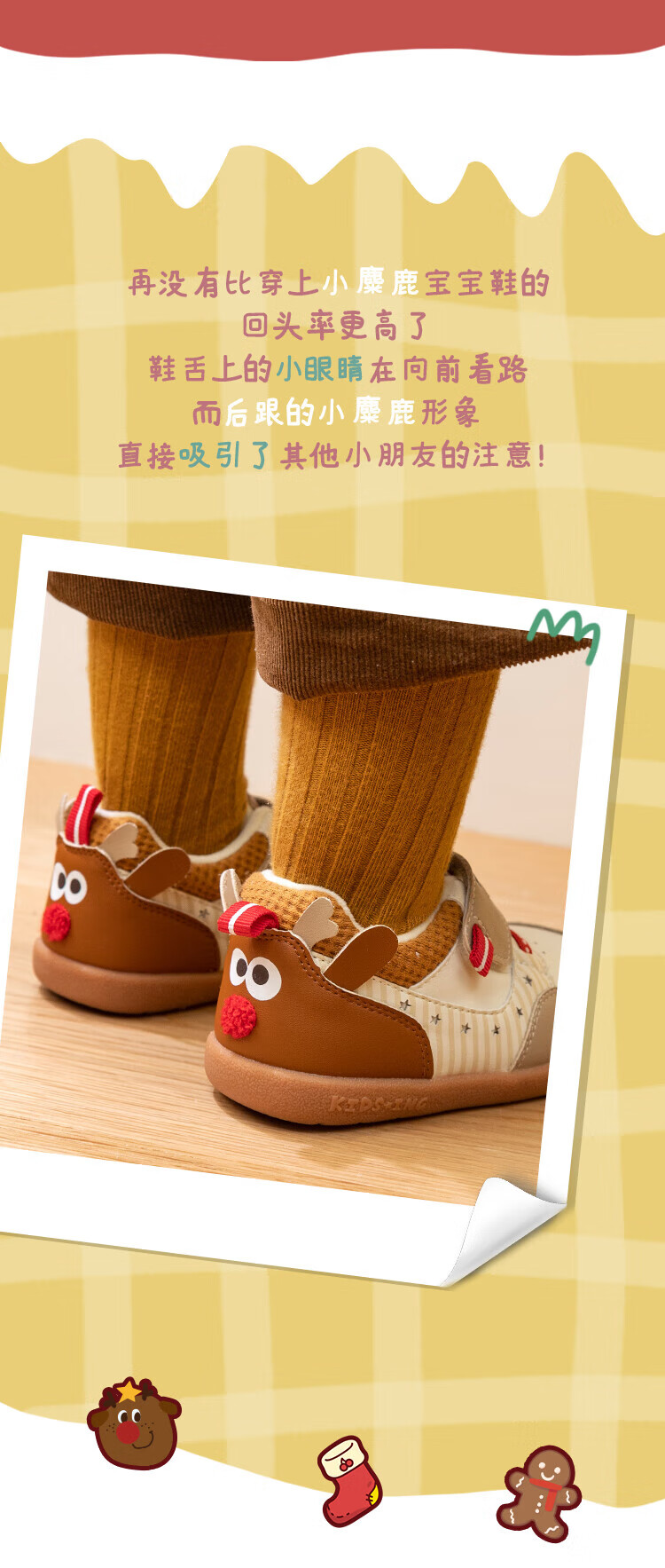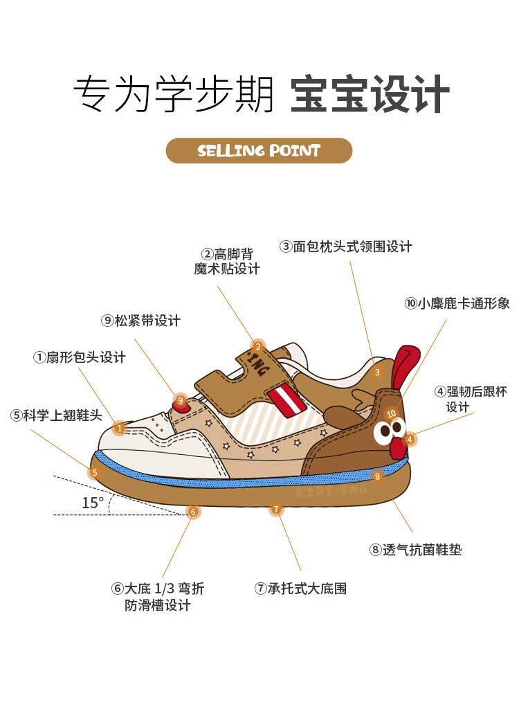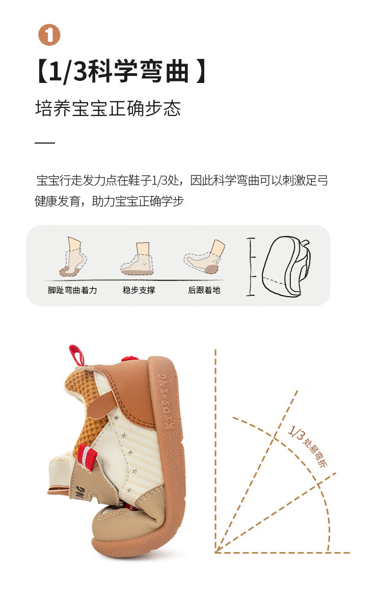 kids.ing可迪星宝宝加绒学步鞋秋冬款男女童小童棉鞋软底机能鞋童鞋 米/卡其 小麋鹿 26.5 适合脚长15.1-15.5cm