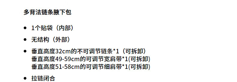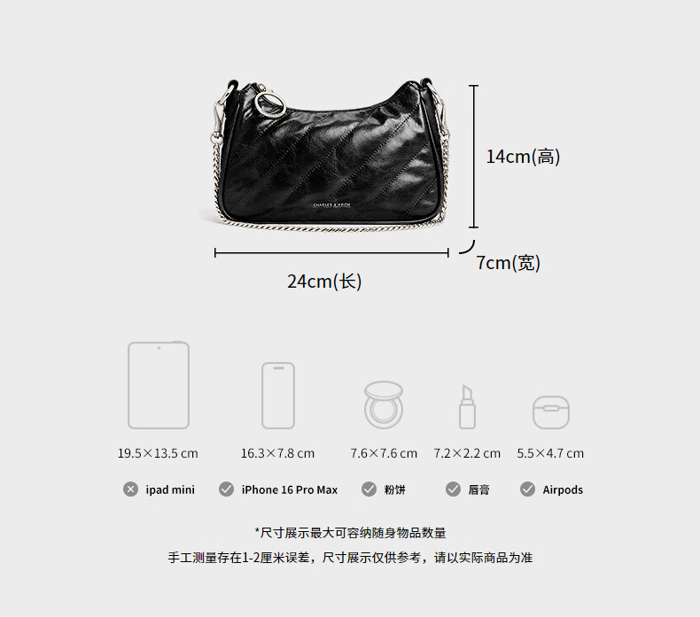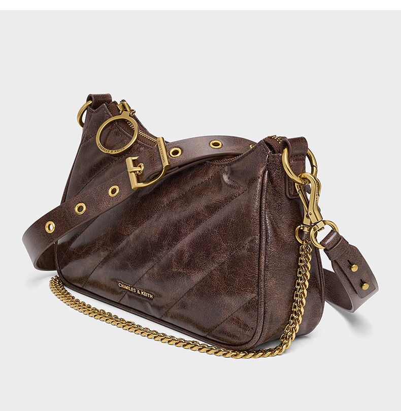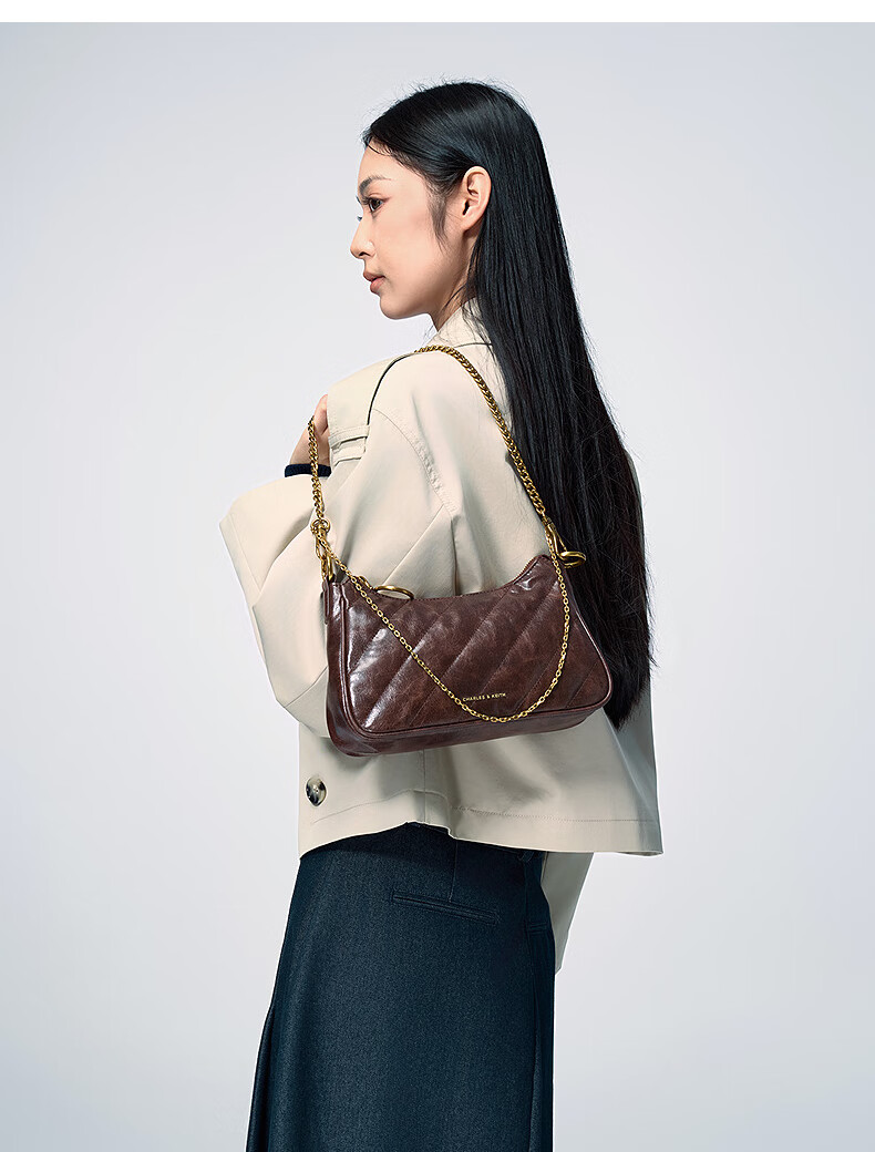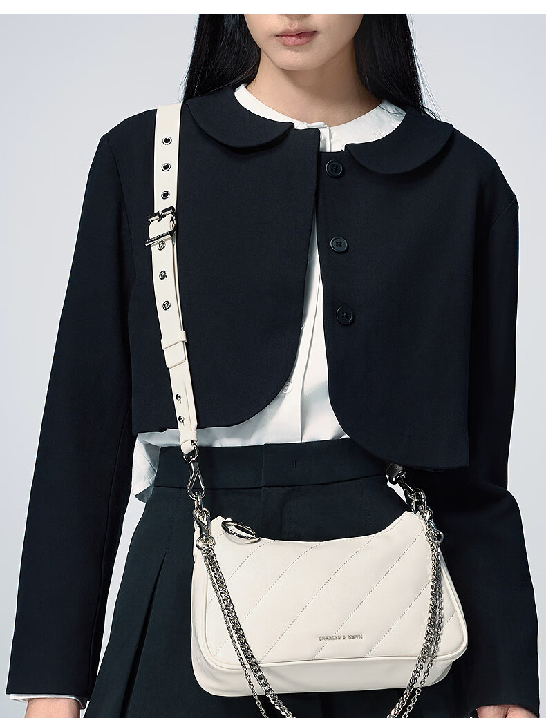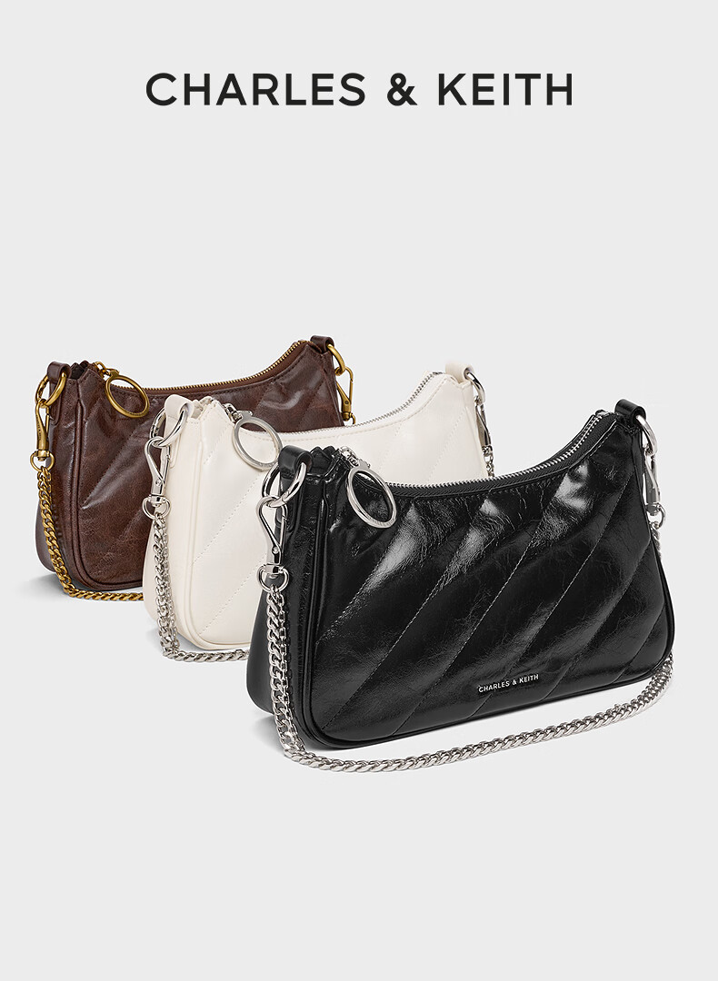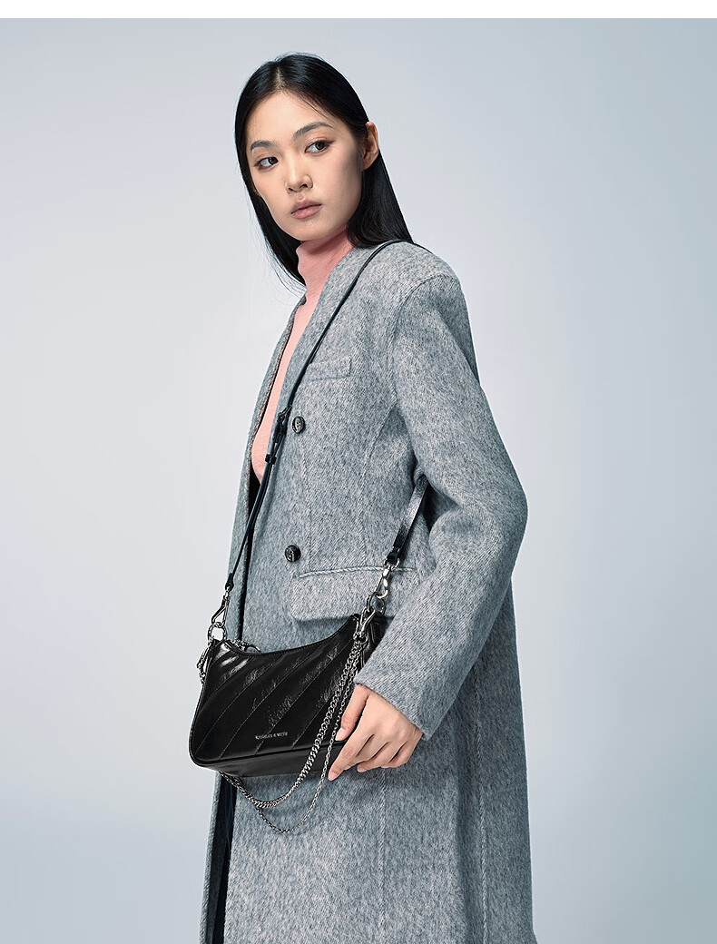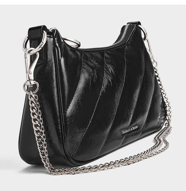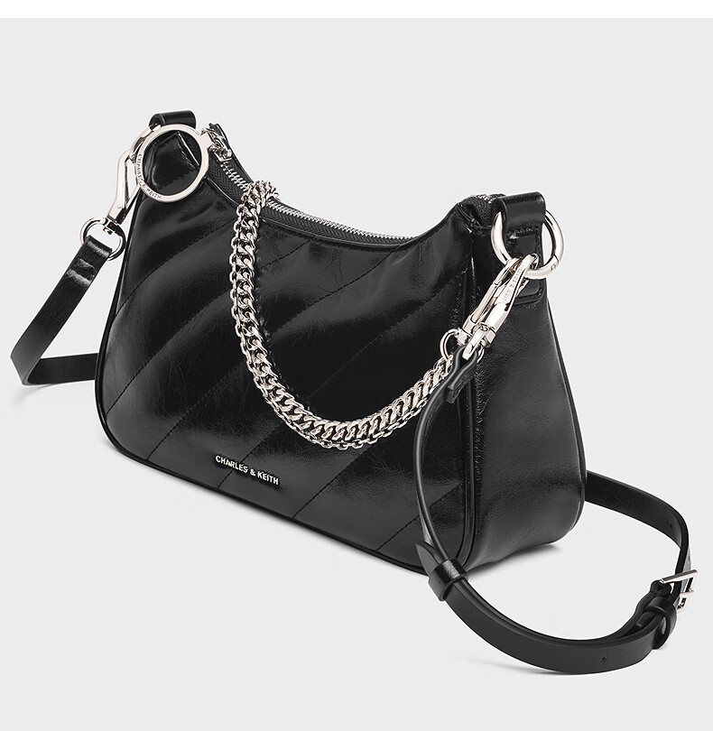 CHARLES&KEITH25冬新品多背法链条腋下包斜挎包女CK2-80151347-3 Noir黑色 M