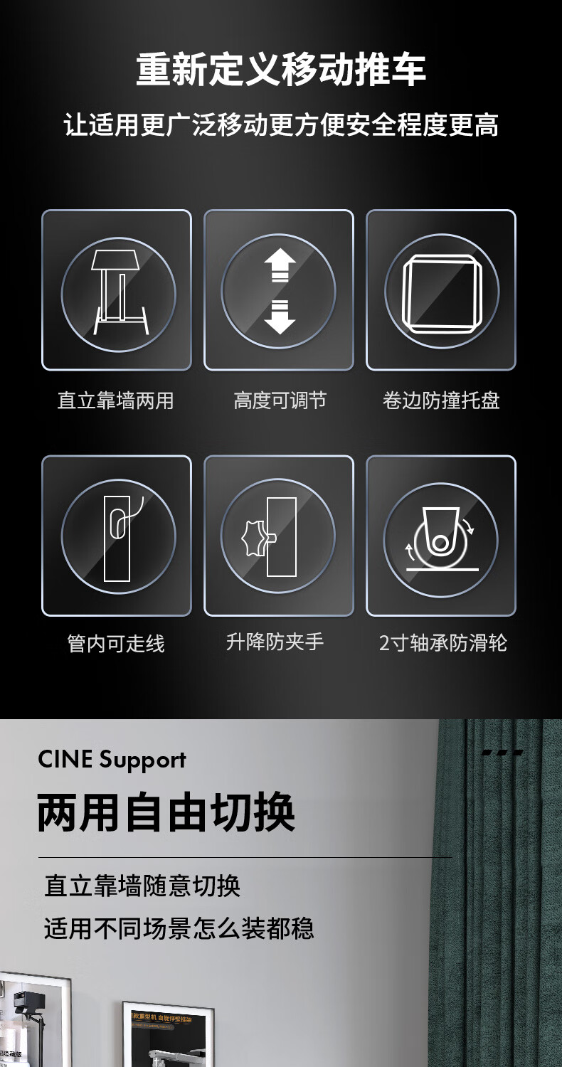 思影(CINE)Z05L投影仪带轮支架落地升降工作台投影机通用托盘升降架激光电视移动支架家用置物架 Z05L(80-125cm升降)