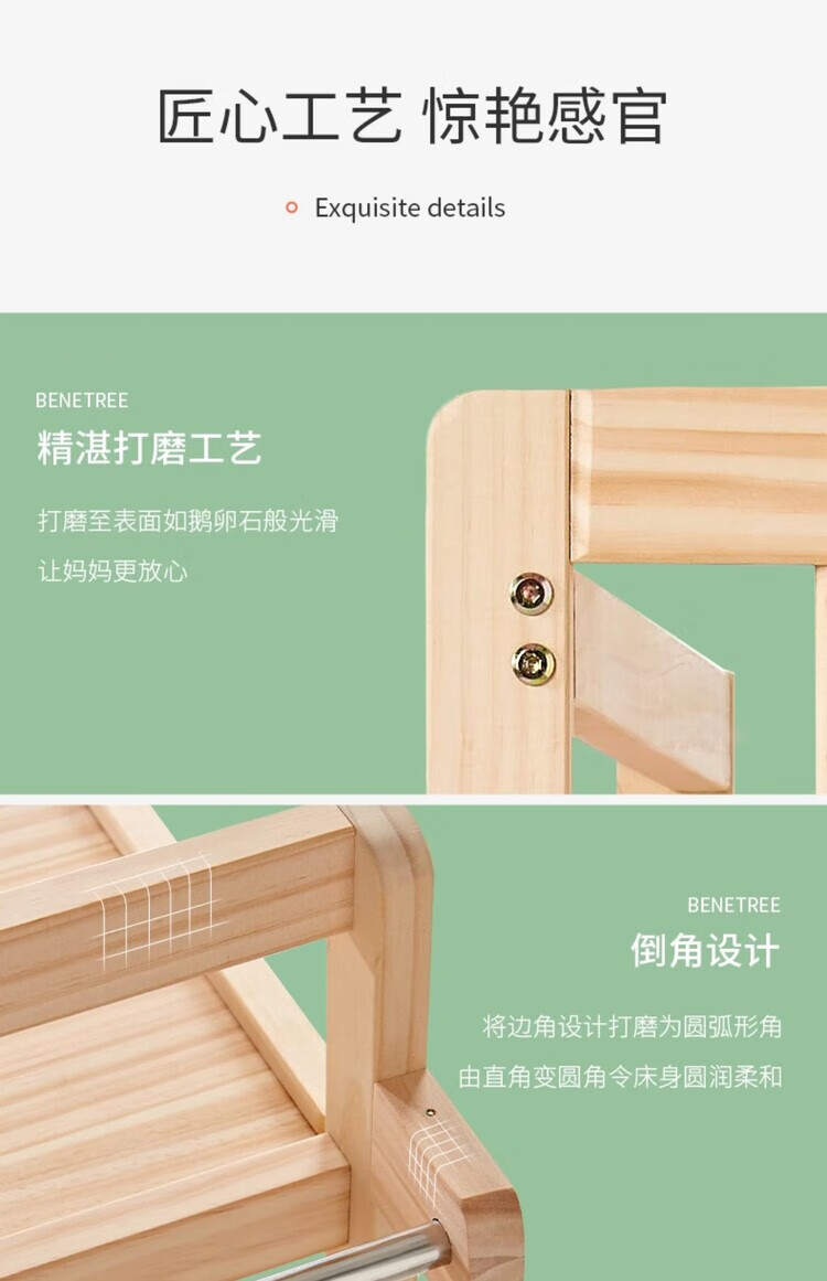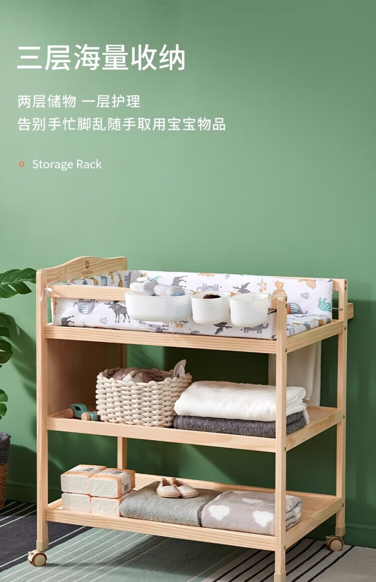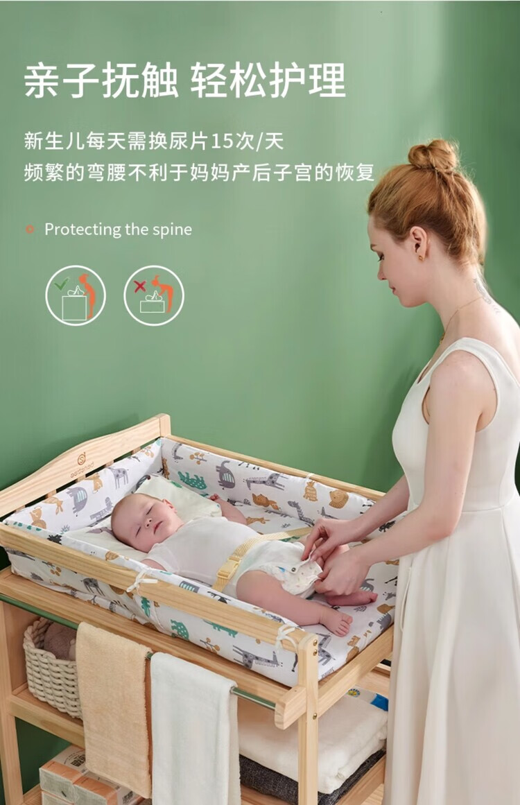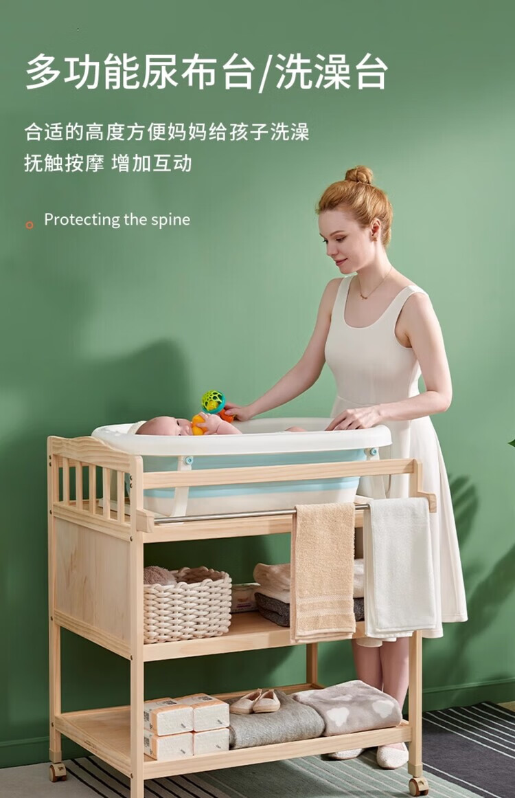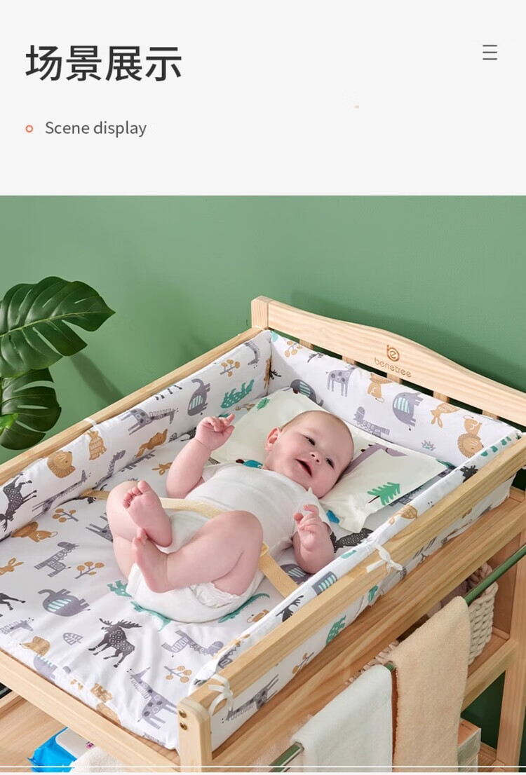 Benetree solid wood changing table baby care table massage and touch multi-functional newborn baby removable crib double changing table (all solid wood) + cotton pad + storage box