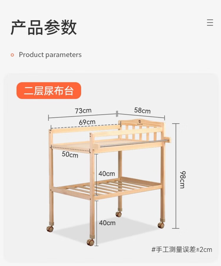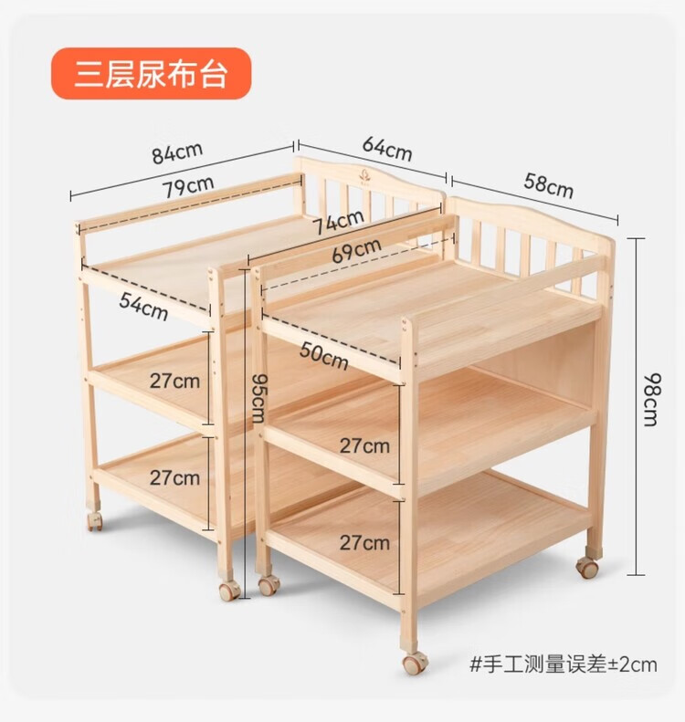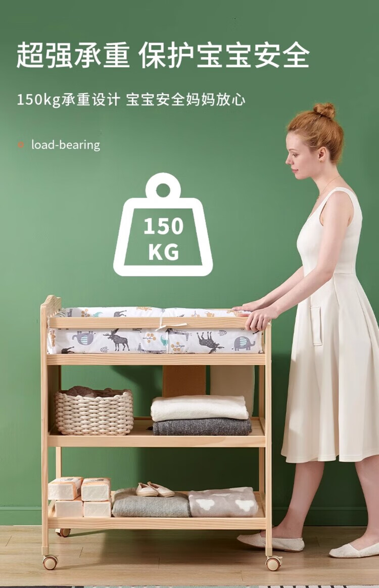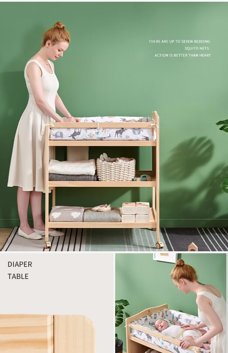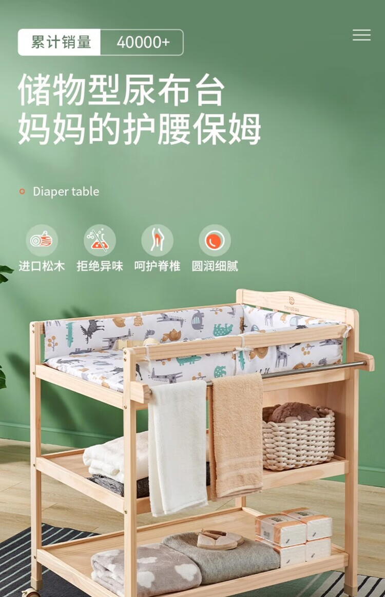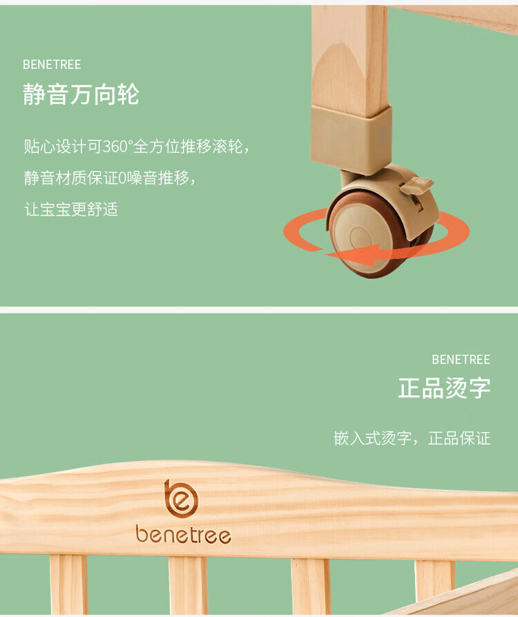 Benetree solid wood changing table baby care table massage and touch multi-functional newborn baby removable crib double changing table (all solid wood) + cotton pad + storage box