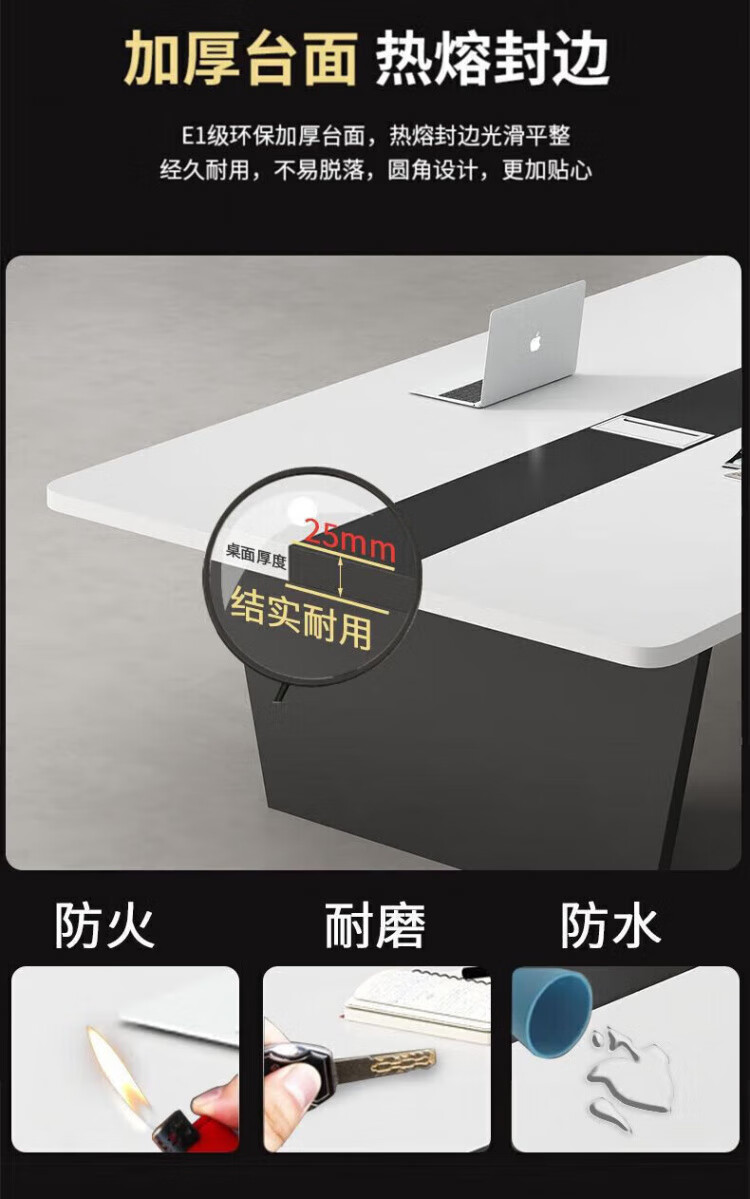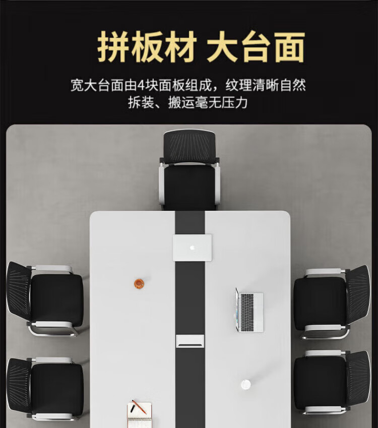会议桌长桌现代简约会议桌椅组合轻奢感办公会议桌会议室桌椅 1600*800mm会议桌