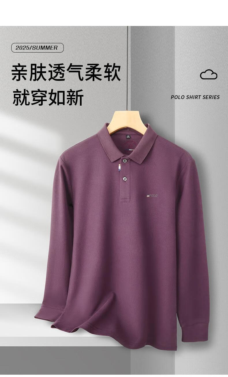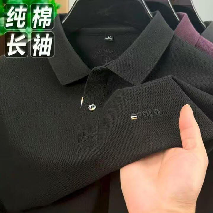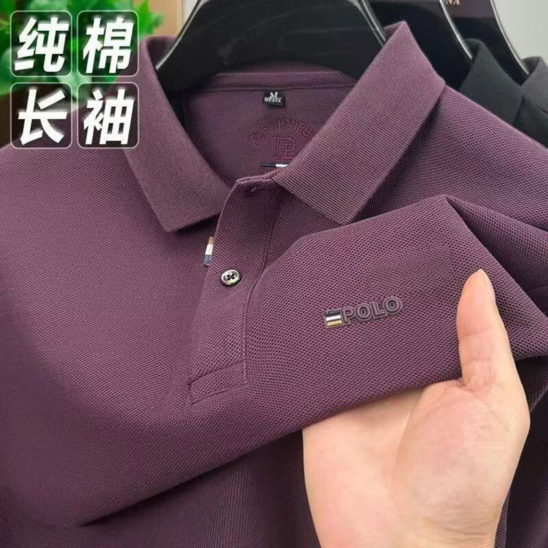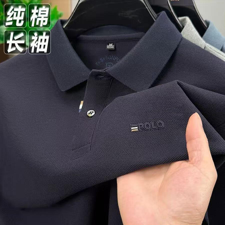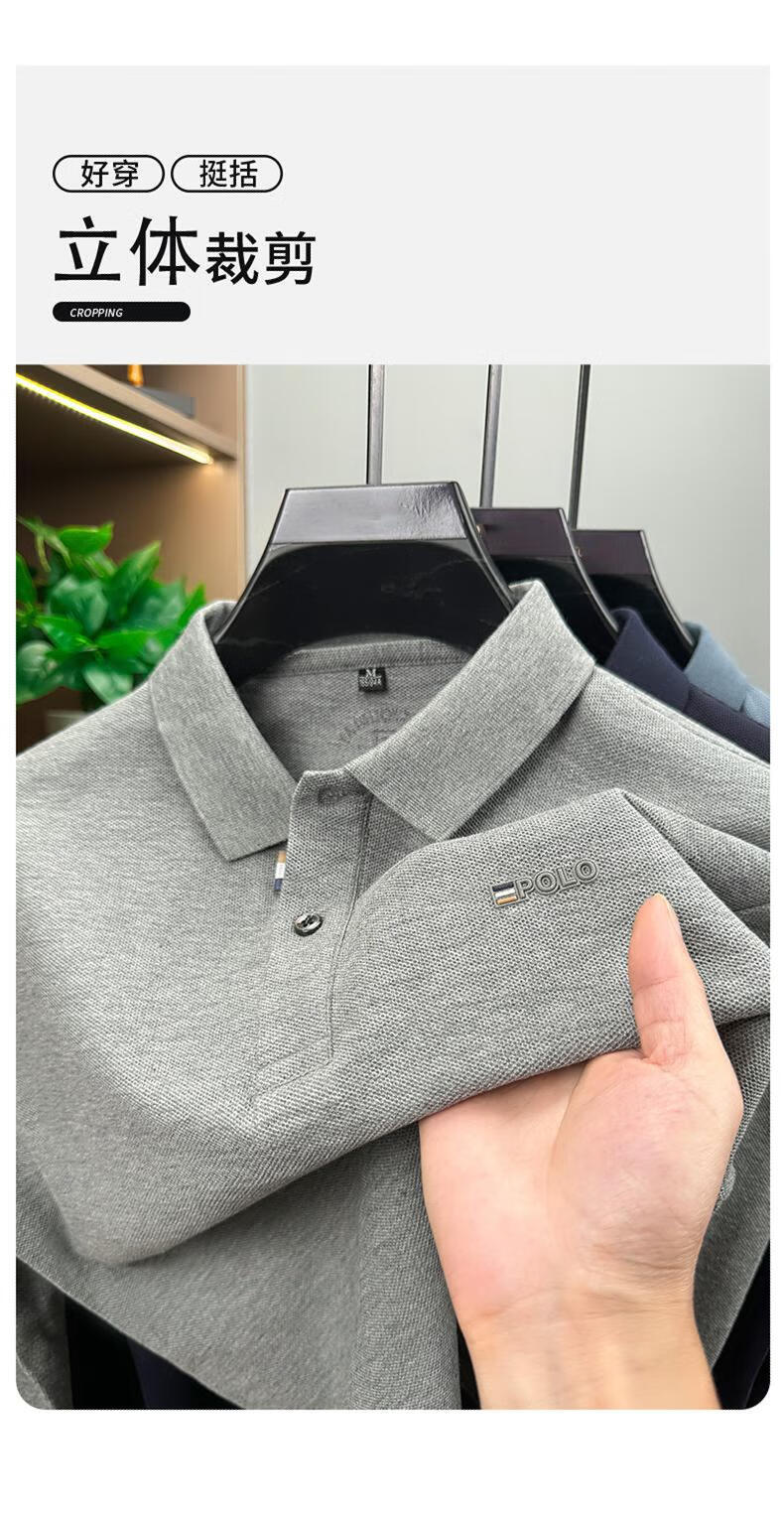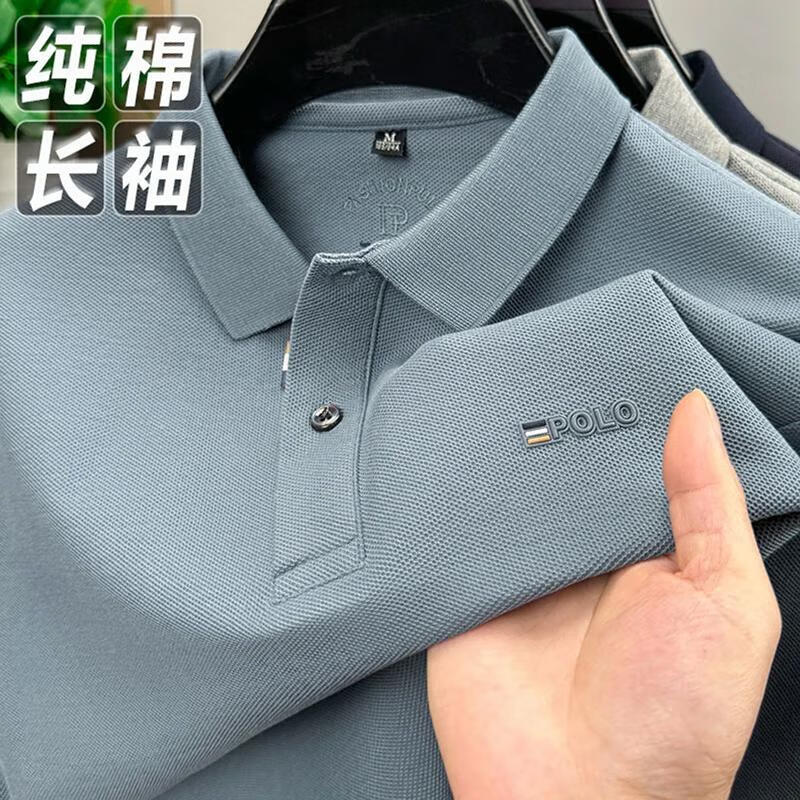 【全国包邮】秋季新款男翻领长袖Polo衫纯色宽松休闲百搭打底T恤 浅灰 XL 【130-145斤】