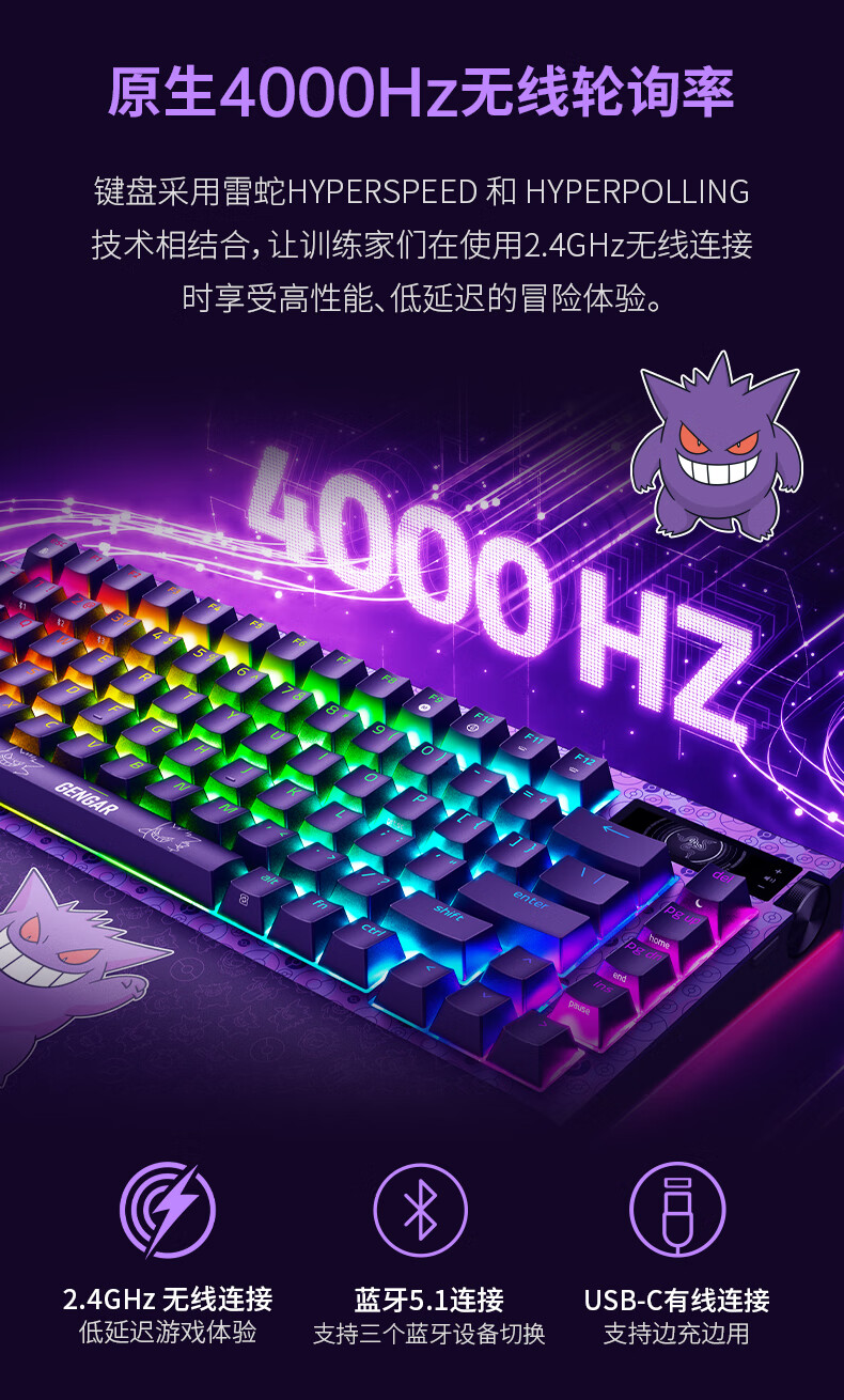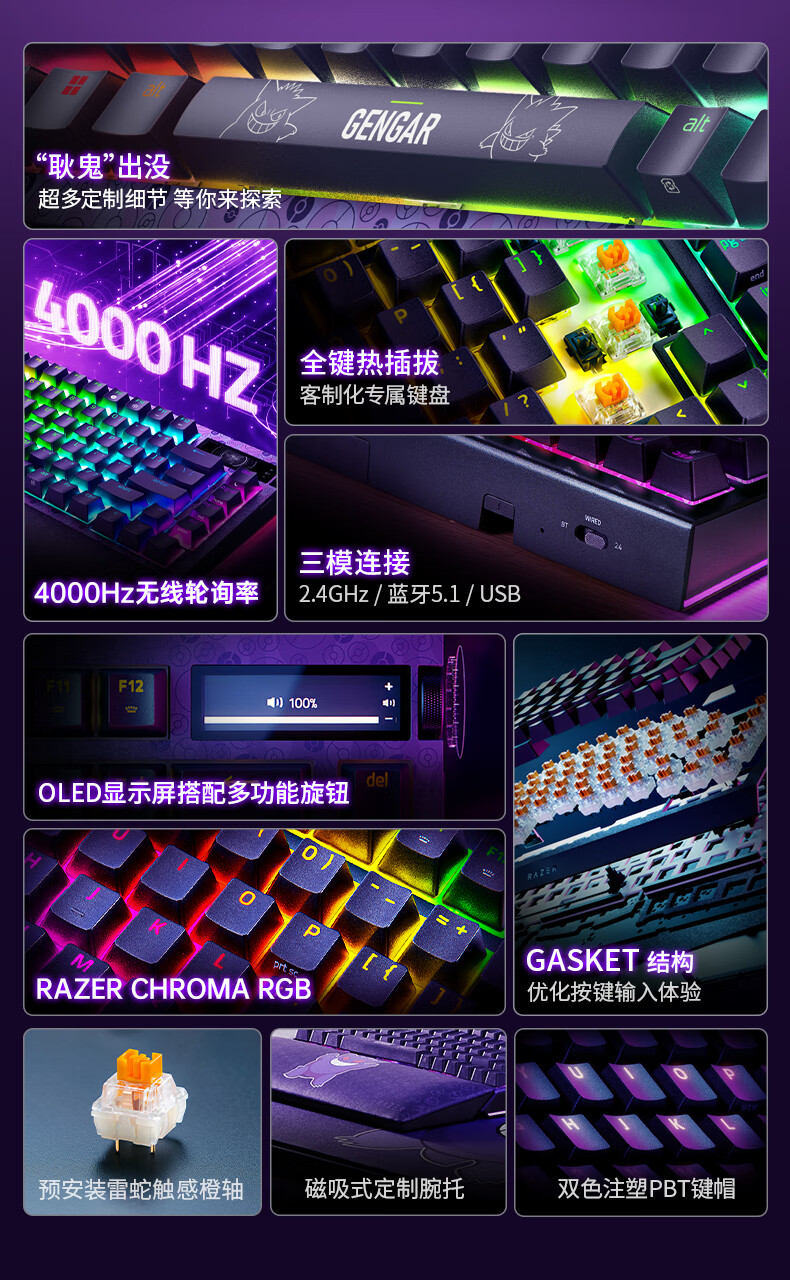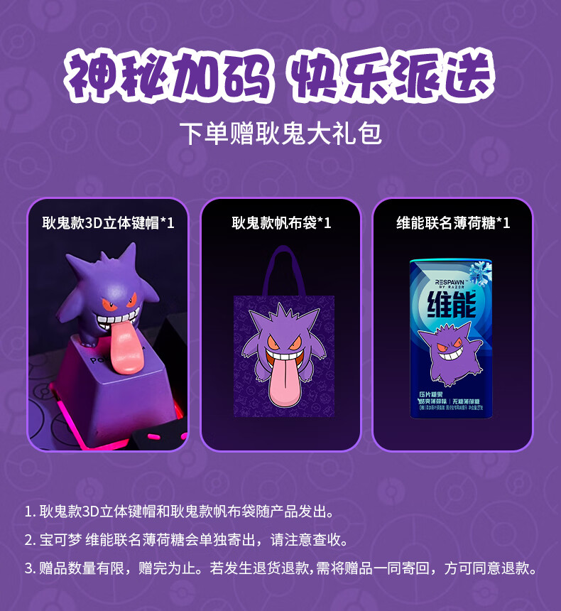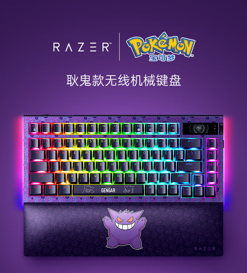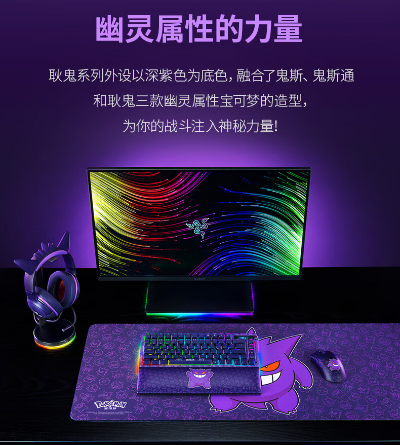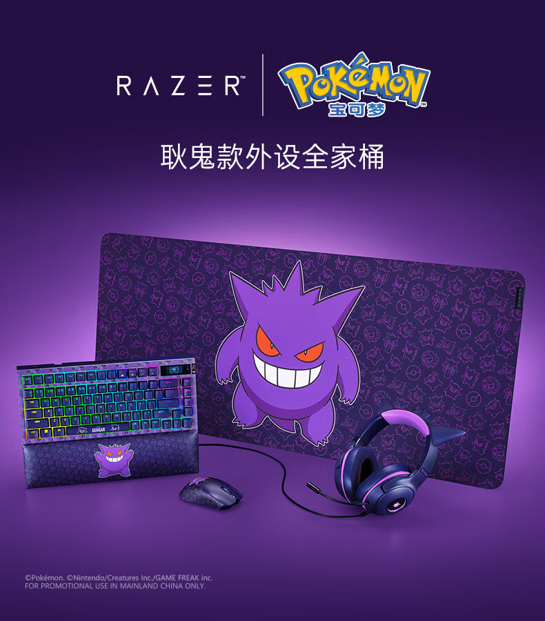 Совместная мышь Razer Pokémon Gengar, клавиатура и коврик для мыши, наушники, игровая периферия, семейное ведро, подарок, совместный бренд Gengar, набор из 3 предметов: клавиатура и коврик для мыши