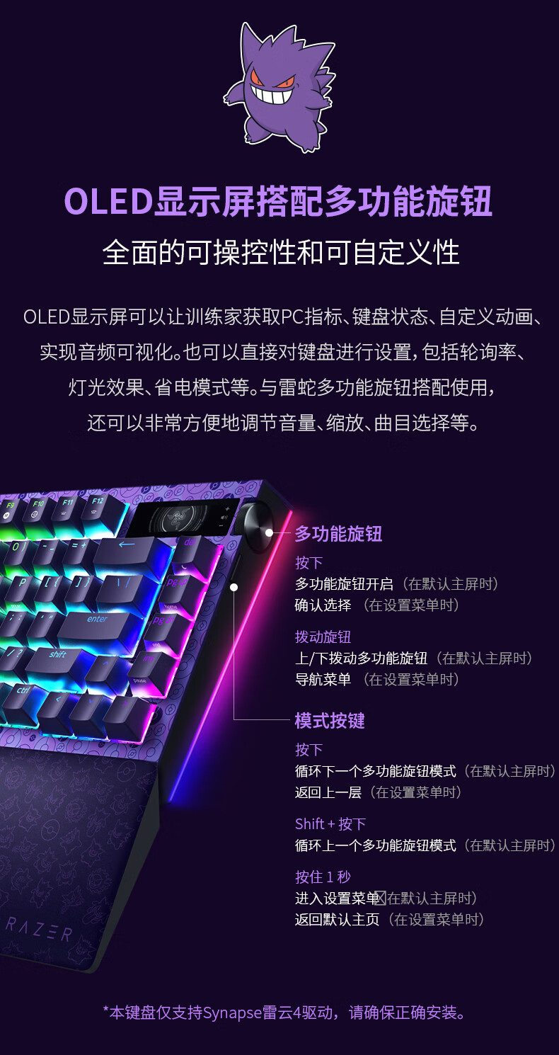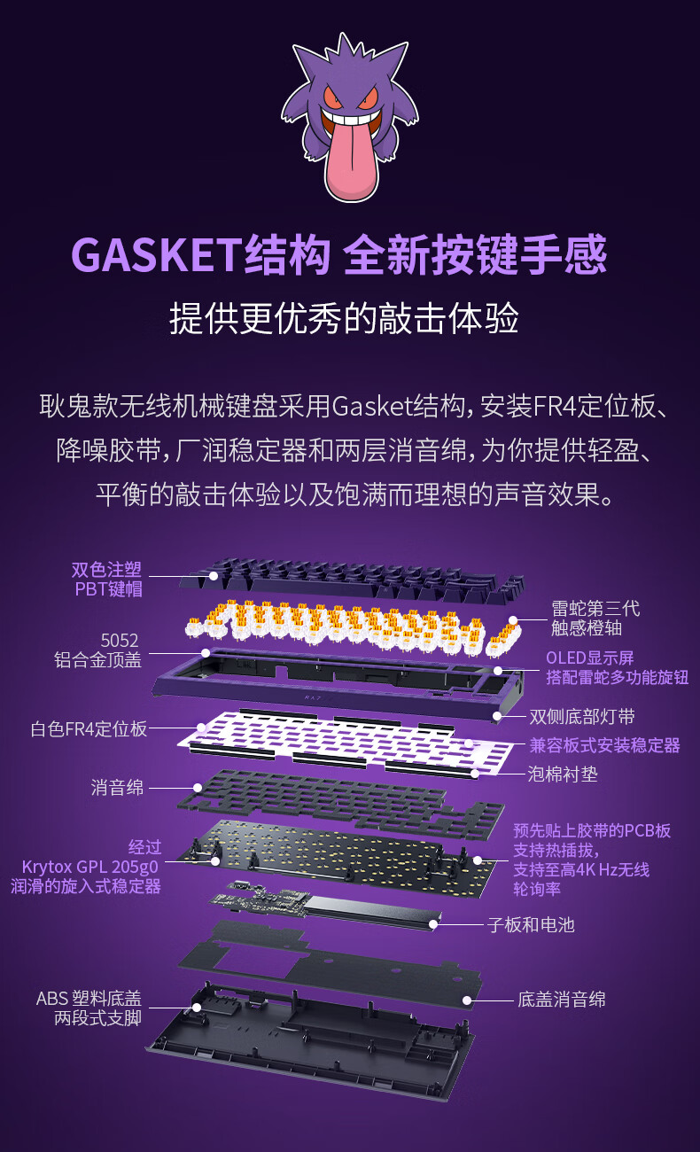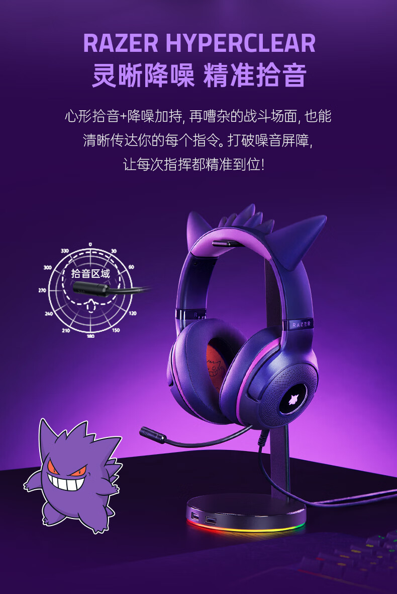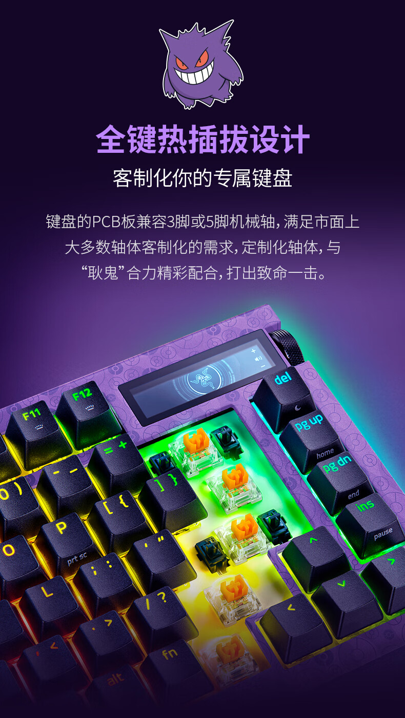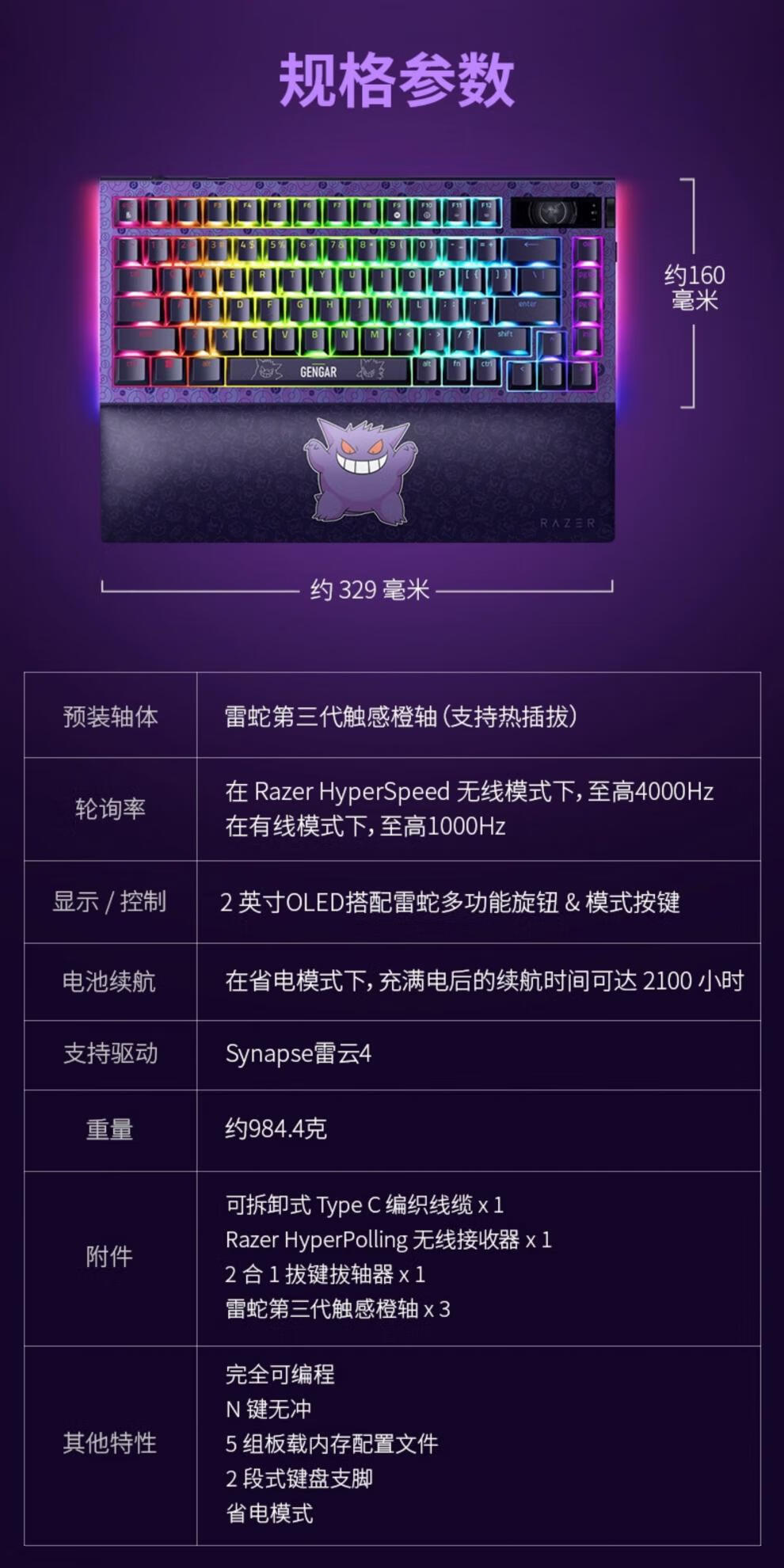 Совместная мышь Razer Pokémon Gengar, клавиатура и коврик для мыши, наушники, игровая периферия, семейное ведро, подарок, совместный бренд Gengar, набор из 3 предметов: клавиатура и коврик для мыши