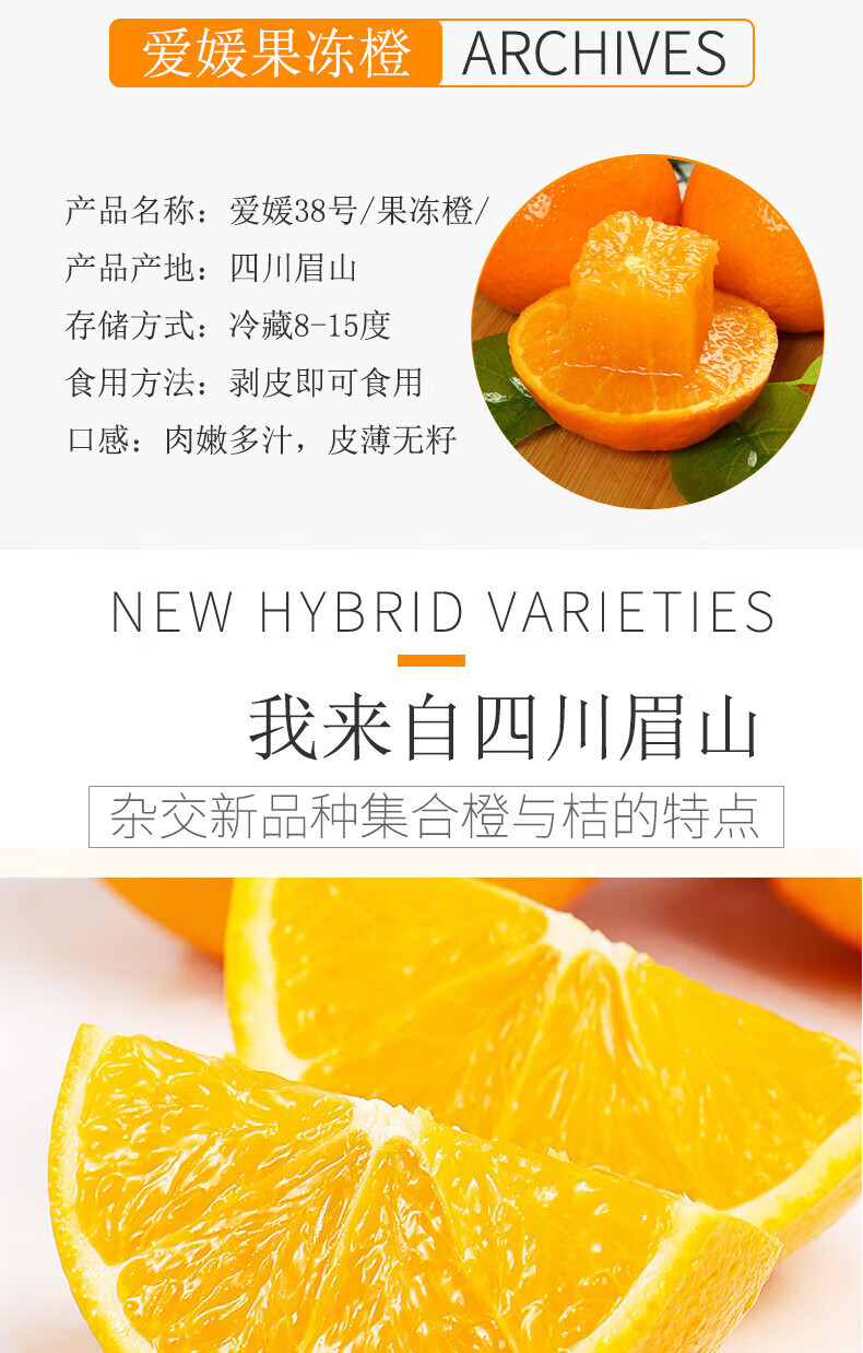 Qualité fraîche Sichuan Ehime No. 38 gelée d'orange agrumes orange fraîche en saison boîte entière de fruits boîte cadeau boîte complète 5Jin Jin équivaut à 0,5 kg de fruit unique 75-80 mm poids net 4,5Jin Jin équivaut à 0,5 kg