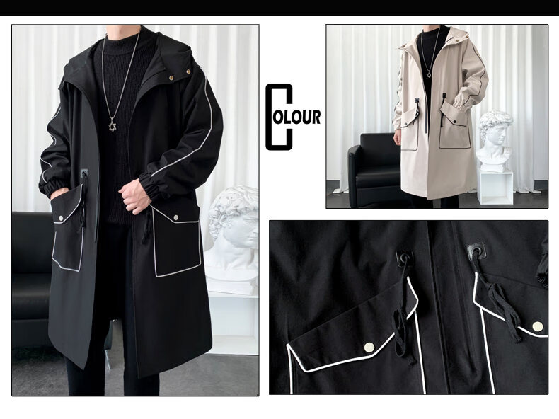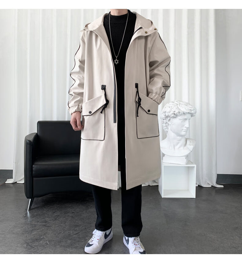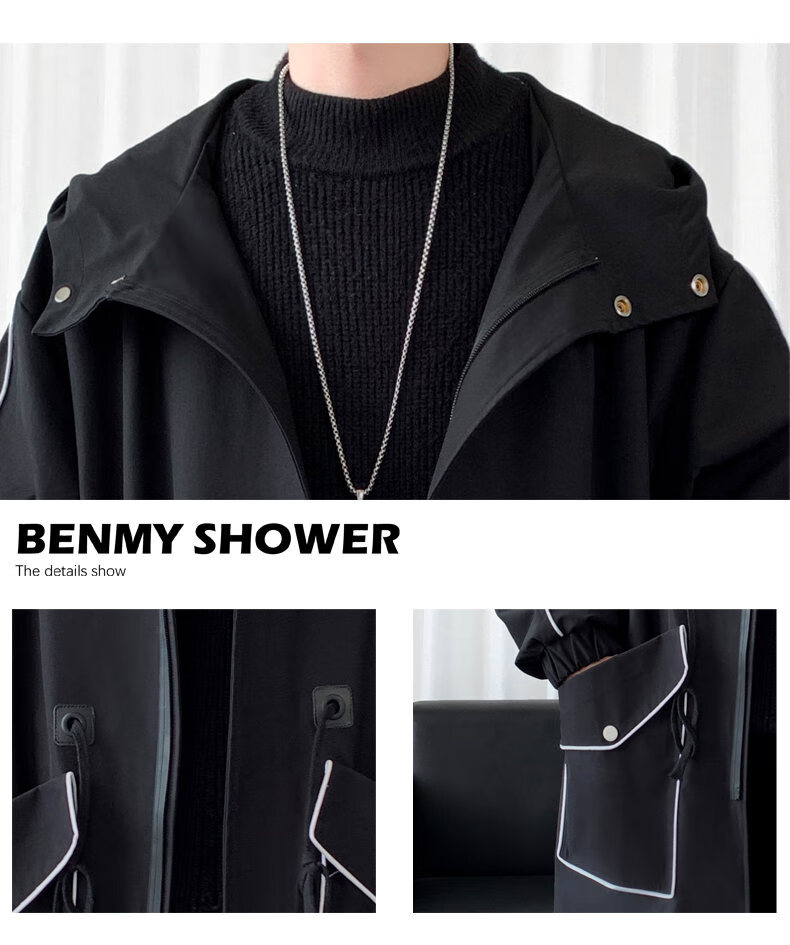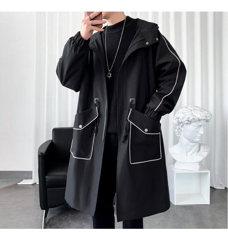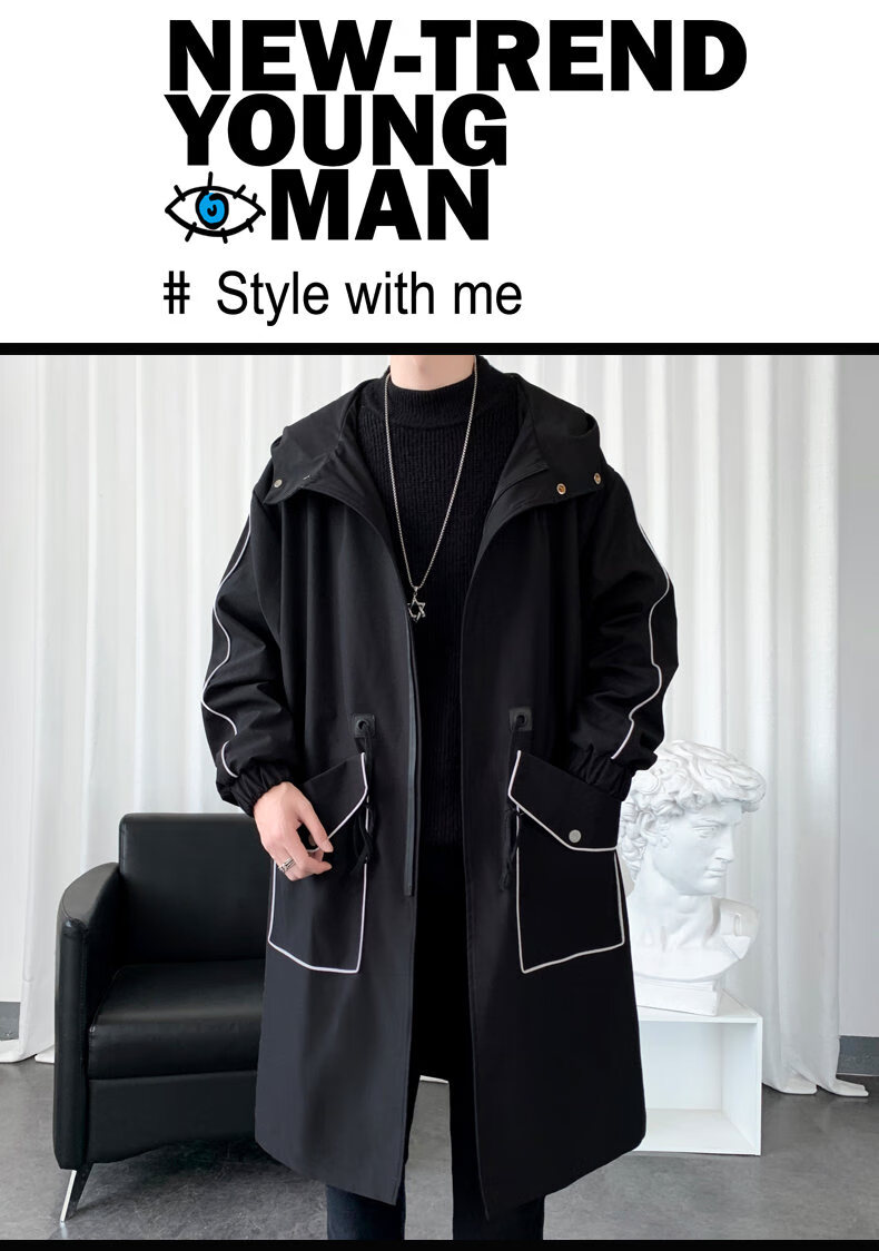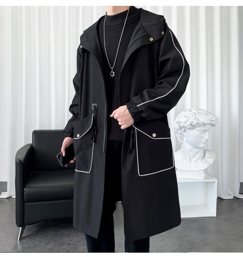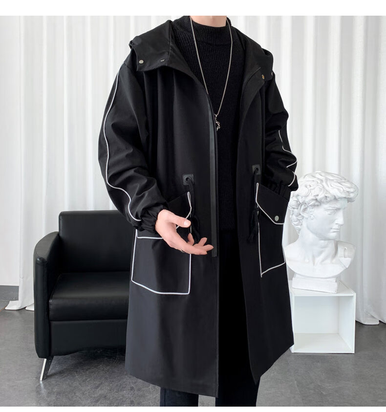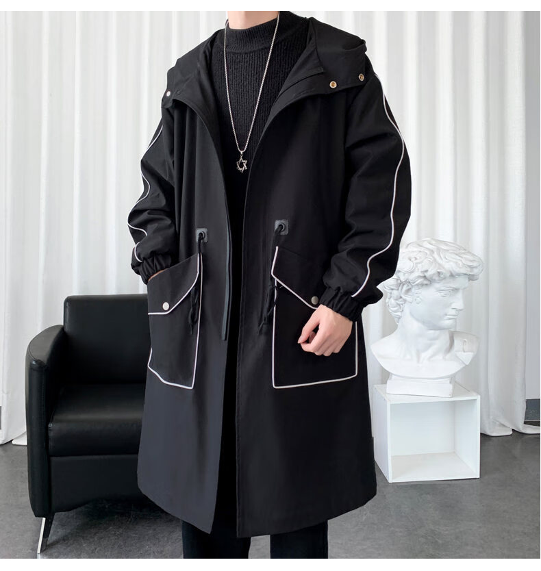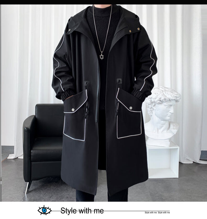 Shelley Jones中长款风衣男士秋冬季新款美式复古加棉加厚休闲上衣服男装外套潮 黑色加棉 L [建议110-125斤]