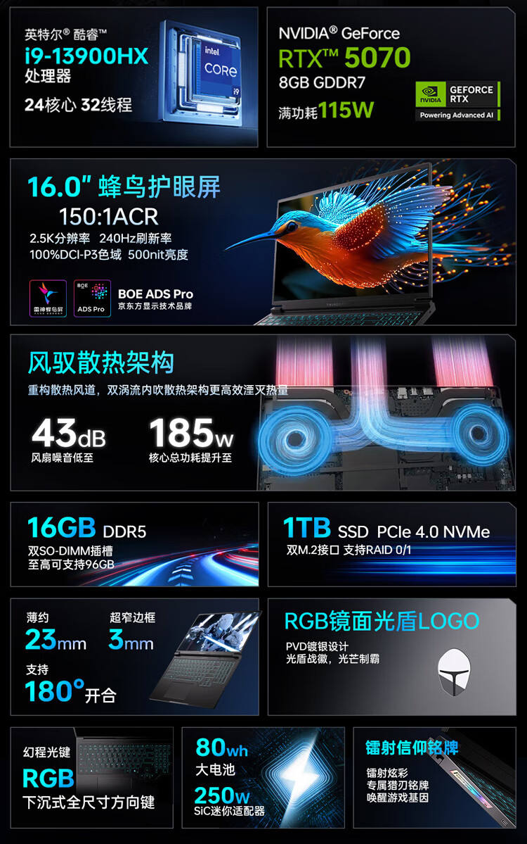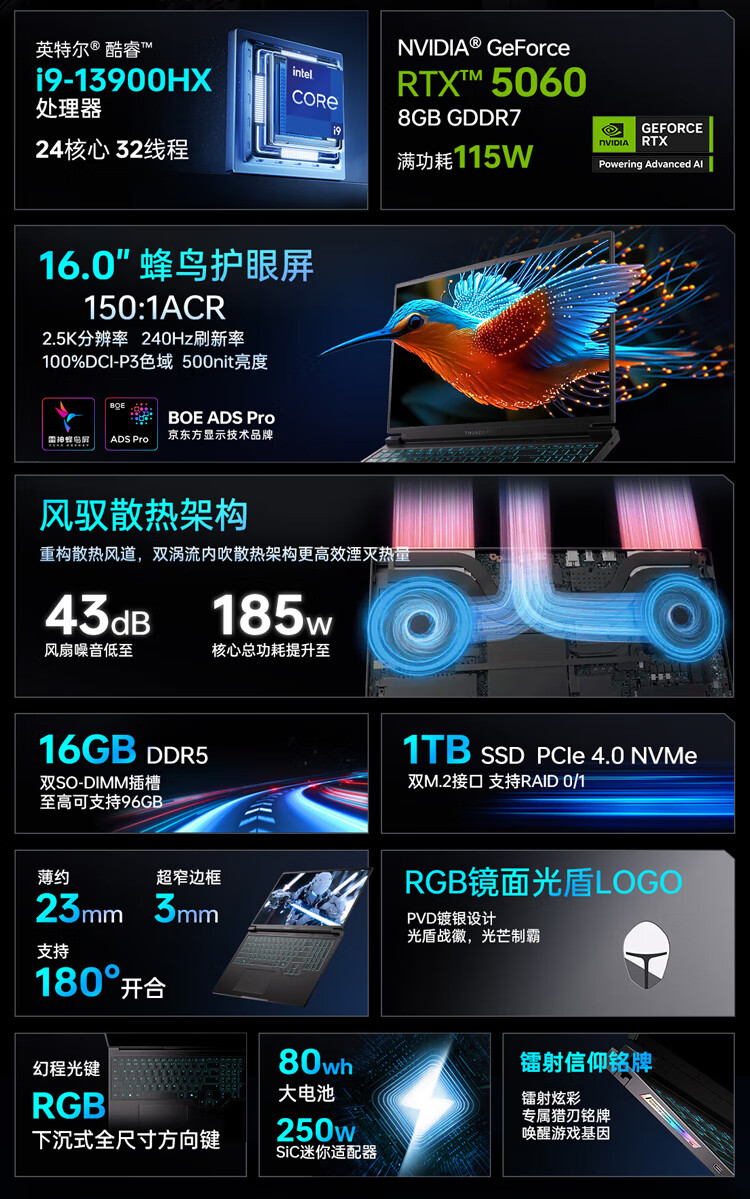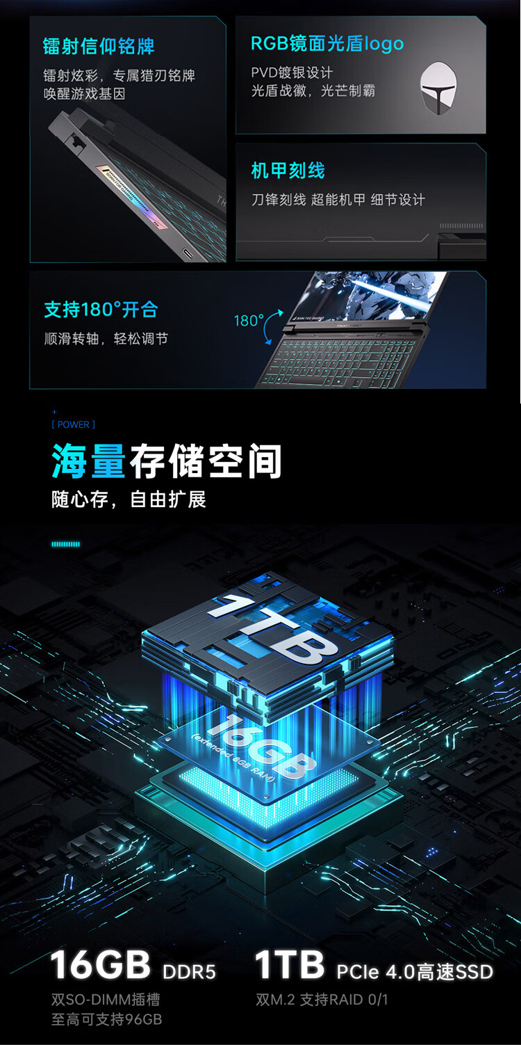 Thunder (ThundeRobot) new hunting blade S laptop Intel Core i9 high-performance processor 16-inch AI design programming e-sports independent graphics game notebook computer hunting blade Si9-13900HX 5060 16G 1T customized