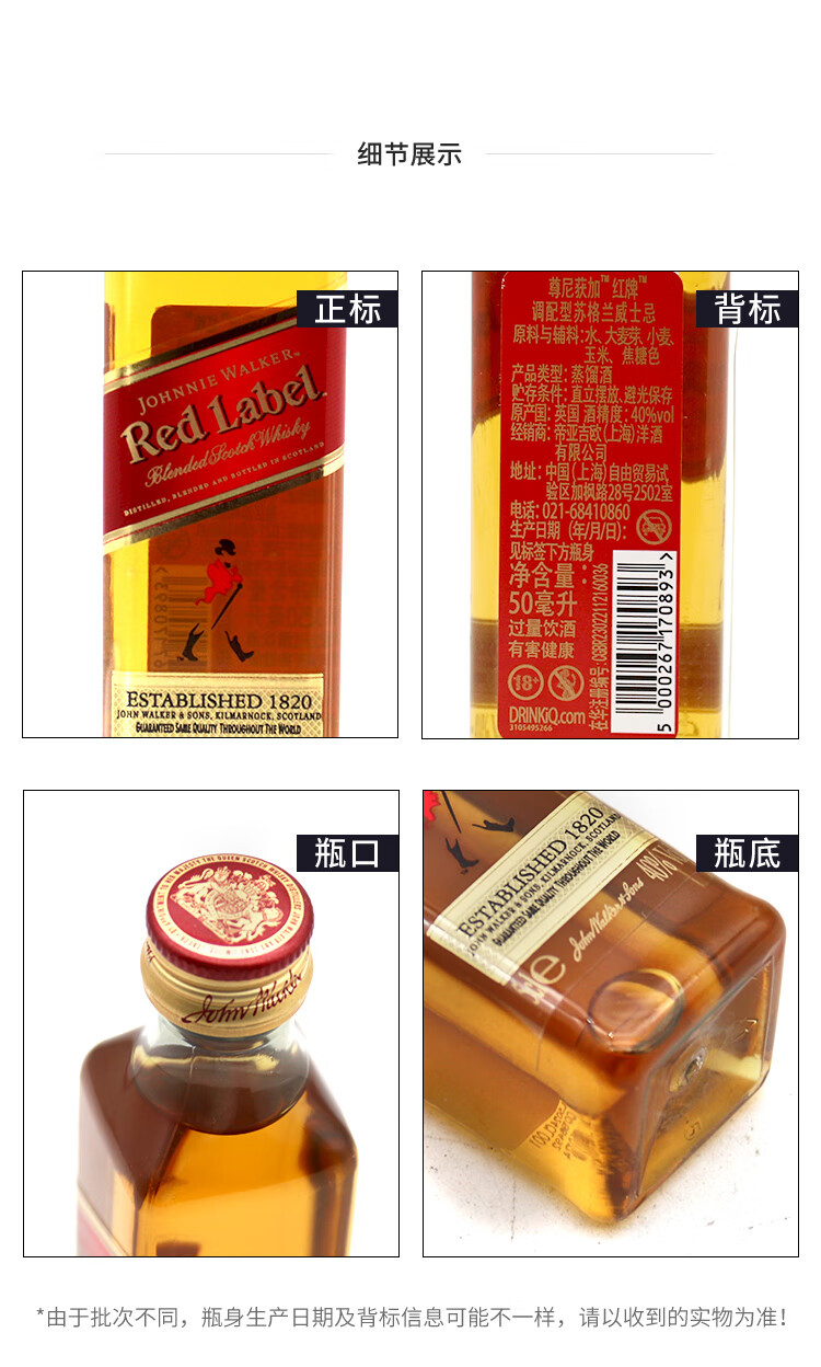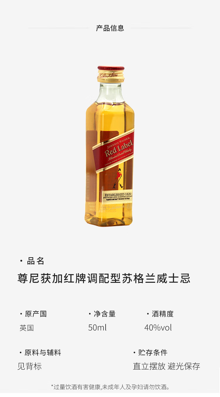 尊尼获加洋酒 红方红牌50ml 苏格兰调和型威士忌 无盒 小酒版 中秋送礼 红方红牌50ml小酒版