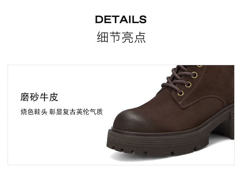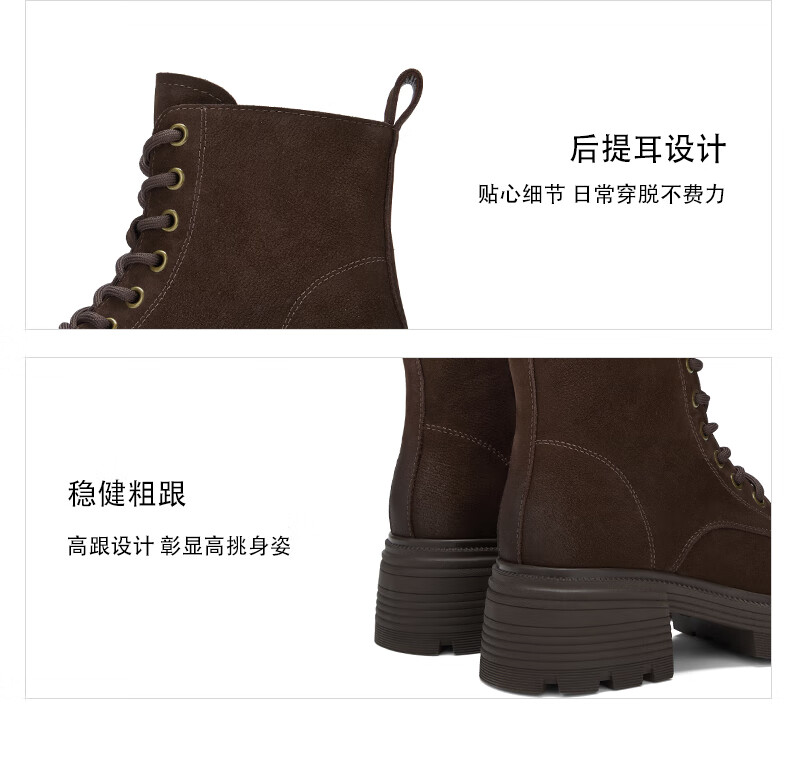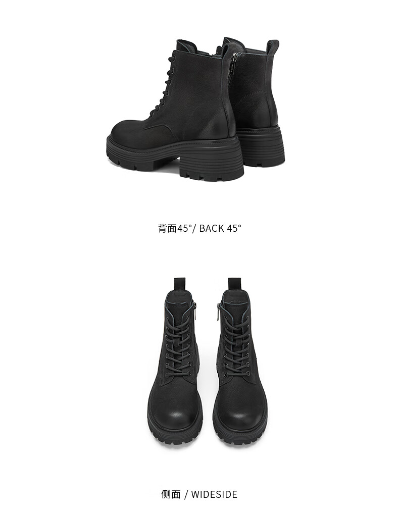 Belle Retro Cowhide Outdoor Style Martin Boots Women's 2025 Winter New Shopping Mall Same Color Polished Short Boots E8V1DDD5 Black-Single Li 37