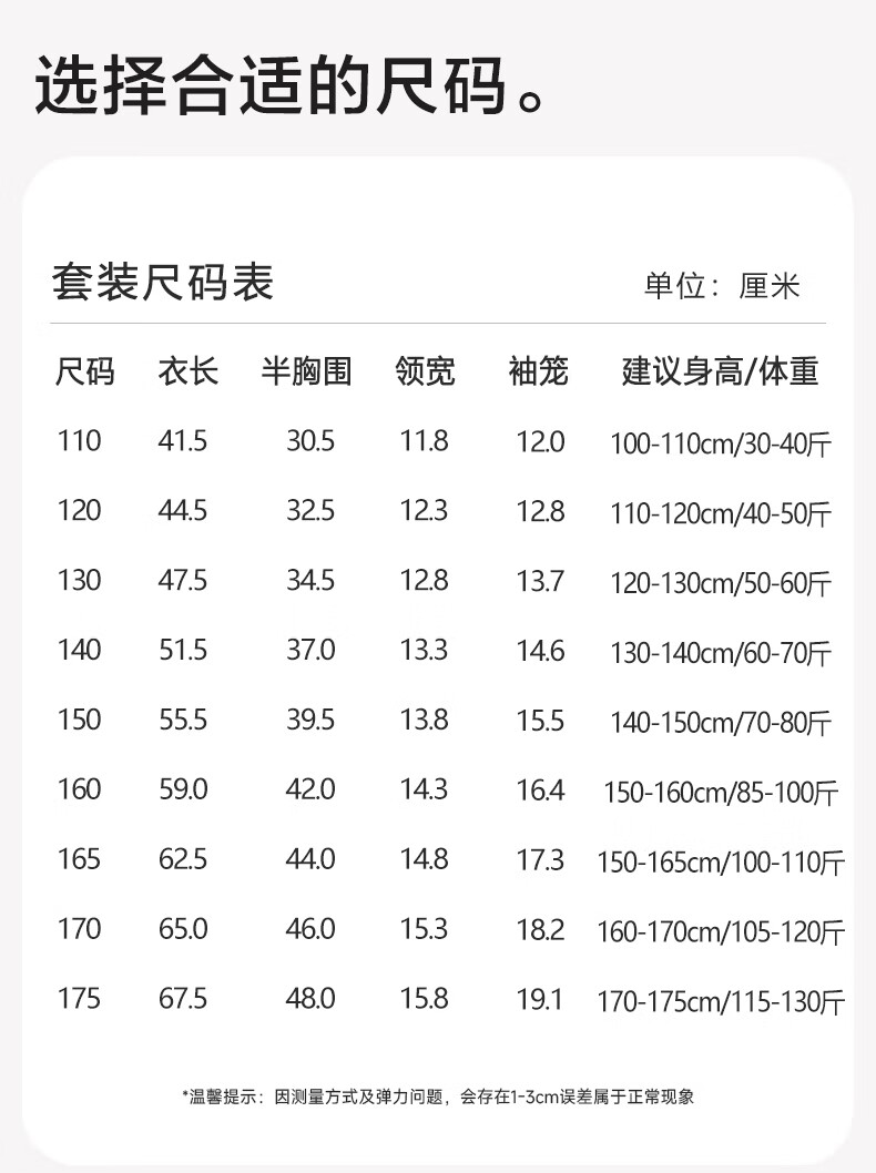 China (cm) 160-165/84-86 165-170 / 88-90 167-172 / 92-96 168-173 / 98-102 170-176 / 106-110
