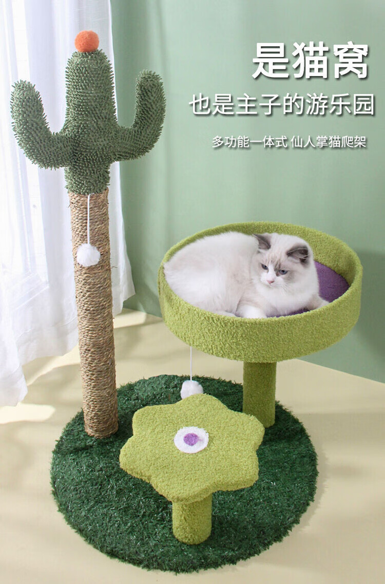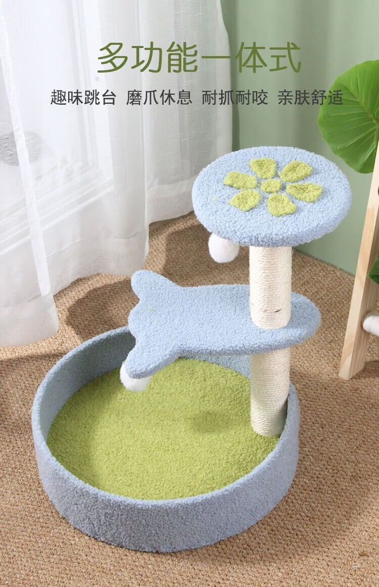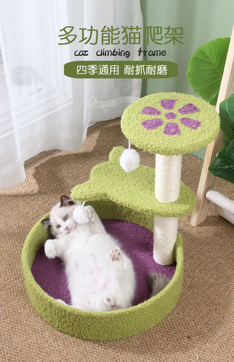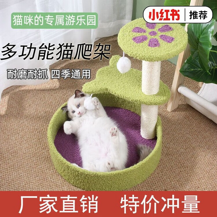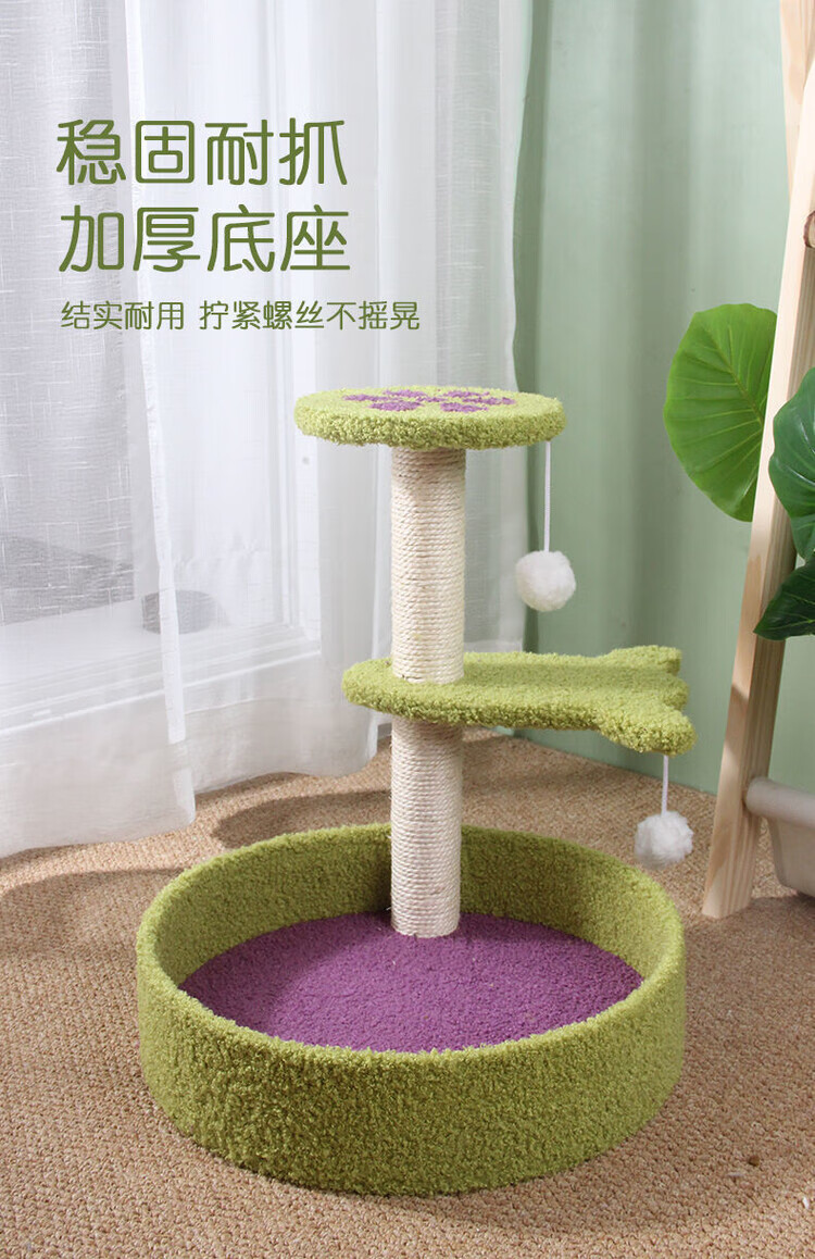 OYKTN猫爬架猫窝一体剑麻特价猫树别墅大型猫抓板玩具猫抓柱猫咪用品 三层绿色花瓣款(剑麻柱-超耐抓)