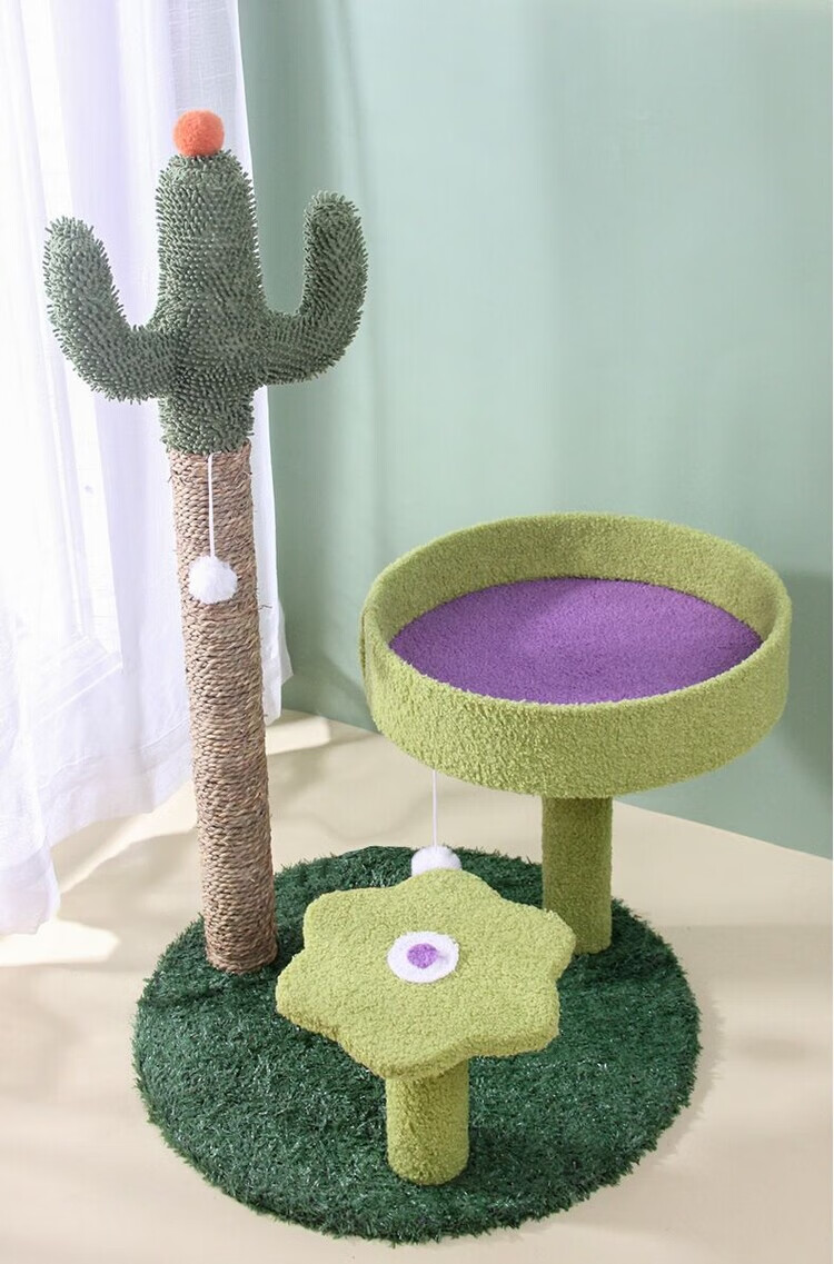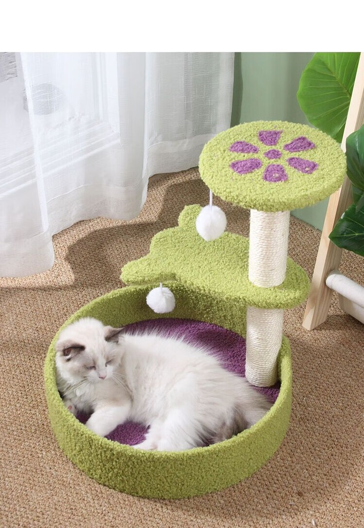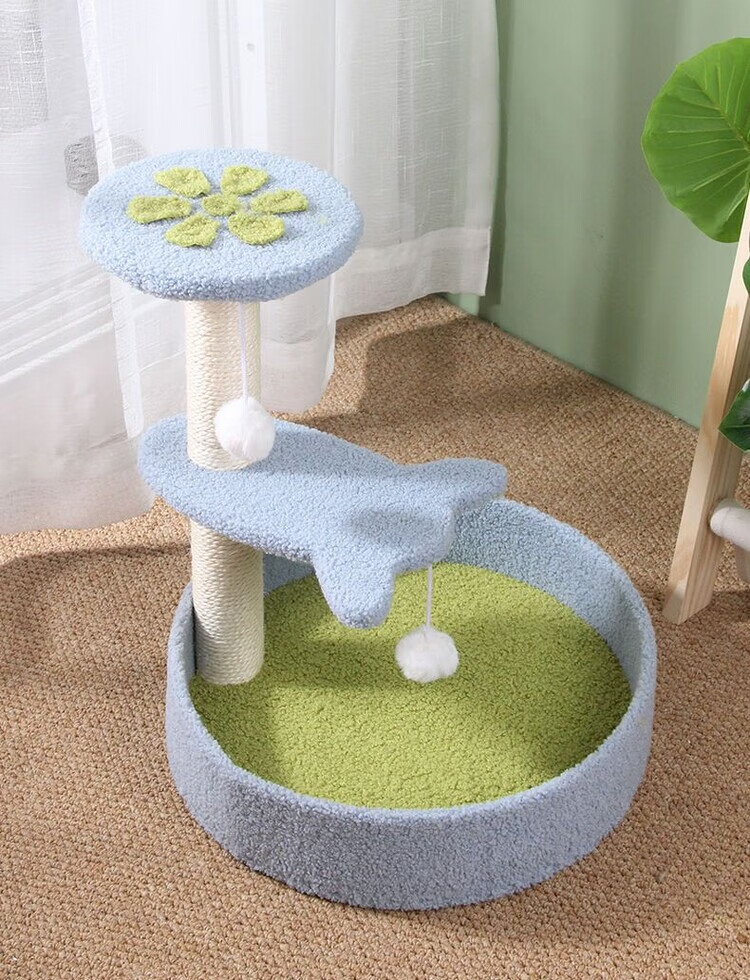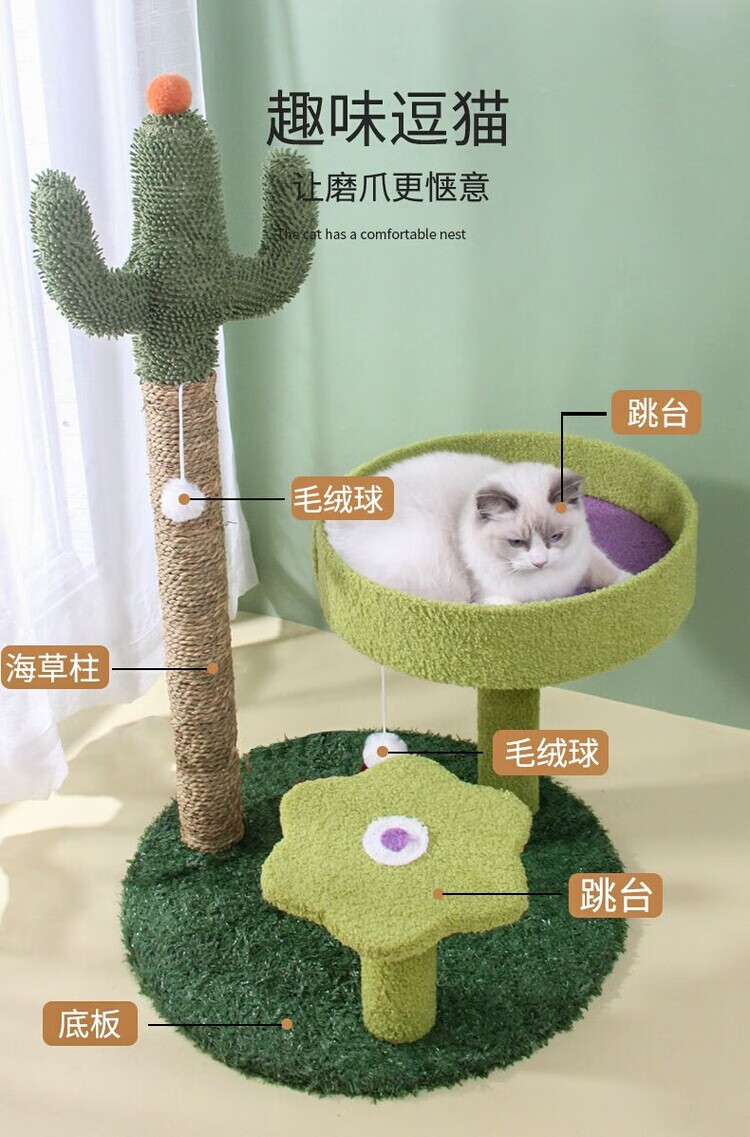 OYKTN猫爬架猫窝一体剑麻特价猫树别墅大型猫抓板玩具猫抓柱猫咪用品 三层绿色花瓣款(剑麻柱-超耐抓)