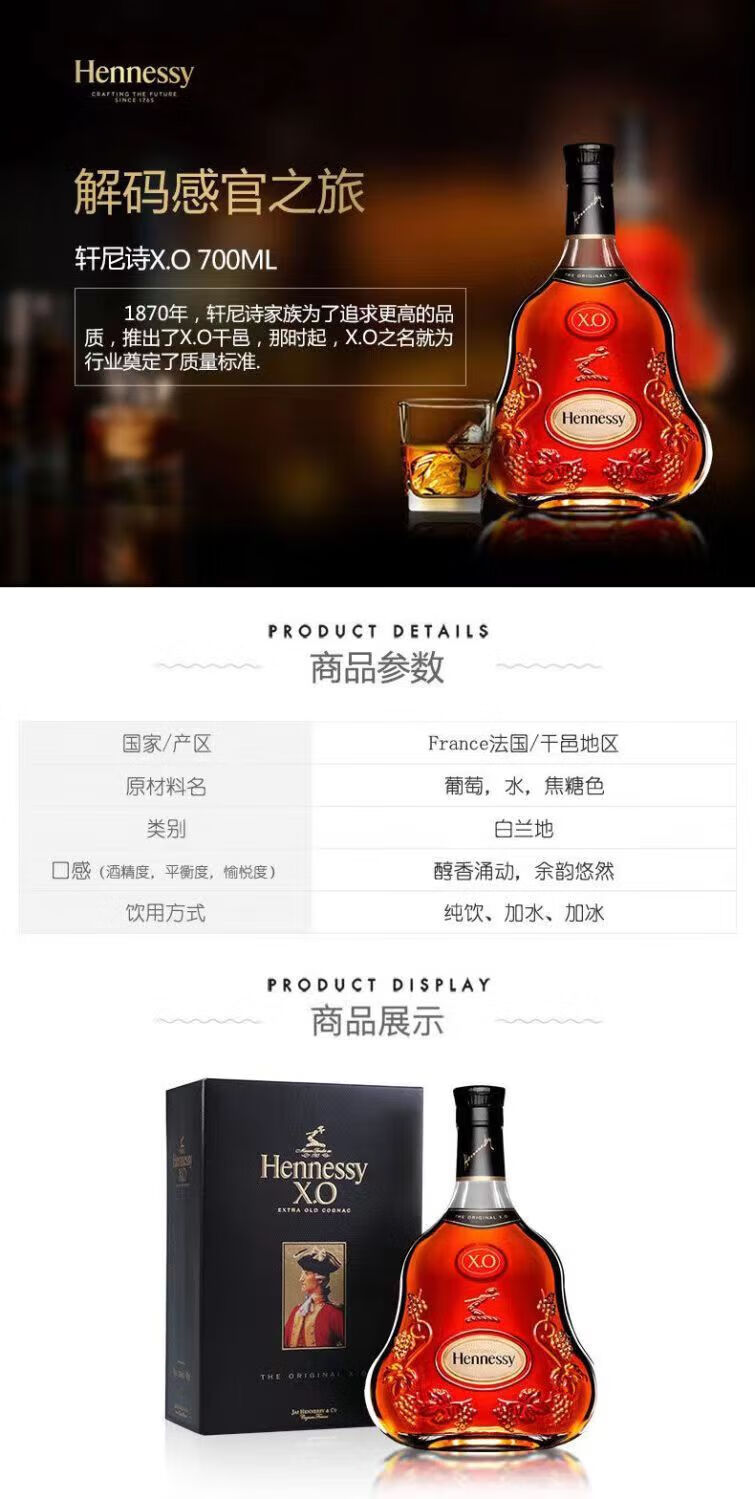 轩尼诗XO 法国进口 干邑白兰地 宴请 送礼 礼盒 轩尼诗XO  700mL 1瓶