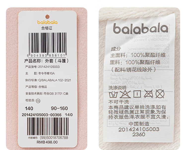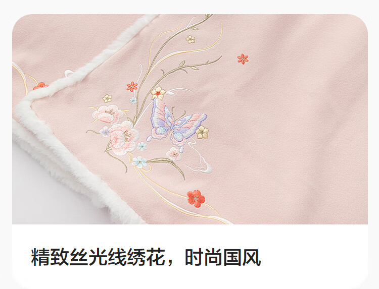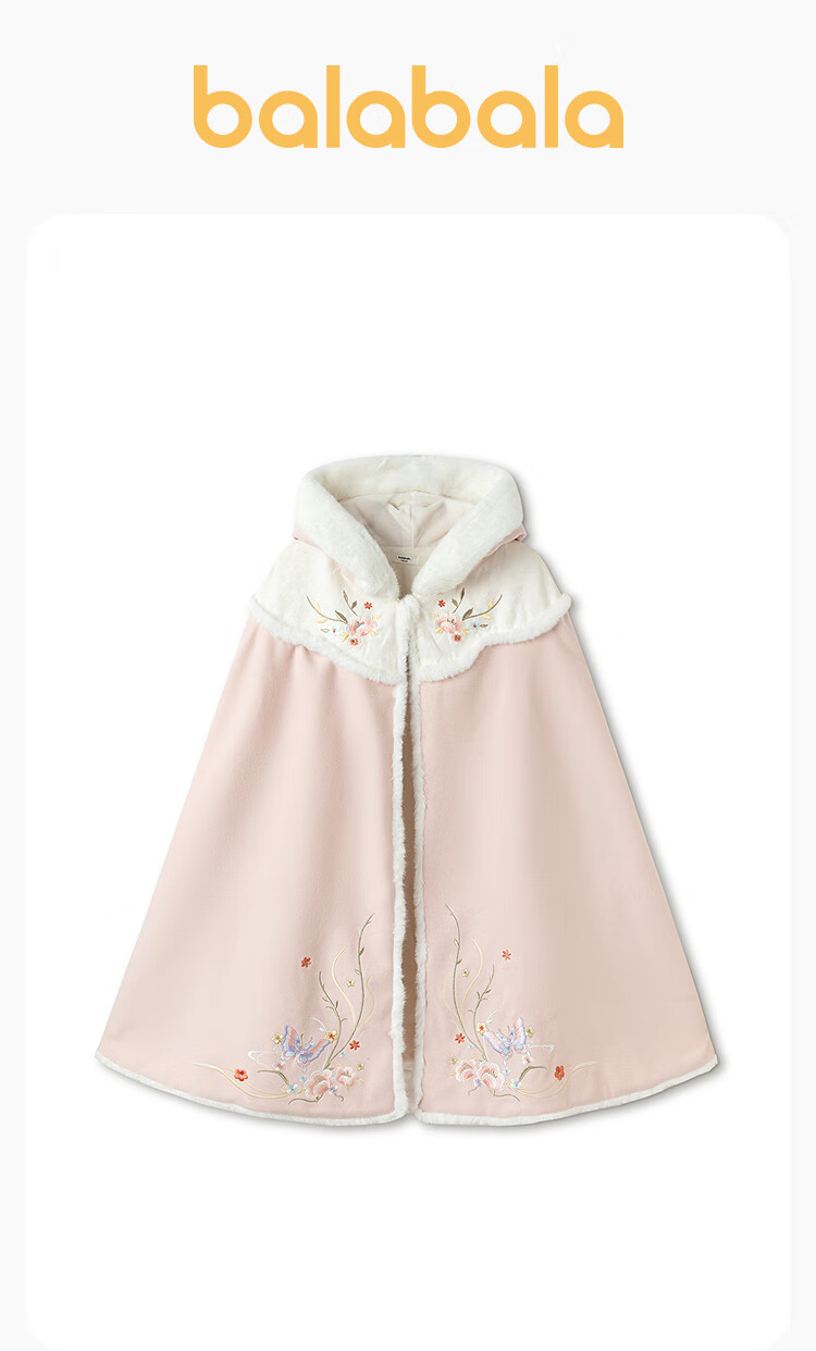 巴拉巴拉童装儿童外套女童冬装宝宝国风斗篷加绒保暖精致绣花时尚 红色调00366 90