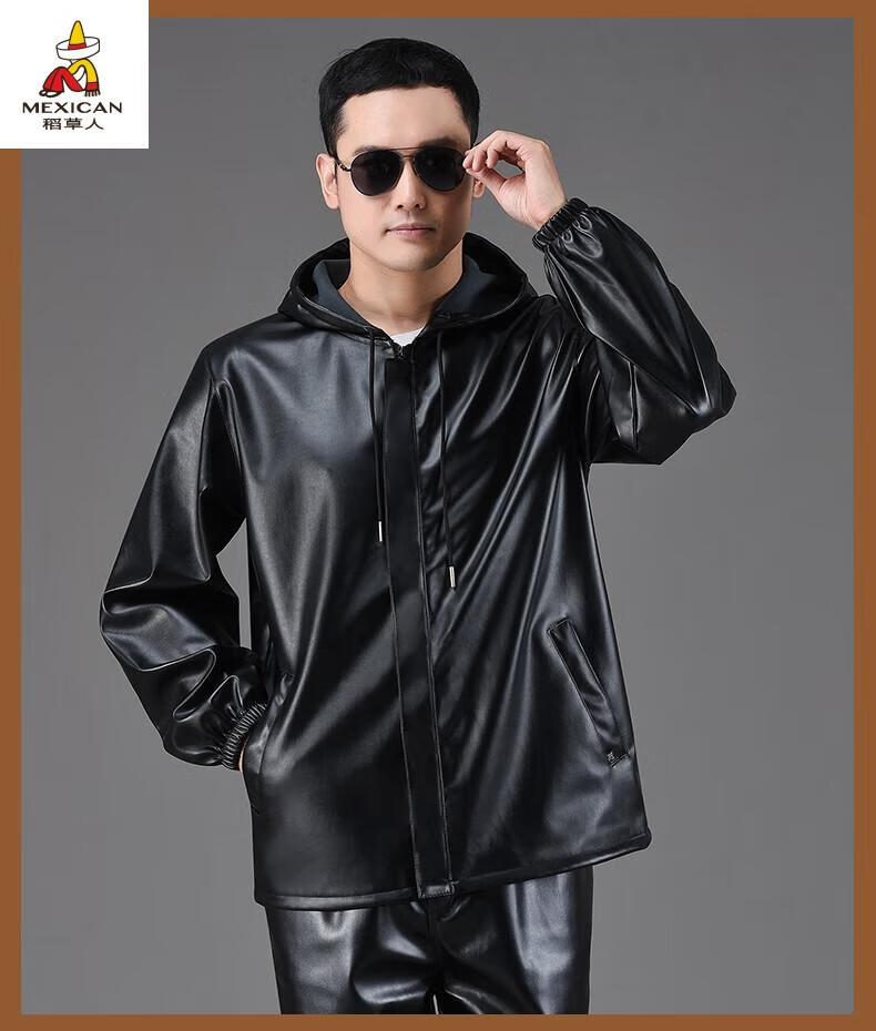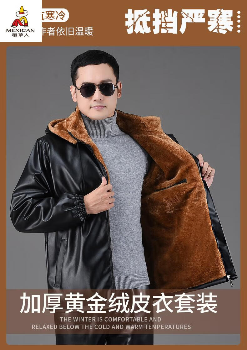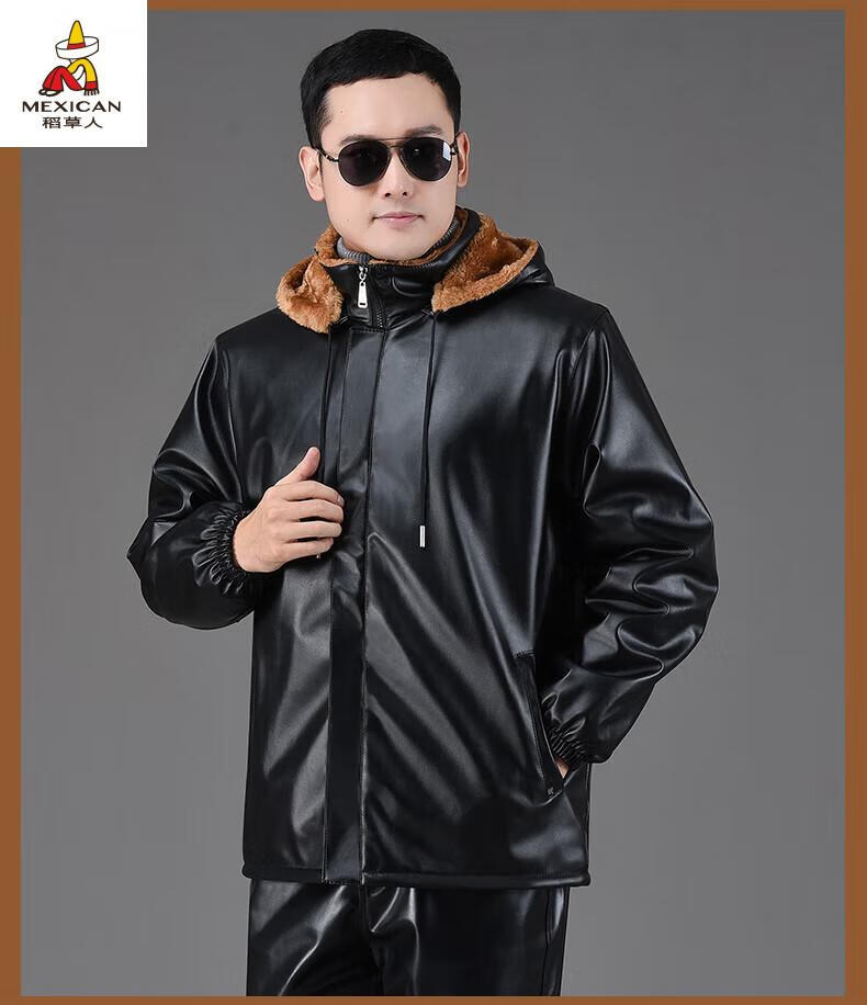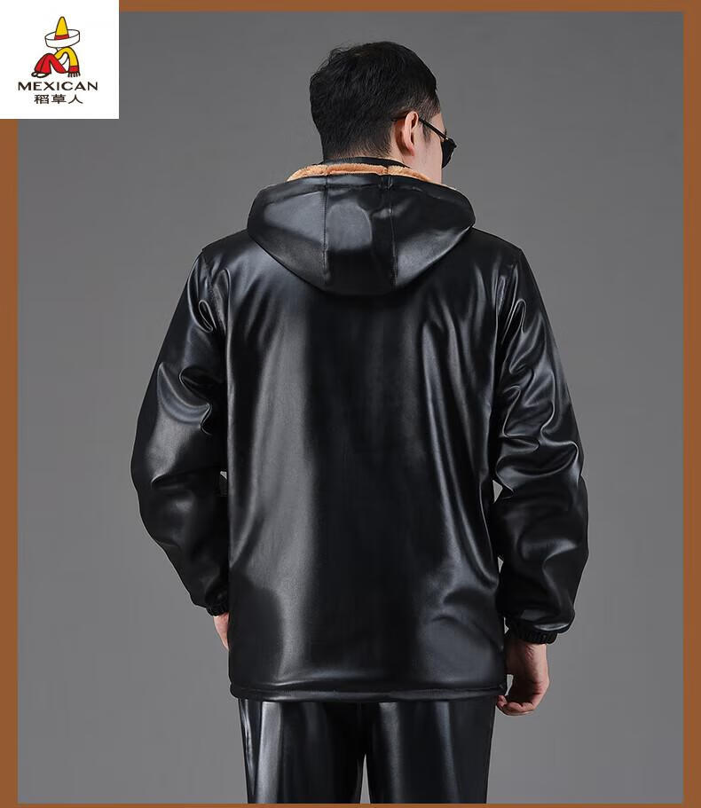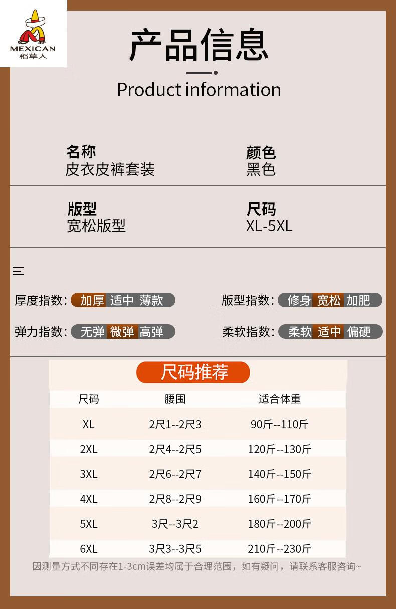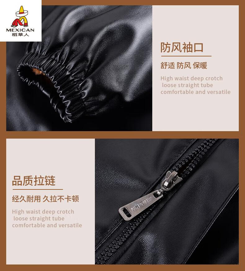 Scarecrow (MEXICAN) Leather Jacket and Leather Pants Suit Plus Velvet Thickened Windproof Warm Waterproof Jacket Motorcycle Cycling Driving Delivery Work Clothes Top + Pants Pack Plus Velvet Plus Velvet XL 90-110Jin Jin is equal to 0.5 kg