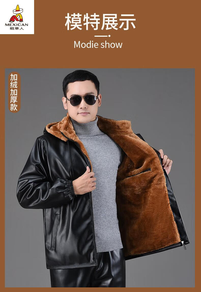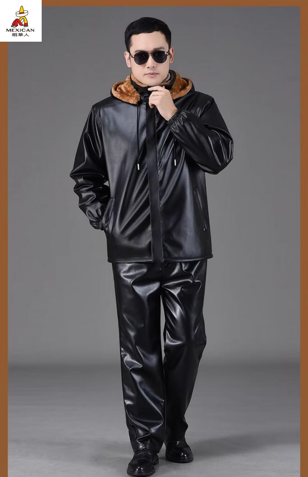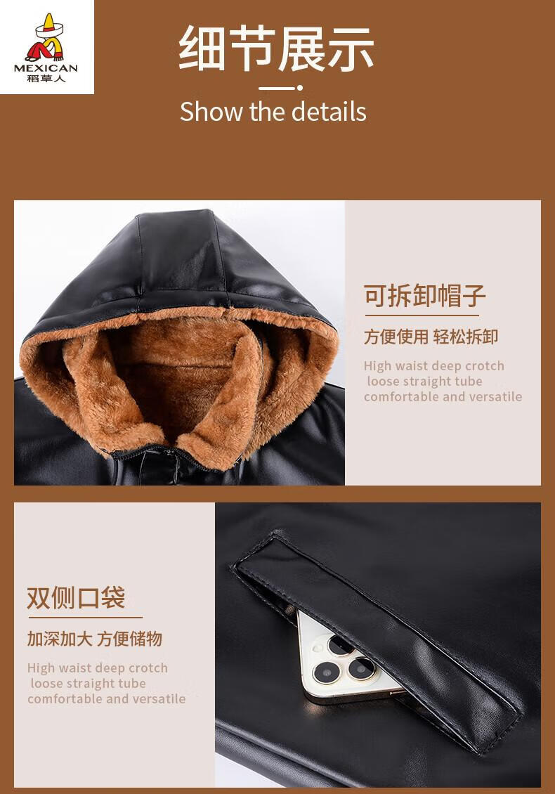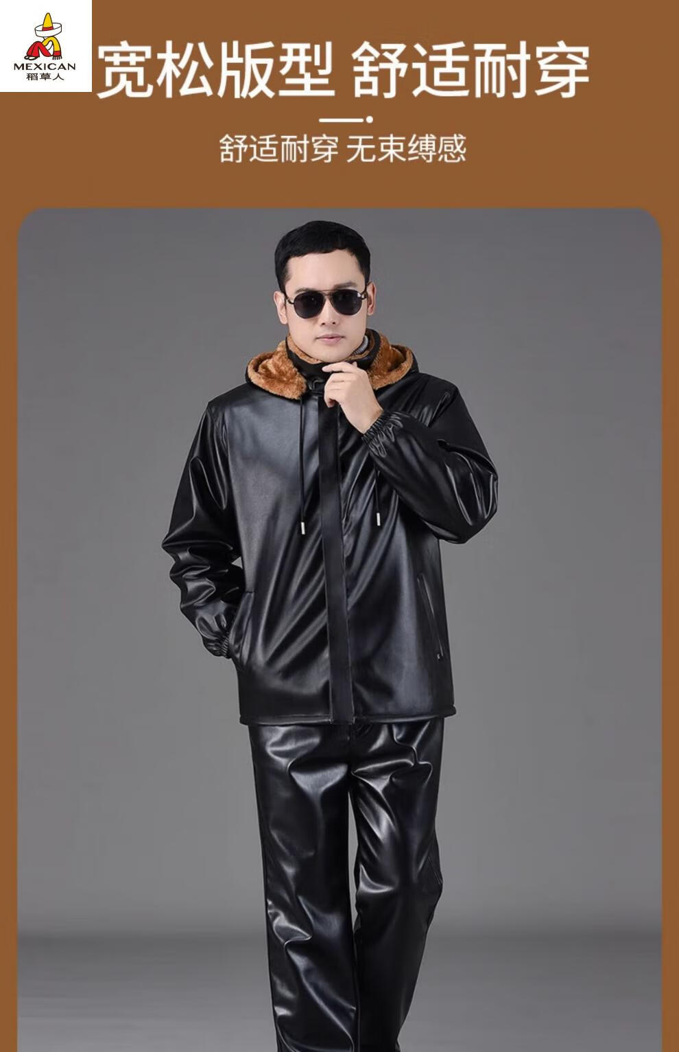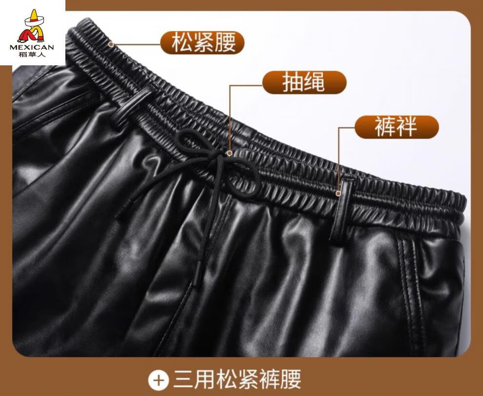 Scarecrow (MEXICAN) Leather Jacket and Leather Pants Suit Plus Velvet Thickened Windproof Warm Waterproof Jacket Motorcycle Cycling Driving Delivery Work Clothes Top + Pants Pack Plus Velvet Plus Velvet XL 90-110Jin Jin is equal to 0.5 kg