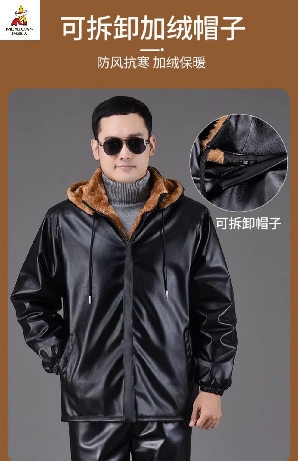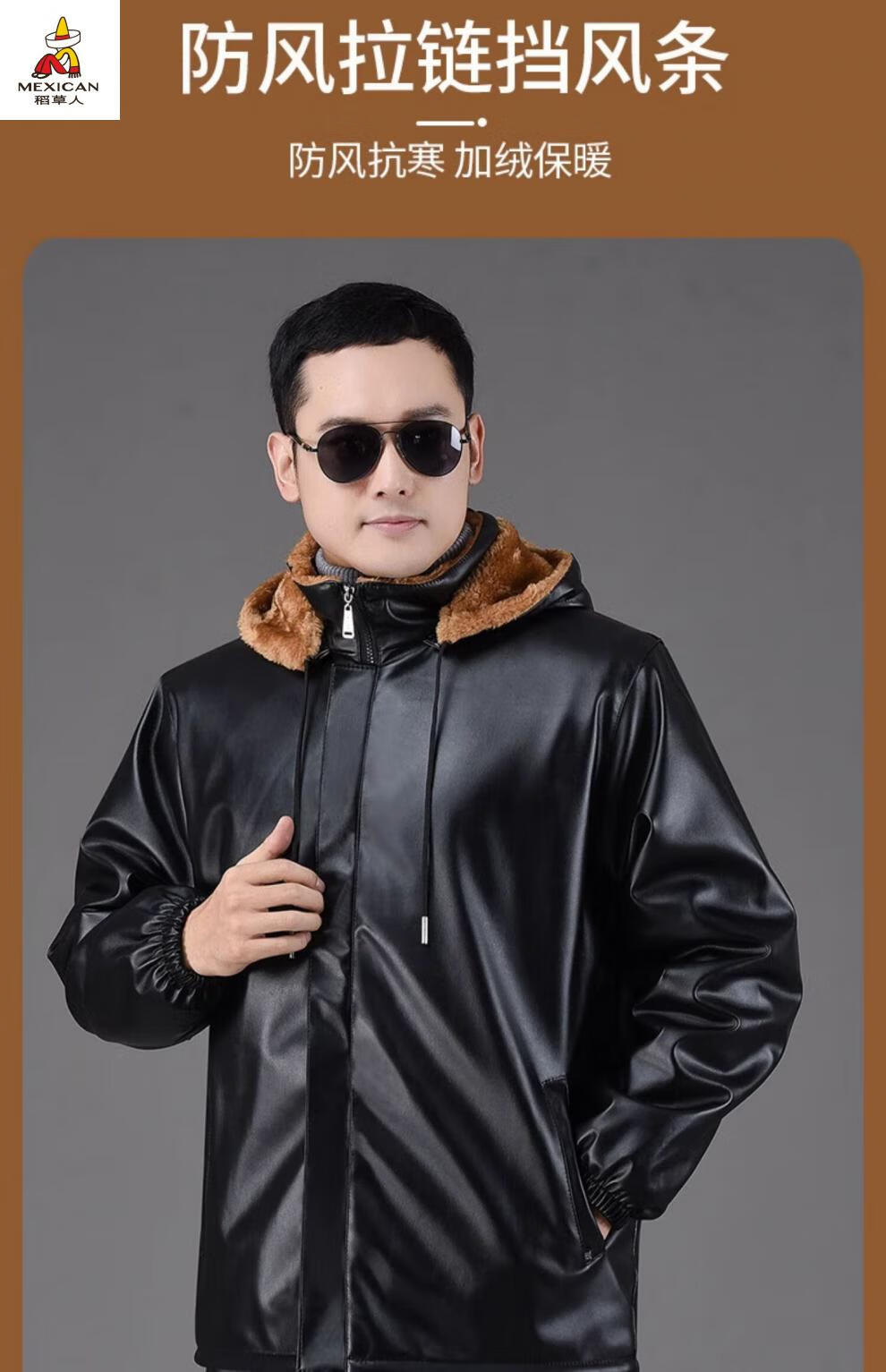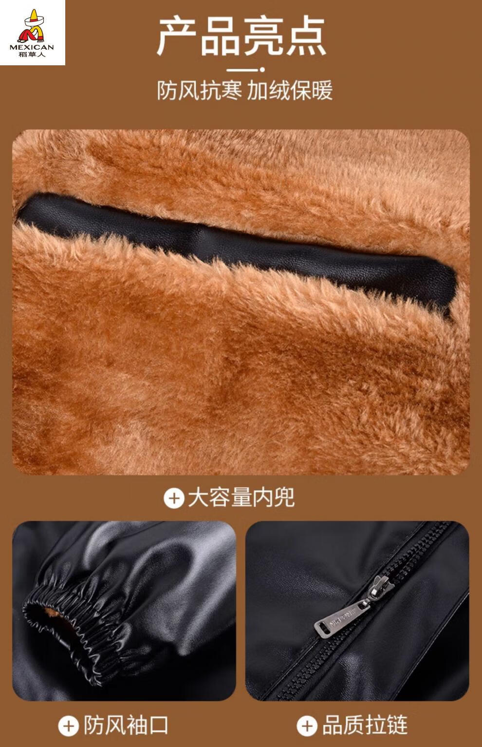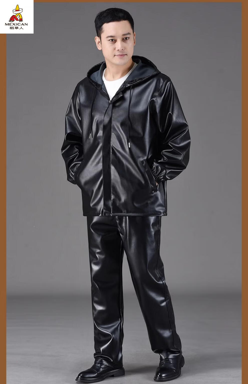 Scarecrow (MEXICAN) Leather Jacket and Leather Pants Suit Plus Velvet Thickened Windproof Warm Waterproof Jacket Motorcycle Cycling Driving Delivery Work Clothes Top + Pants Pack Plus Velvet Plus Velvet XL 90-110Jin Jin is equal to 0.5 kg