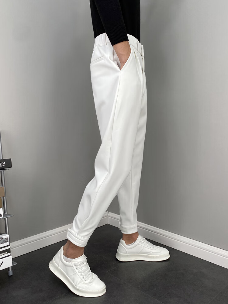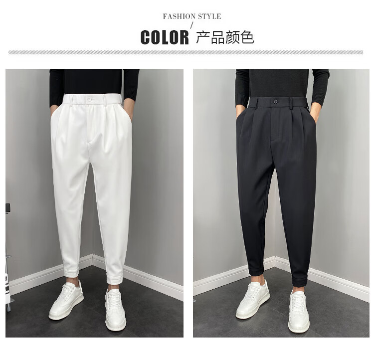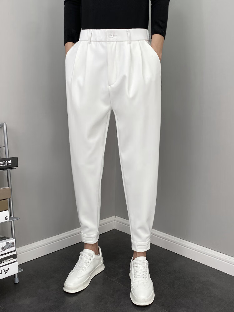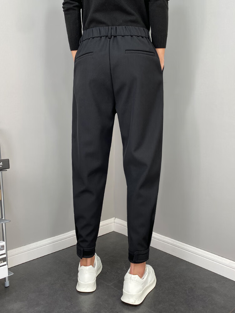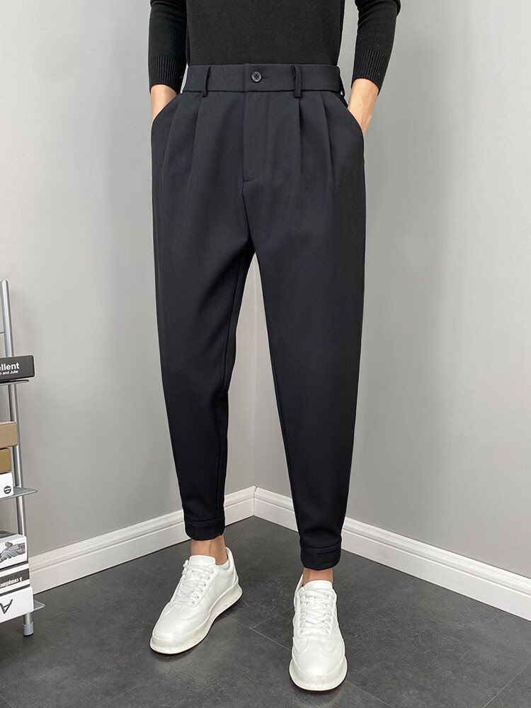 Woodpecker (TUCANO) legged trousers men's autumn and winter harem nine-point casual pants solid color long trousers men's trendy versatile suit trousers black plus velvet 36