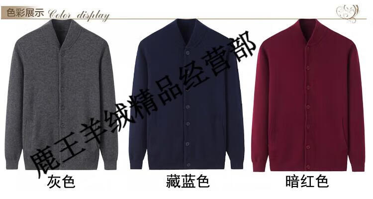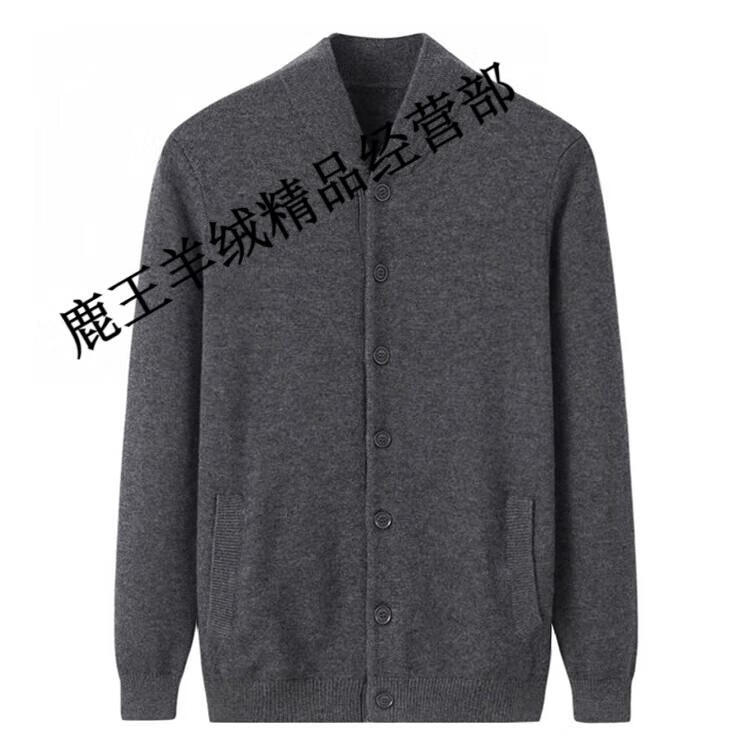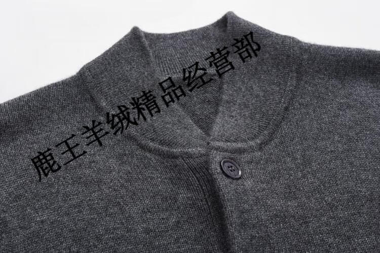 KING DEER middle-aged and elderly men's cashmere sweater stand collar thickened cardigan dad solid color knitted wool large size grandpa warm sweater dark gray XL 180 size 145-165Jin Jin is equal to 0.5 kg