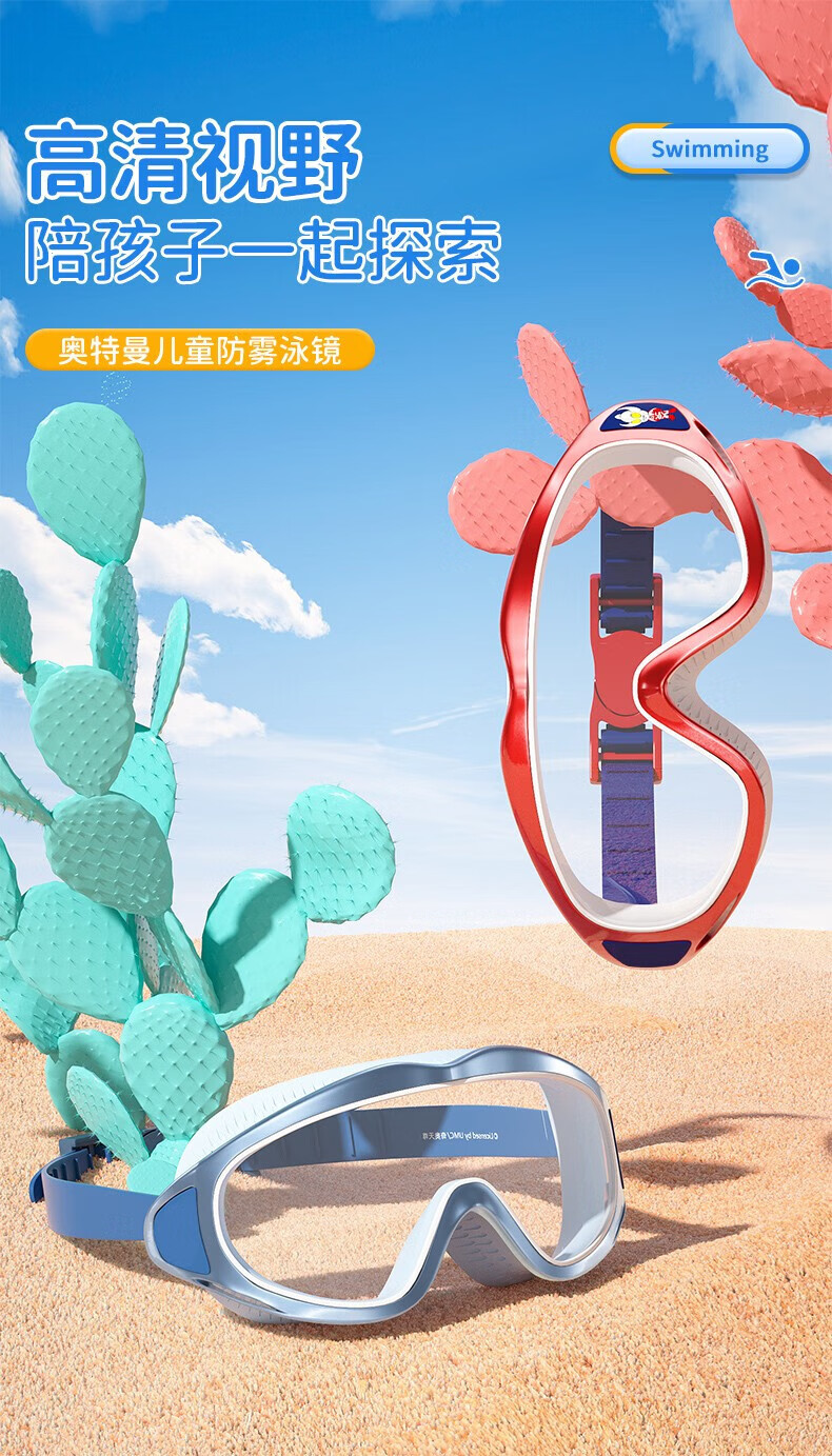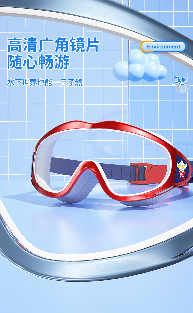 Zailu Classic Ultraman Gafas de natación para niños y niñas HD Impermeables y antivaho Gafas de natación y Gorro de natación Equipo Transparente Azul Claro-Princesa Elsa Little Adecuado para 2-10 años Luz Plana