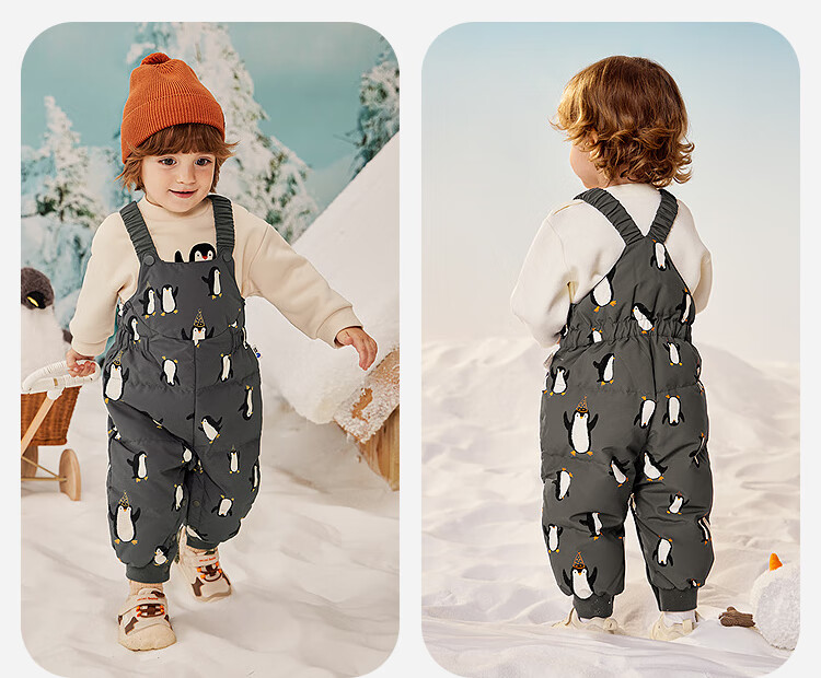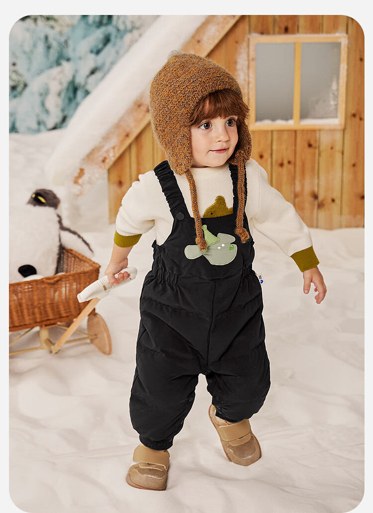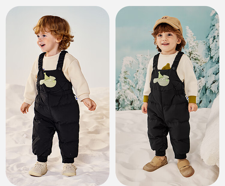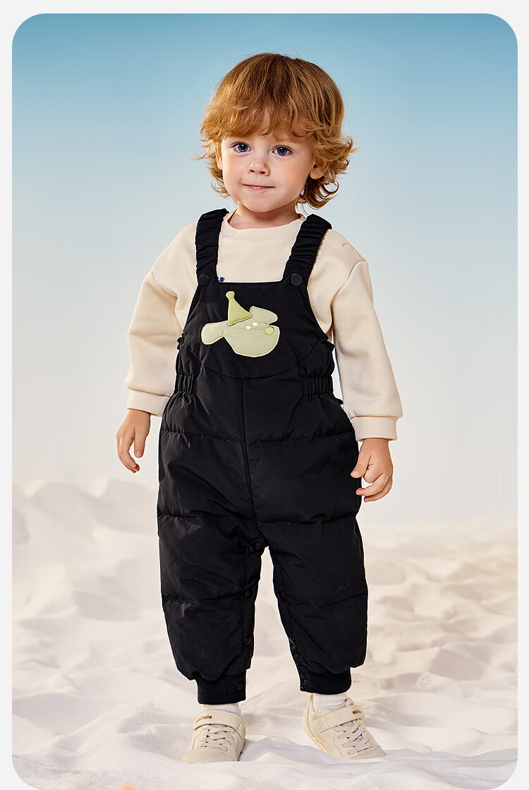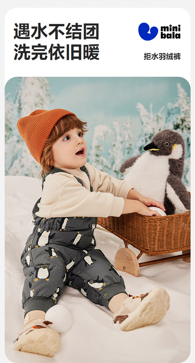 迷你巴拉(minibala)[拒水羽绒]男女童宝宝羽绒裤2025冬新品保暖三防长裤 黑白色调00491 90