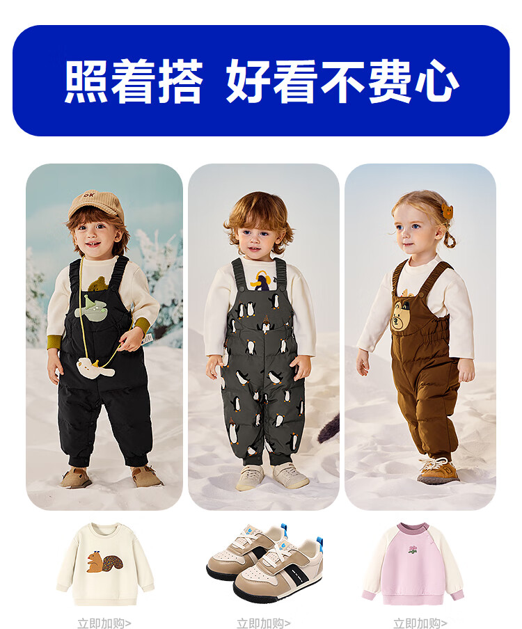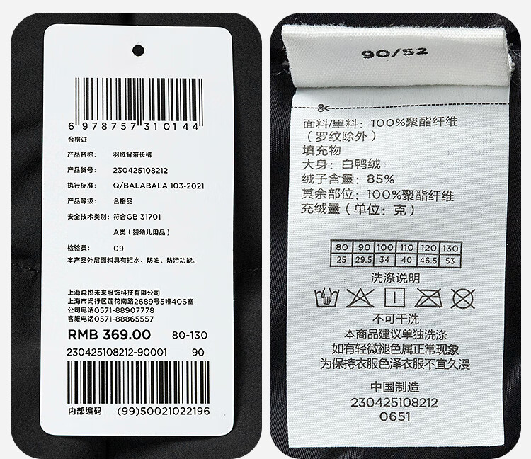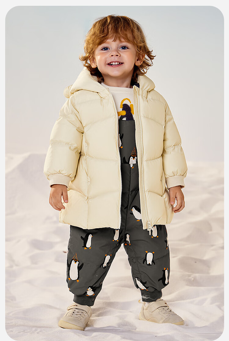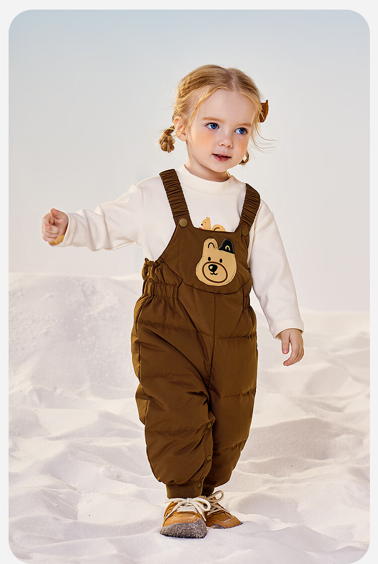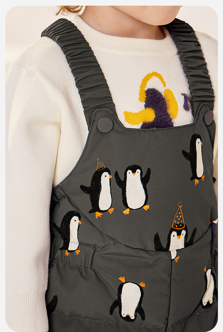 迷你巴拉(minibala)[拒水羽绒]男女童宝宝羽绒裤2025冬新品保暖三防长裤 黑白色调00491 90