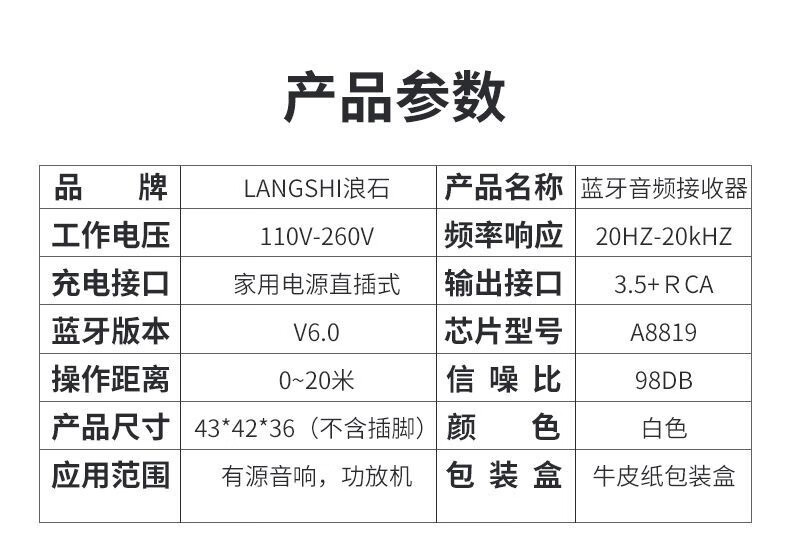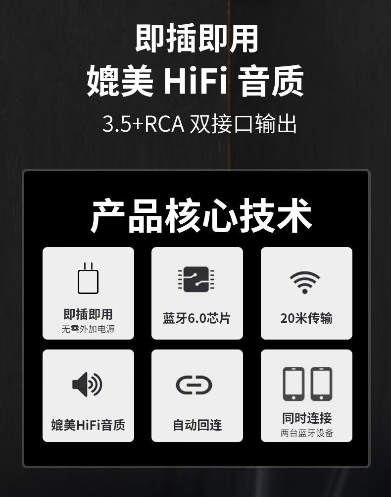 其他品牌6.0蓝牙音频接收器连接音响转接老式功放立体声专用适配改装无线 蓝牙接收器(单机无音频线)