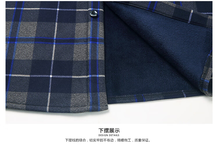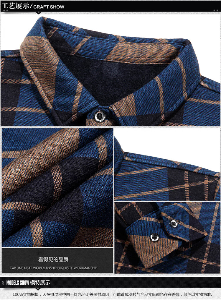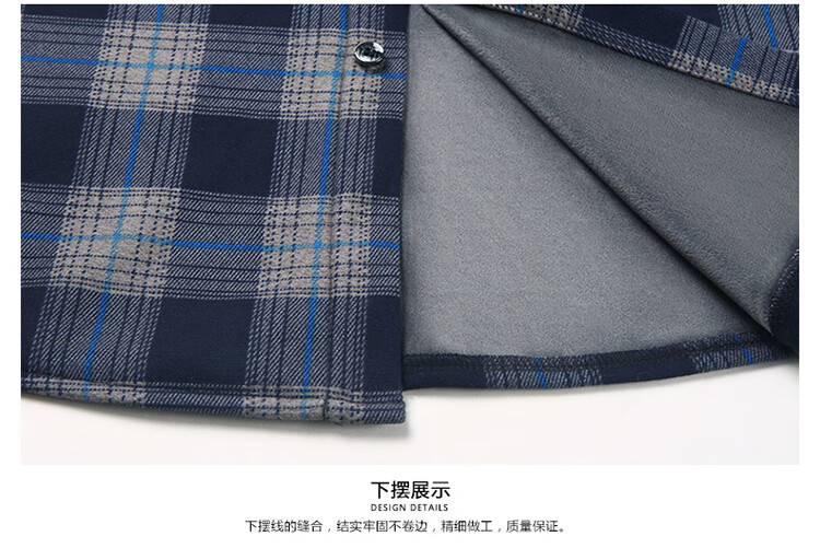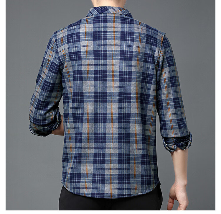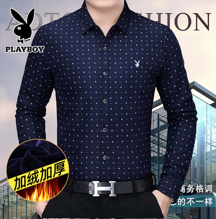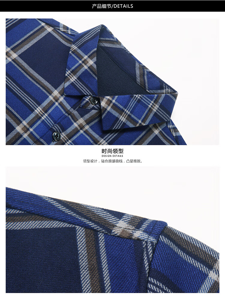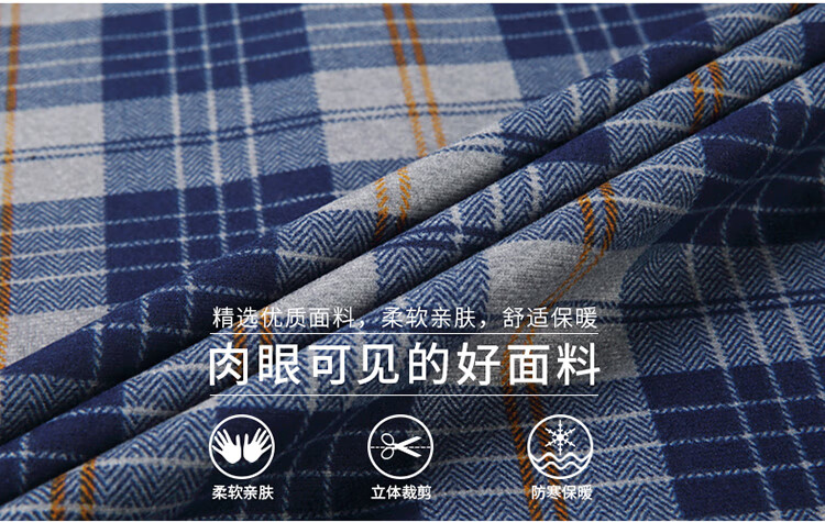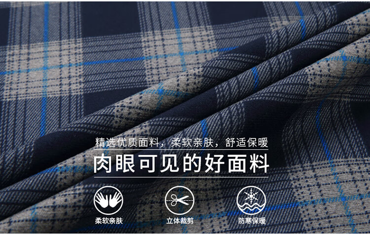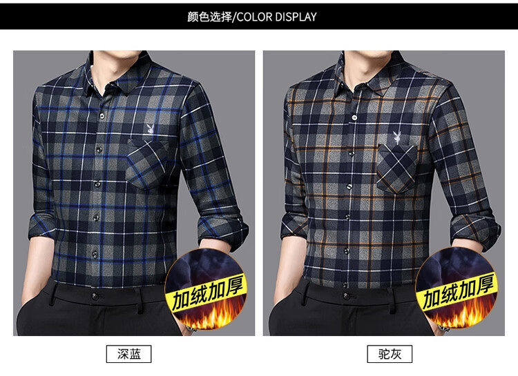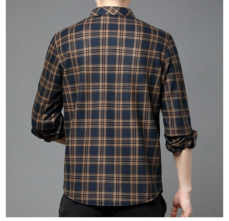 花花公子中年男士保暖衬衫加绒加厚格子长袖纯棉大码爸爸冬装衬衣 蓝色 XL 175【建议130-148斤】