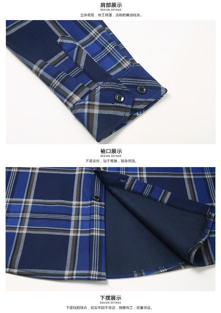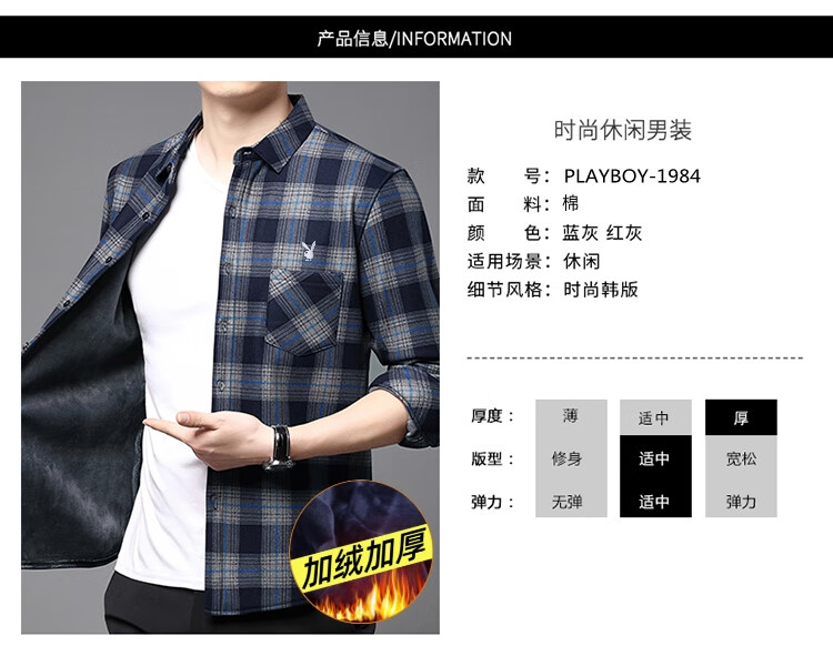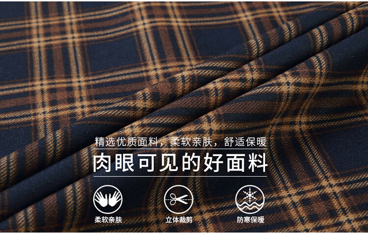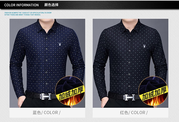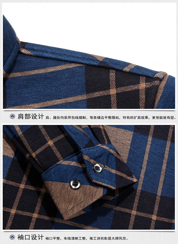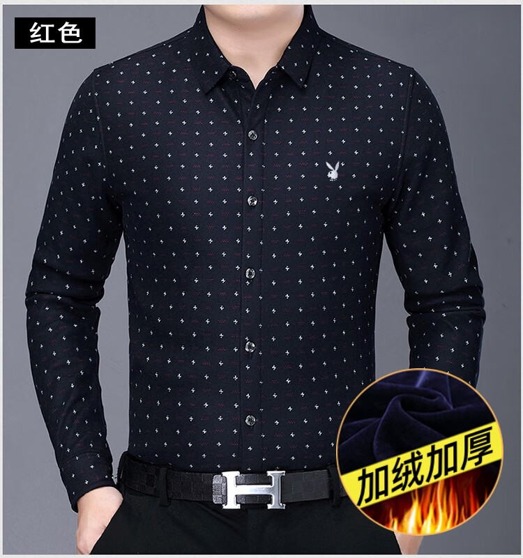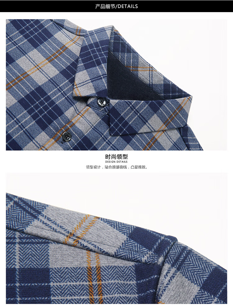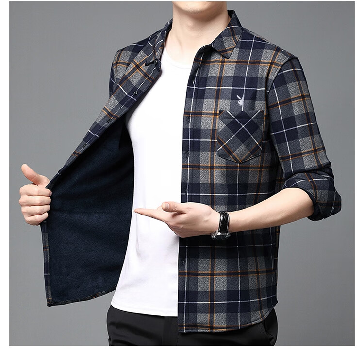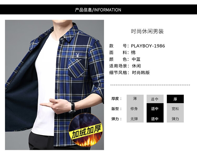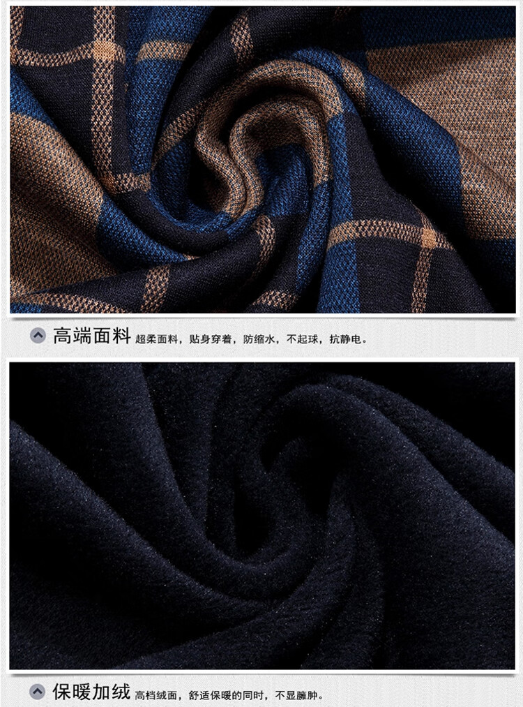 花花公子中年男士保暖衬衫加绒加厚格子长袖纯棉大码爸爸冬装衬衣 蓝色 XL 175【建议130-148斤】