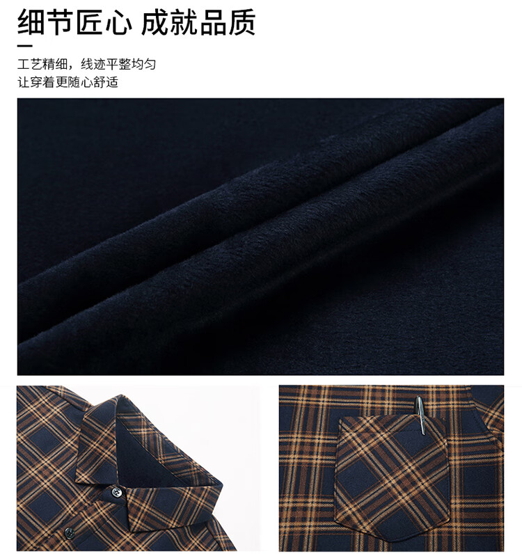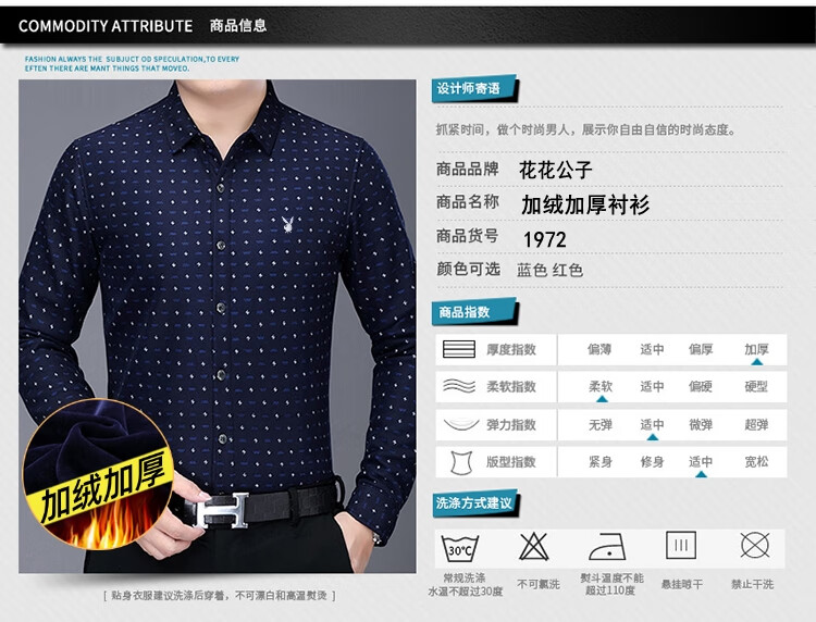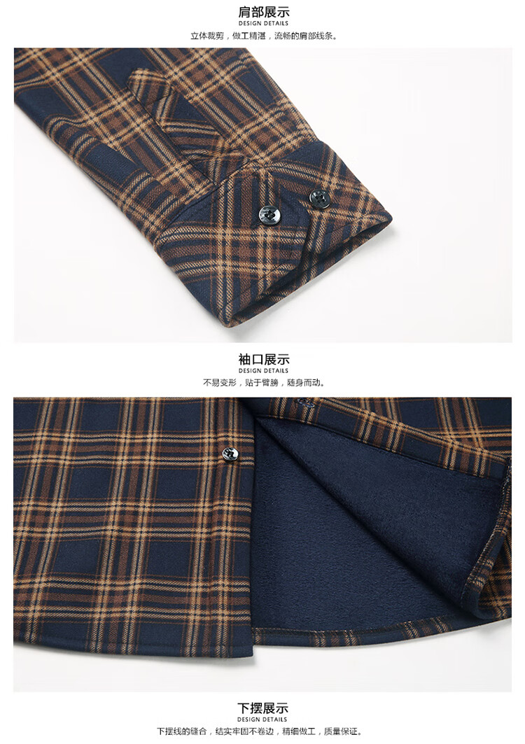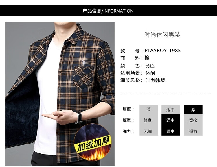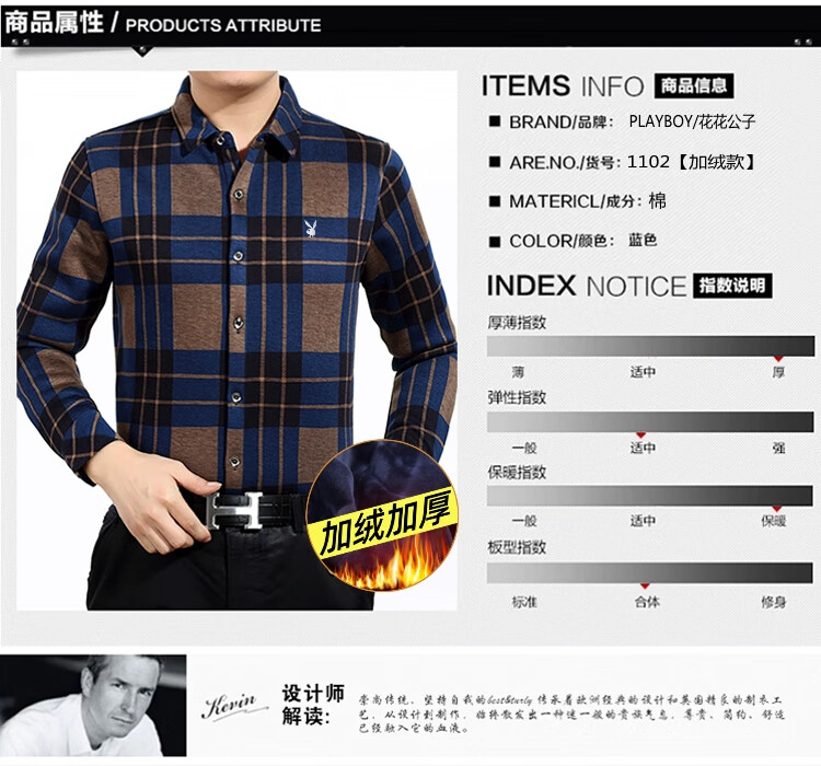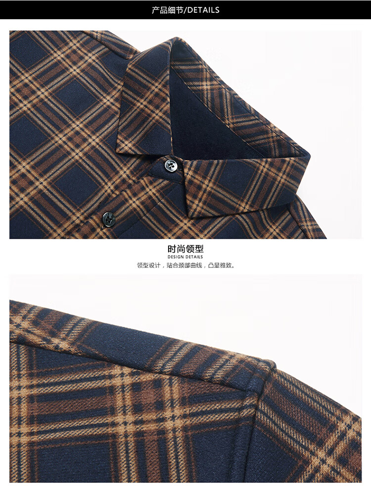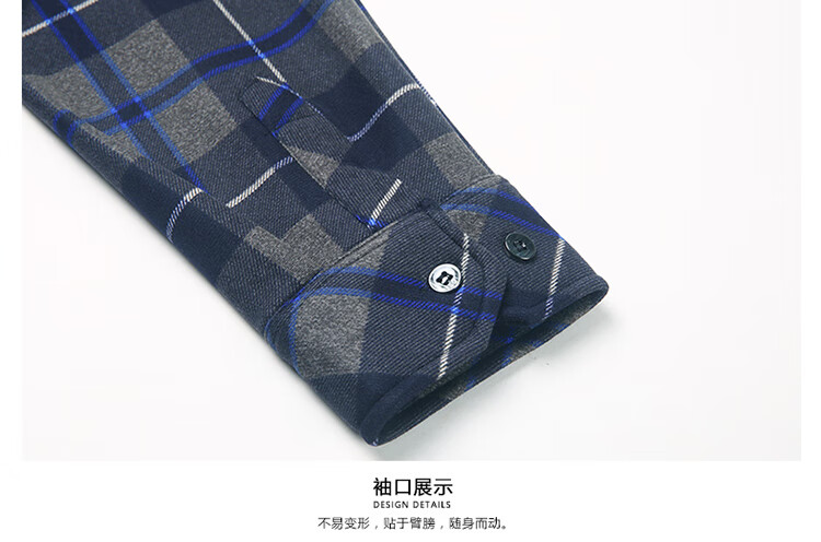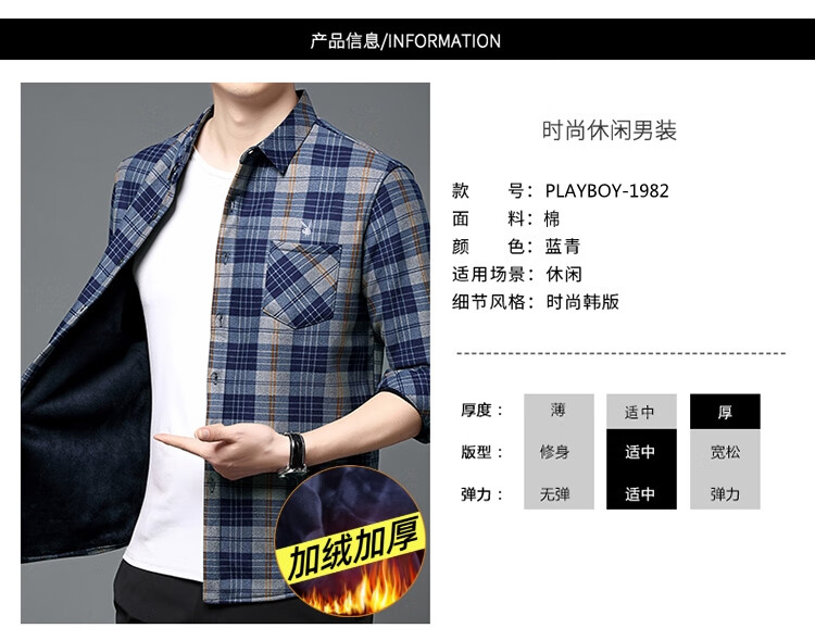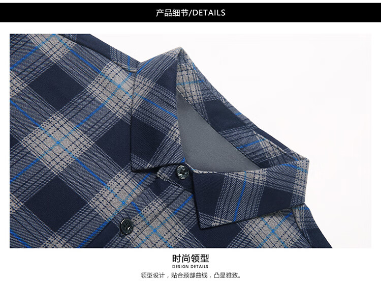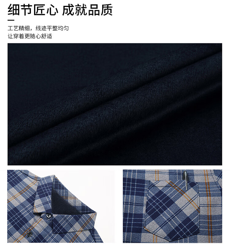 花花公子中年男士保暖衬衫加绒加厚格子长袖纯棉大码爸爸冬装衬衣 蓝色 XL 175【建议130-148斤】