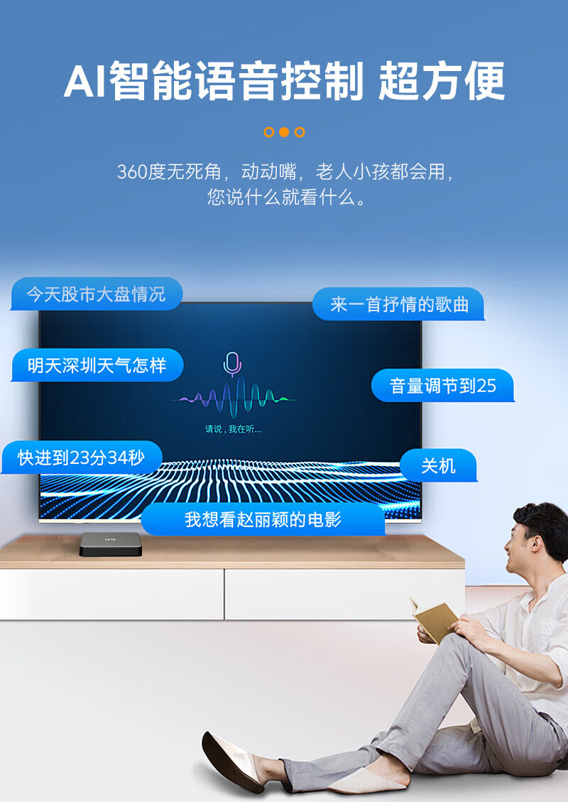 鲸威网络机顶盒电视盒子终身免费会员高清央卫视智能无线wifi网络播放 语音款【8G高清版+语音换台】