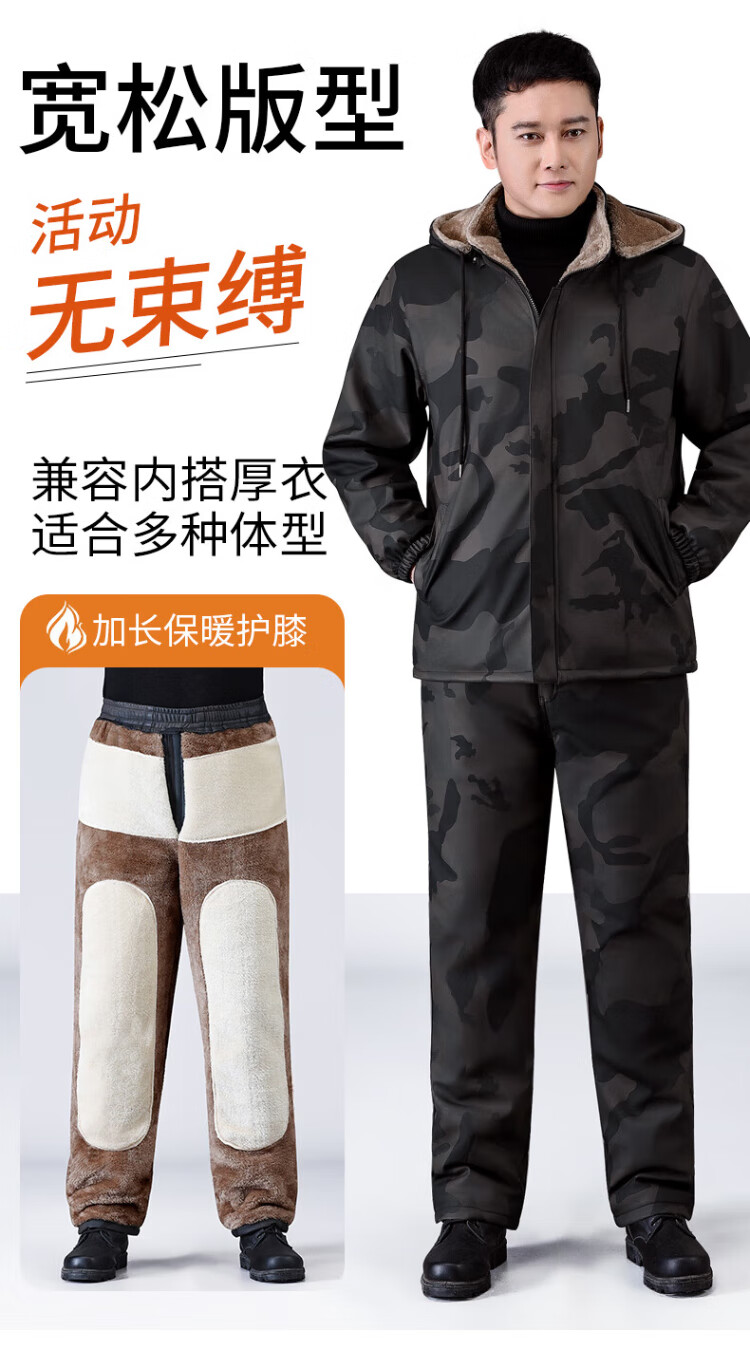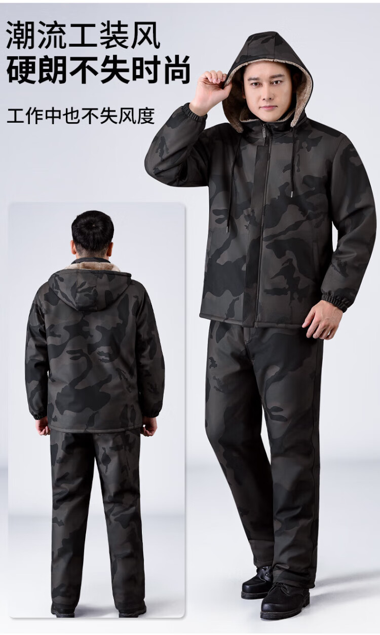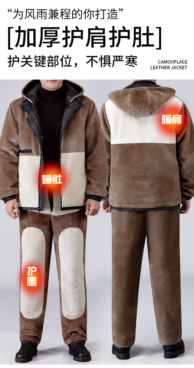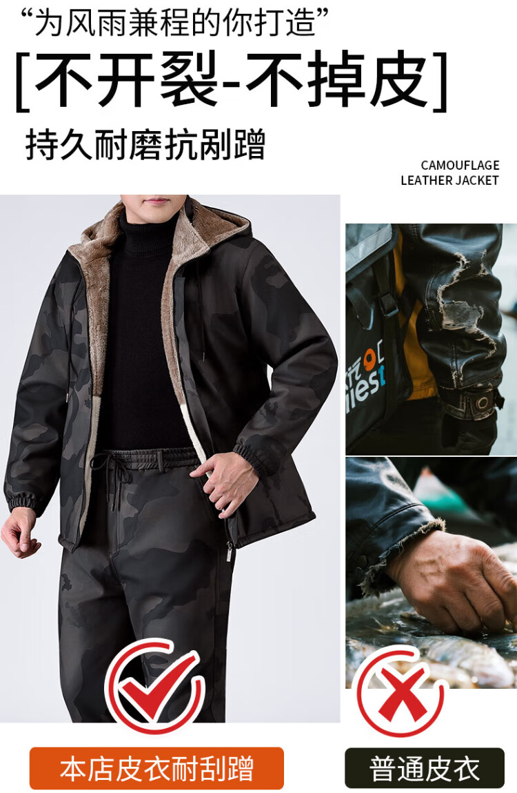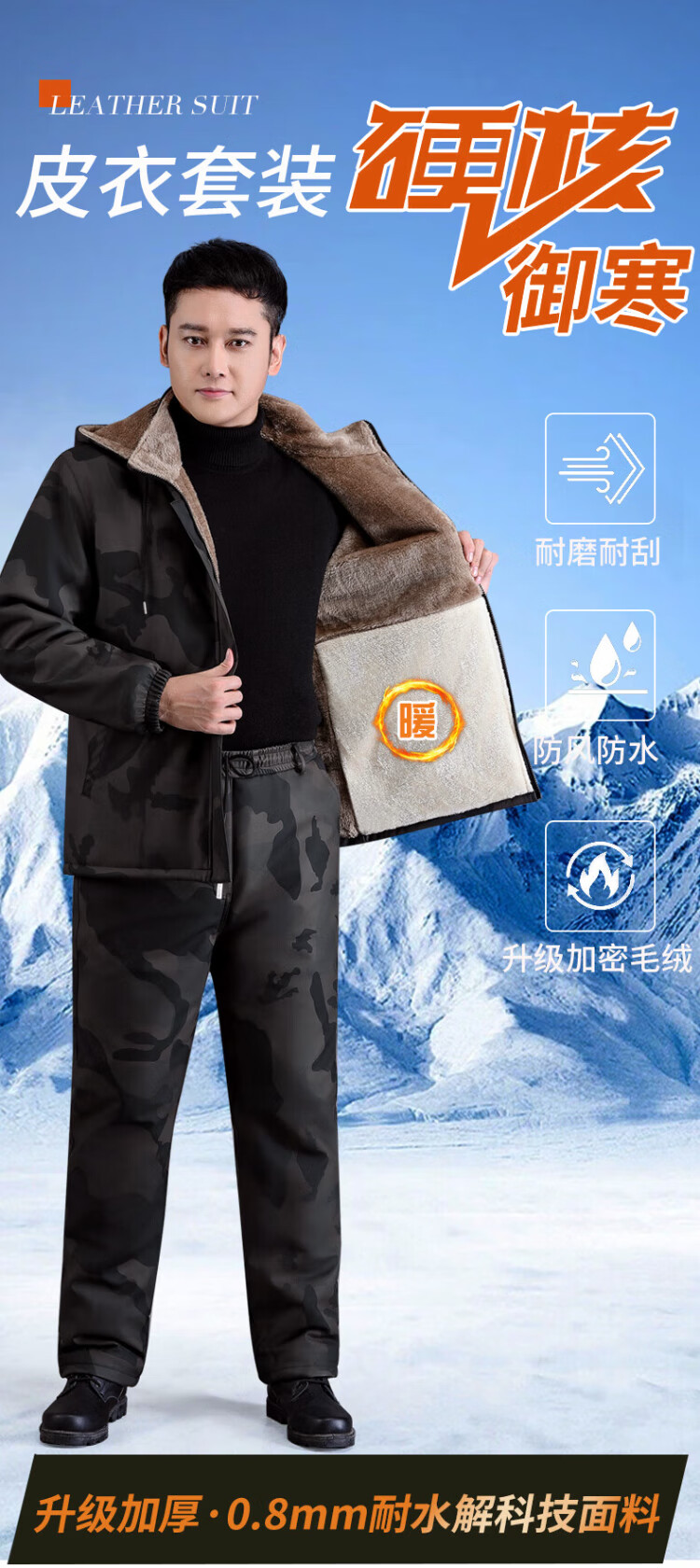 励阳2025新款迷彩皮衣男外套冬季加绒加厚防水防油工作服皮衣皮裤套装 迷彩护肩护肚皮衣 5XL 【180-200斤】