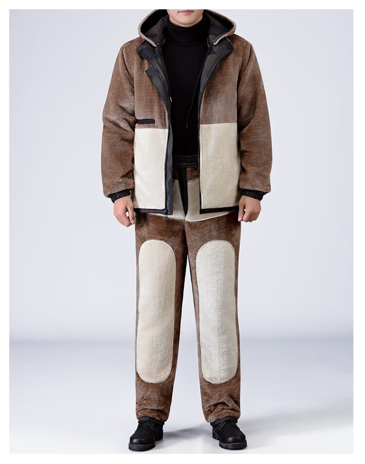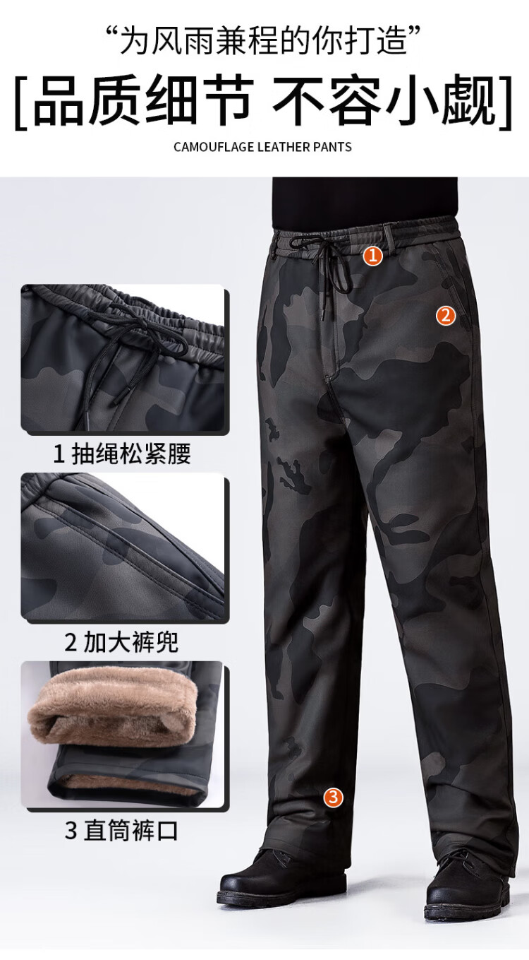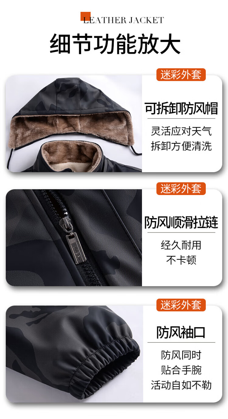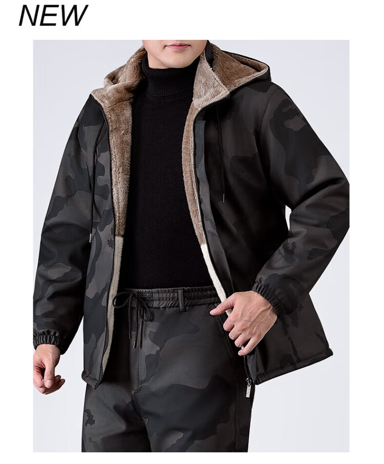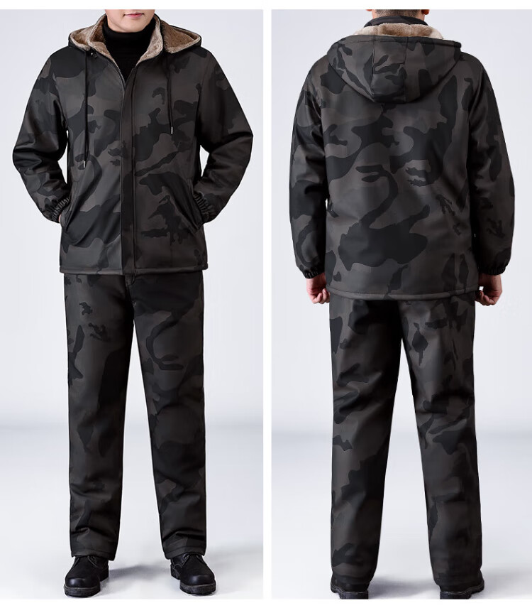 励阳2025新款迷彩皮衣男外套冬季加绒加厚防水防油工作服皮衣皮裤套装 迷彩护肩护肚皮衣 5XL 【180-200斤】