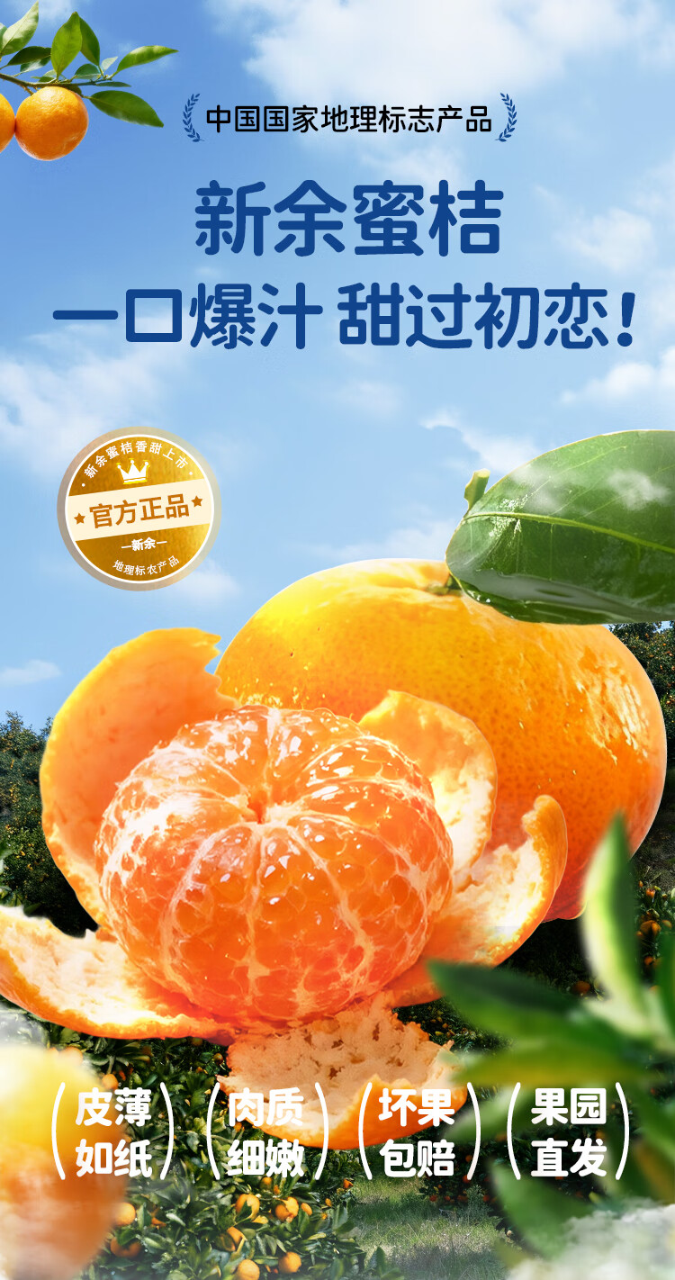 Xinyu mandarine fruits frais mandarine mandarine fraîche mandarine mandarine mandarine verger droit mandarine fraîche mandarine coffret cadeau 5 Jin Jin équivaut à 0,5 kg Pack de partage (poids net 4,5 Jin Jin équivaut à 0,5 kg) 80 % des personnes choisissent 40-50 mm 5A est très doux