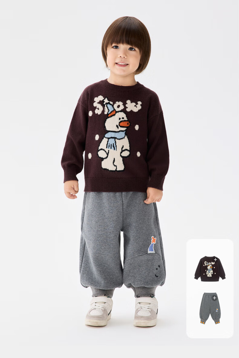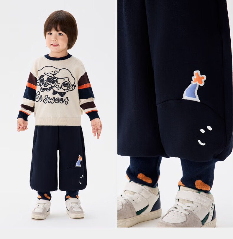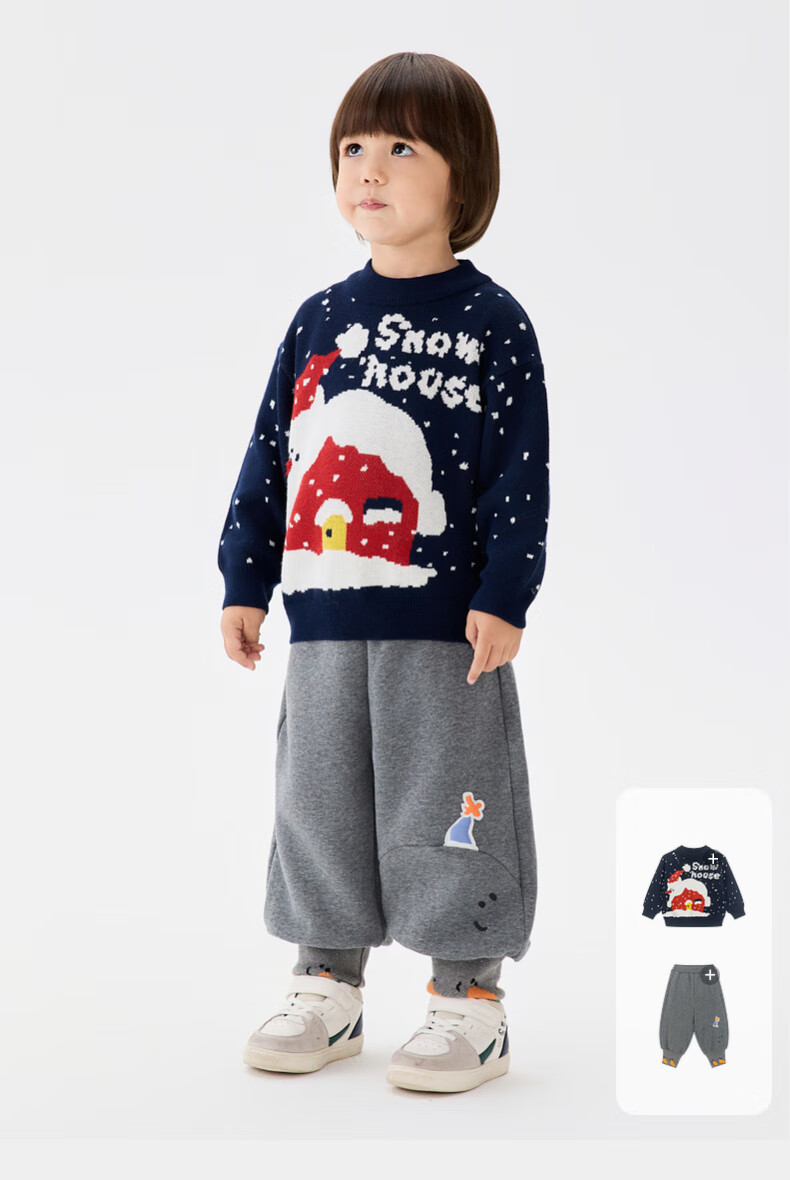 M.Latin Maratin children's pants 25 winter new style fun carrot nose snowman knitted trousers blue and black 100