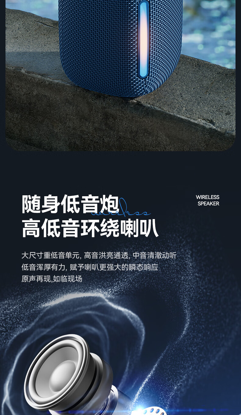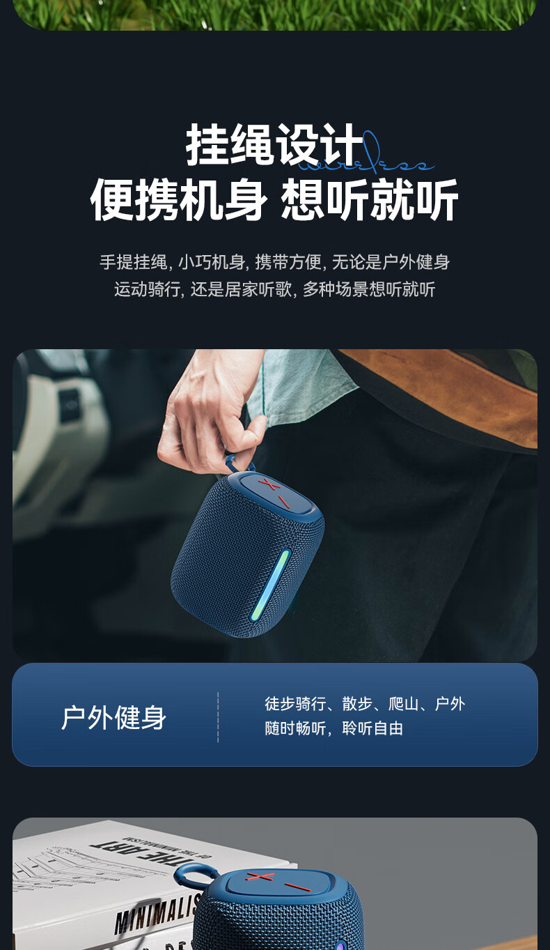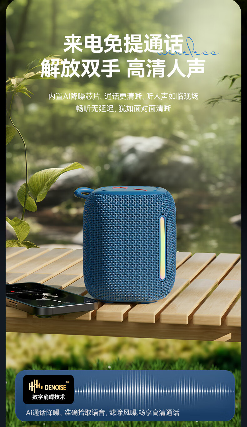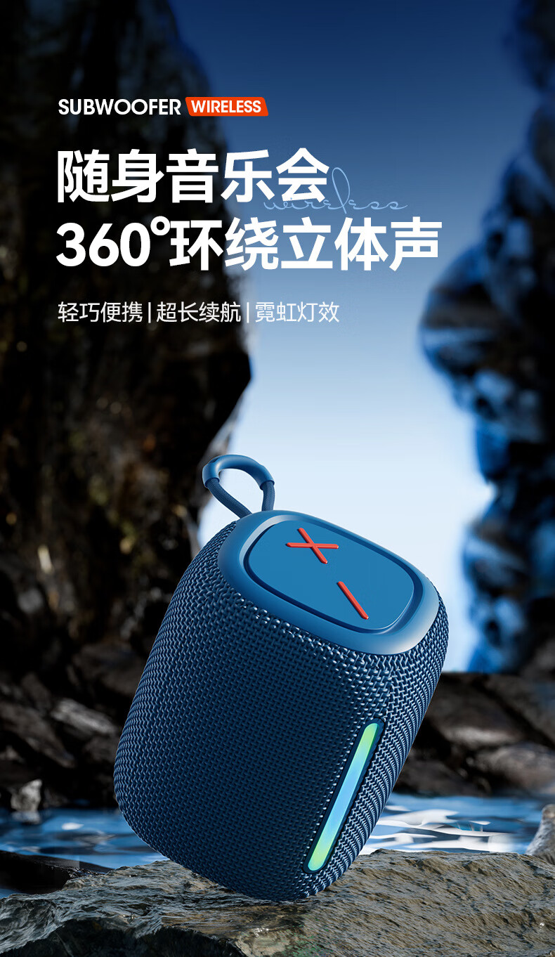 LORB德国柏林之声迷你蓝牙音箱家用无线音响户外防水便携多功能低音炮 蓝色【HiFi音质+插卡U盘+高清语音通话】