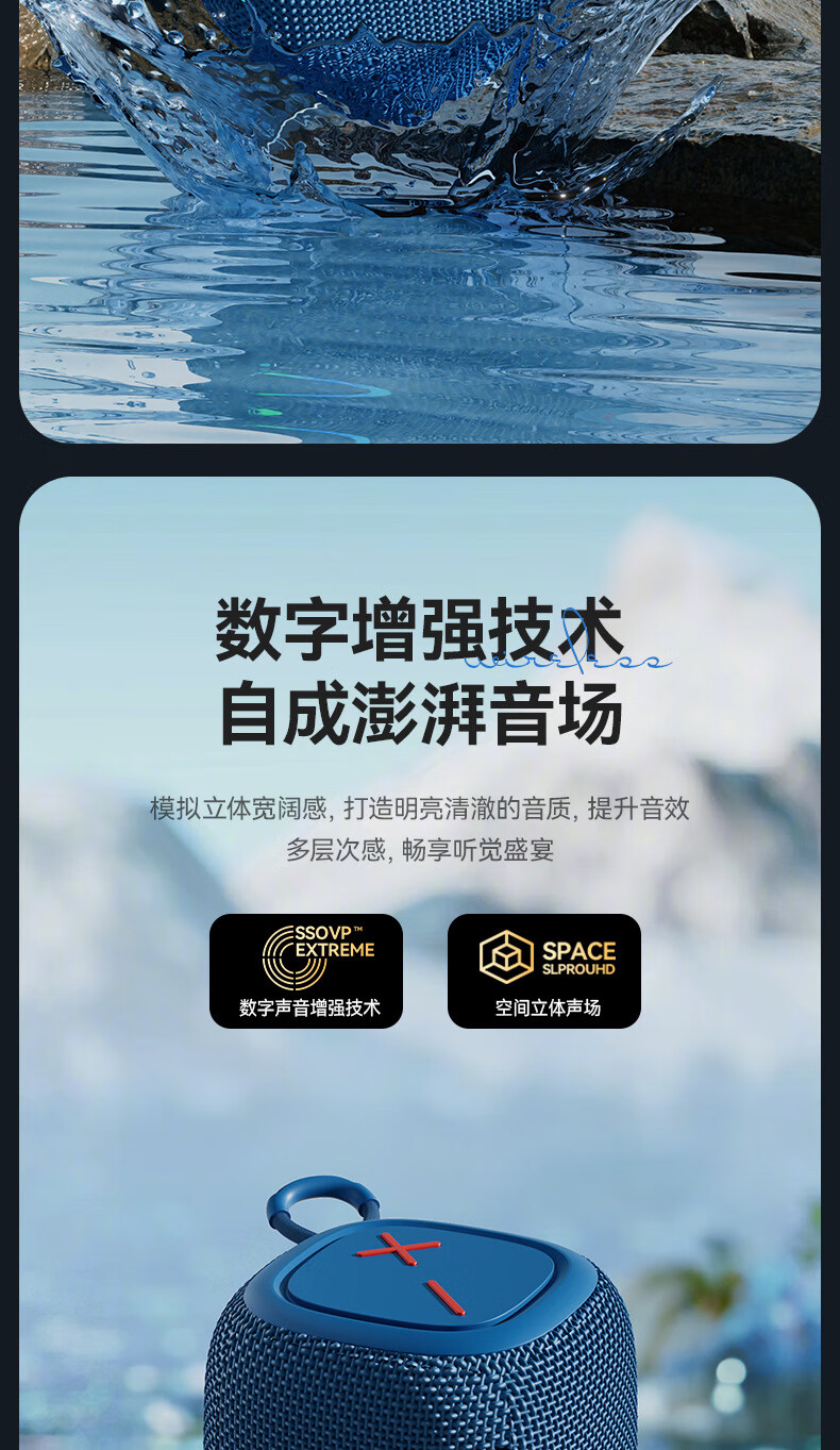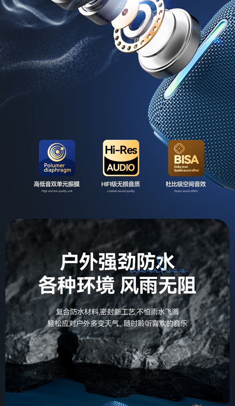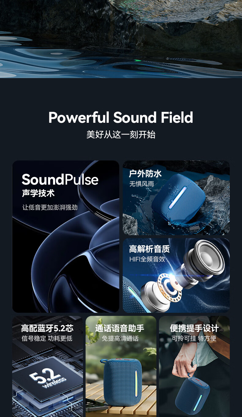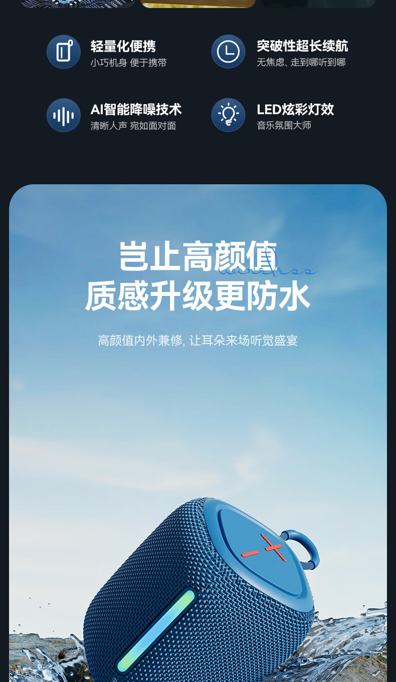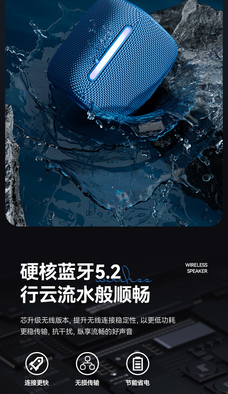 LORB德国柏林之声迷你蓝牙音箱家用无线音响户外防水便携多功能低音炮 蓝色【HiFi音质+插卡U盘+高清语音通话】
