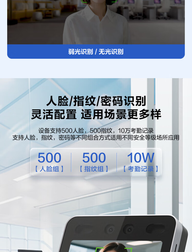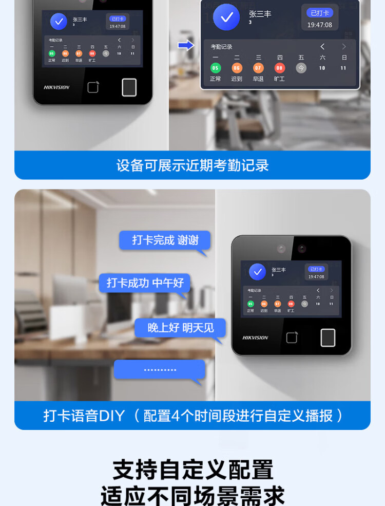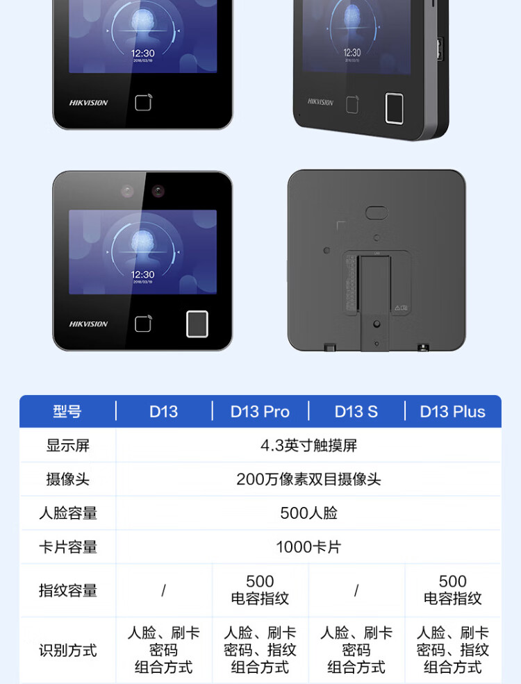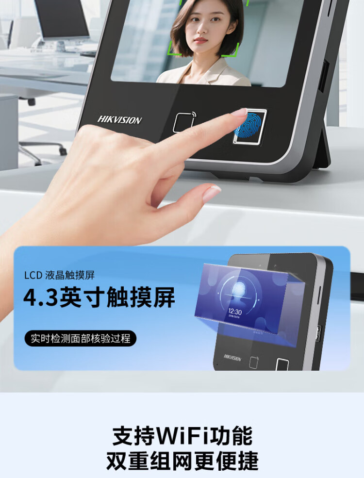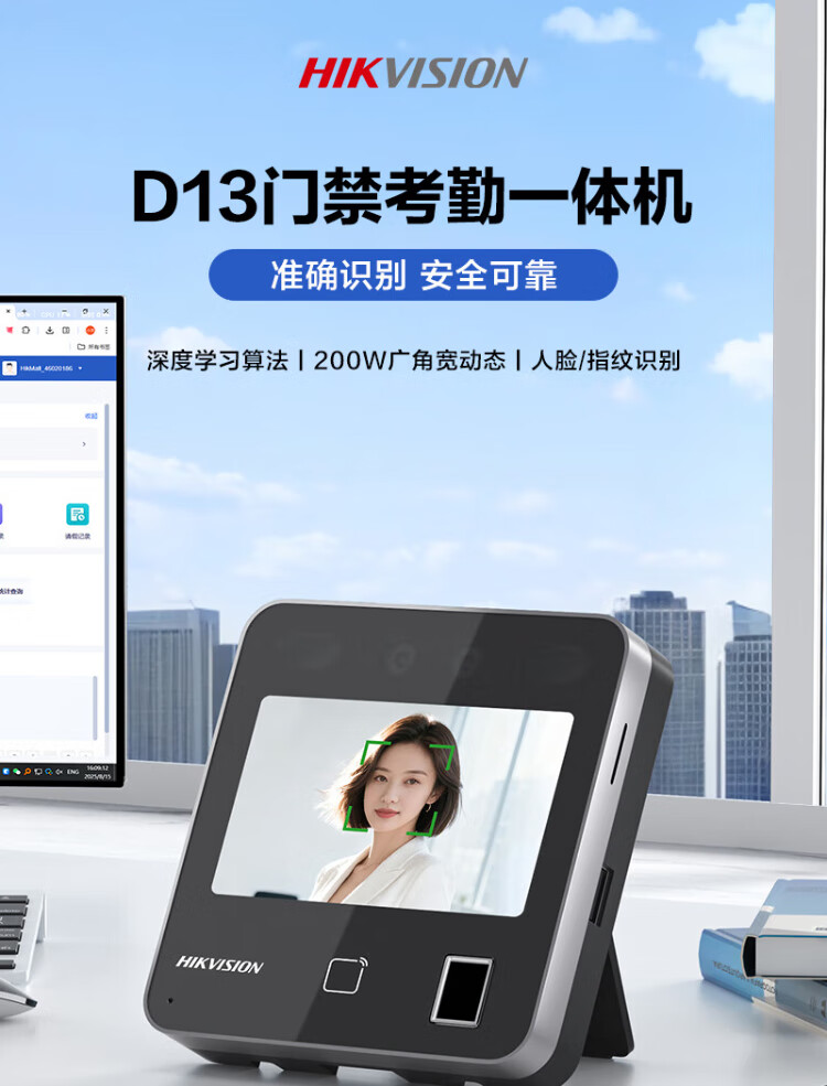 Hikvision Face Time Attendance Access Control All-in-one Commuting Face Fingerprint IC Card Punch Machine Access Control Switch Video Intercom Host Company Organization D13 Series D13S Face Swipe Card Cable Version + WiFi Package 2 Double-Opening Wooden Doors and Iron Doors