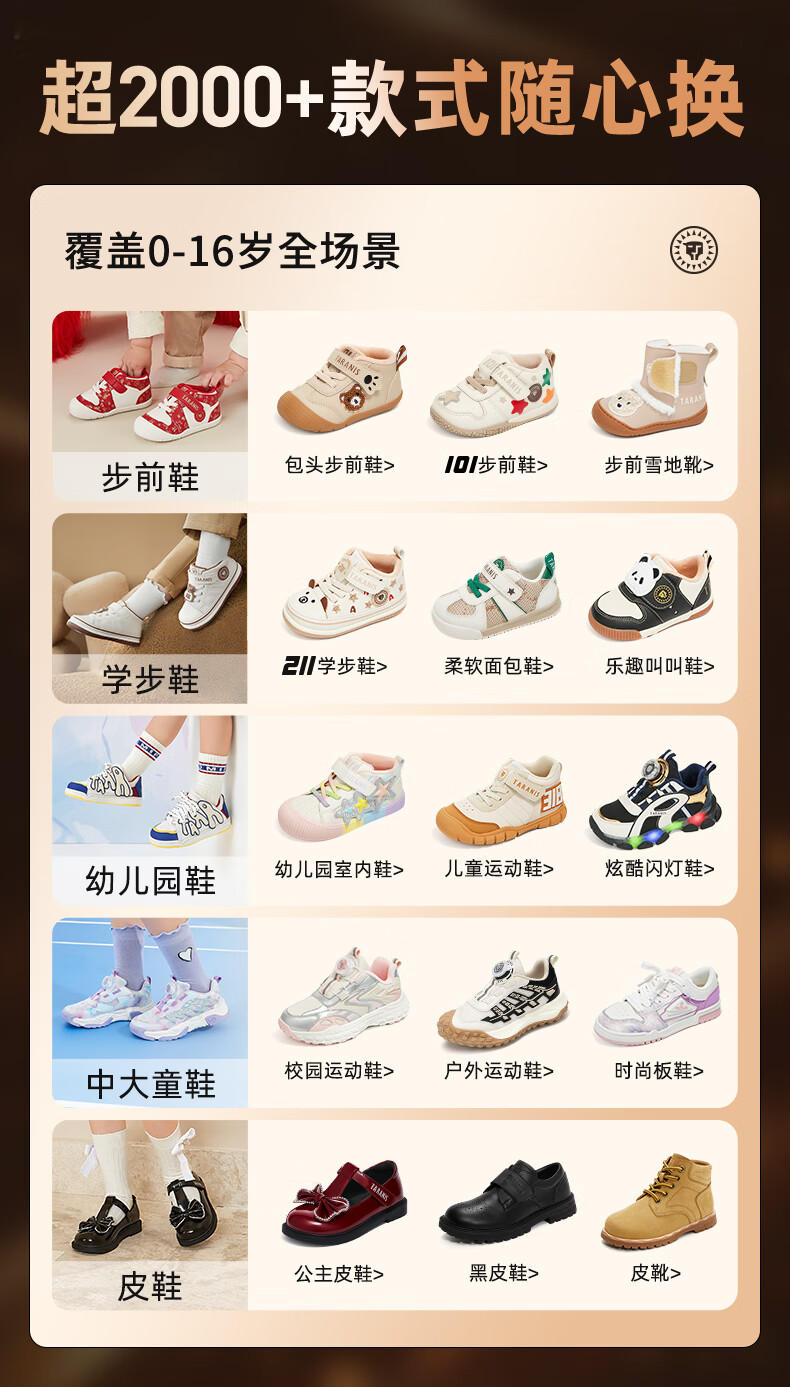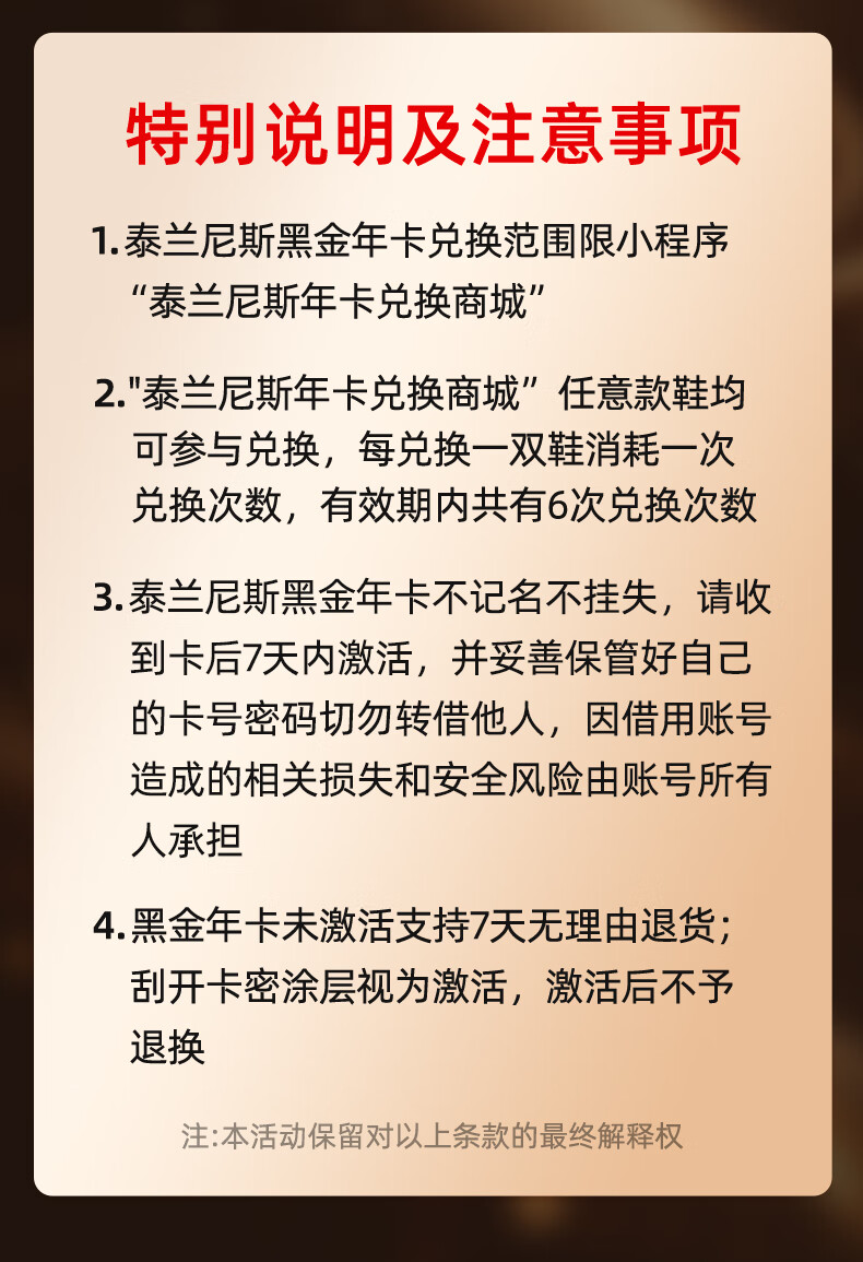 泰兰尼斯outlets精选童鞋黑金年卡0-16岁1卡通兑6双鞋1年有效