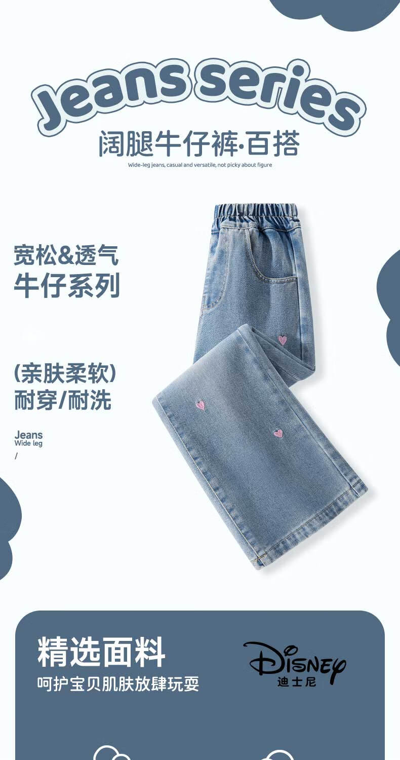 Disney Children's Clothing Girls Autumn Sweatshirt Set 2025 New Fashion Versatile Children's Autumn Clothing Korean Style Jeans Diluopao Taro Purple + Solid Color Sea Salt Blue 120