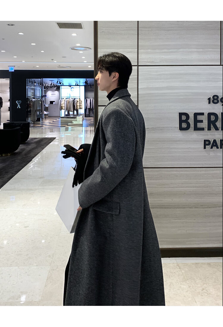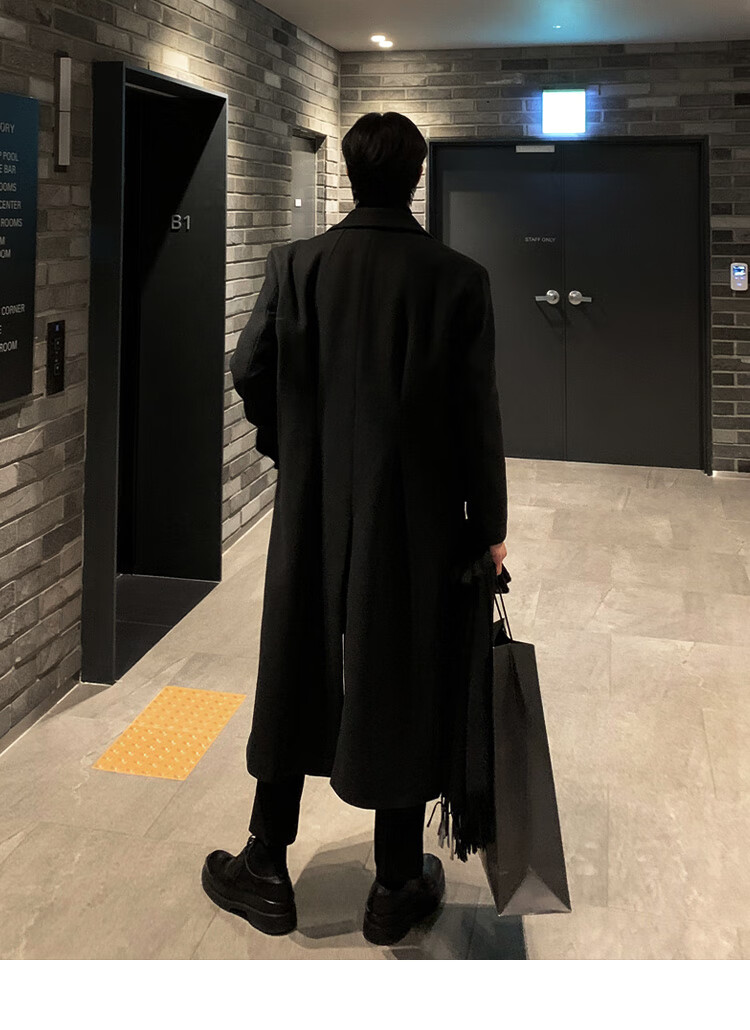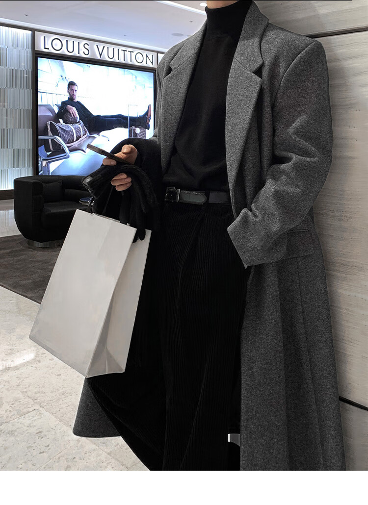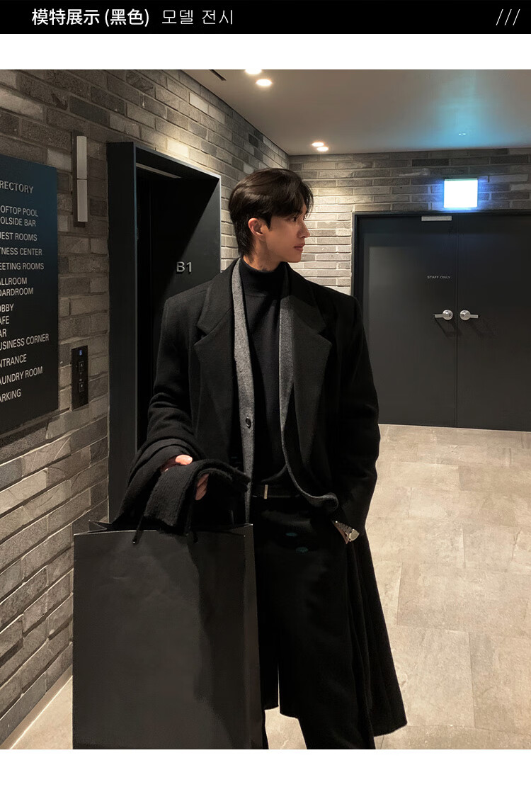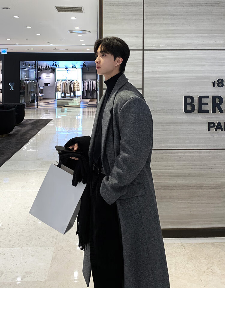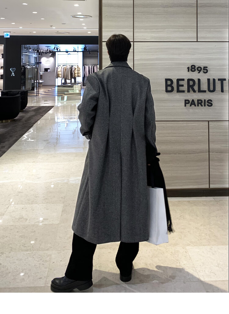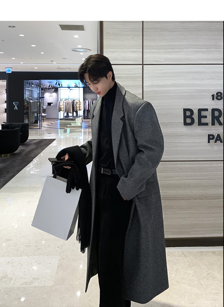 皮尔卡丹(pierre cardin)春秋韩版美拉德毛呢大衣男感中长款垫肩风衣过膝宽松呢子外套 咖啡色(加棉里衬) XL