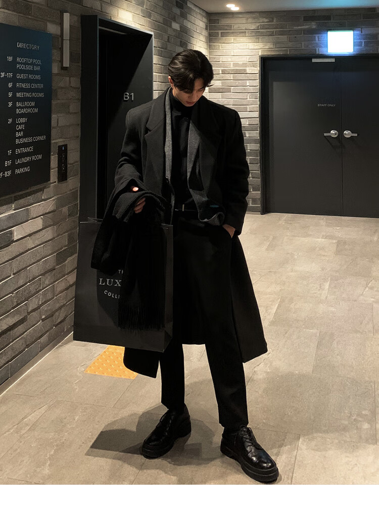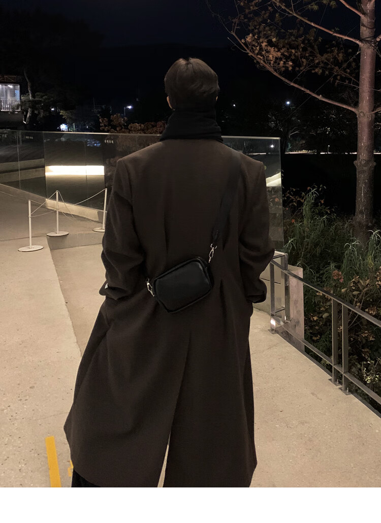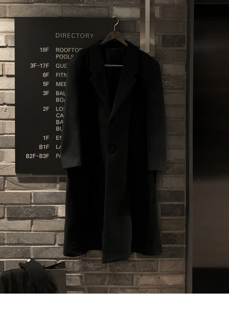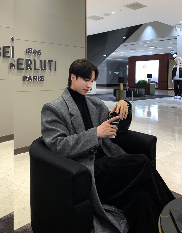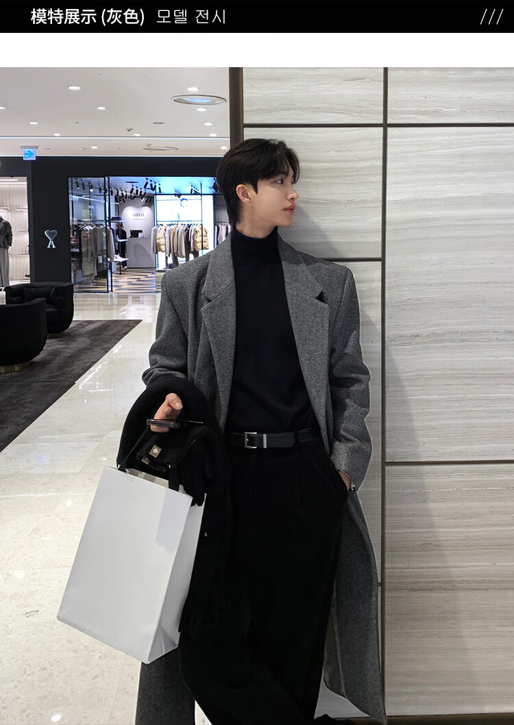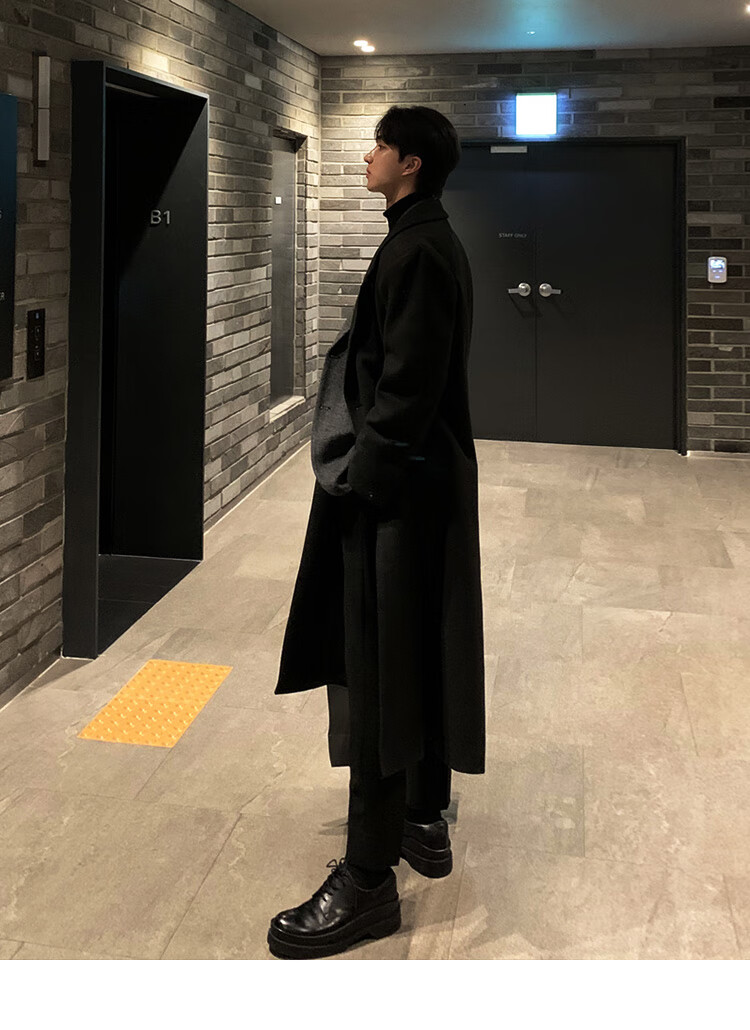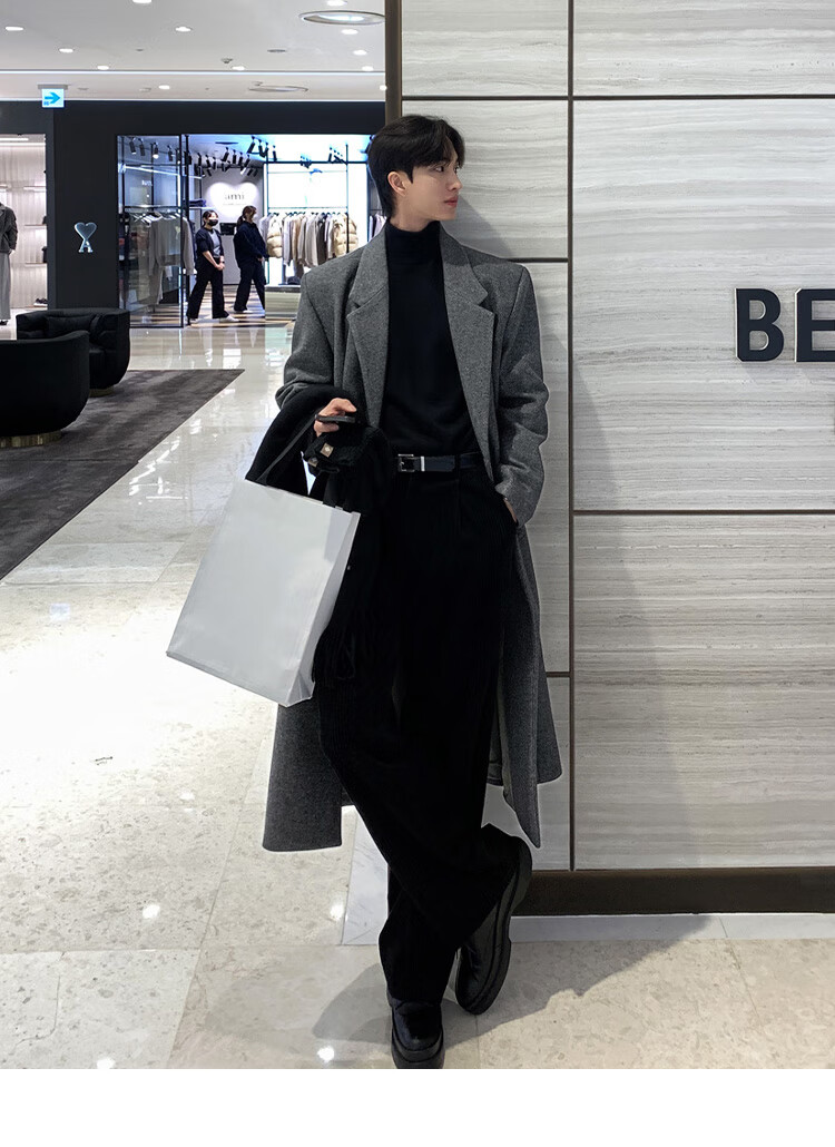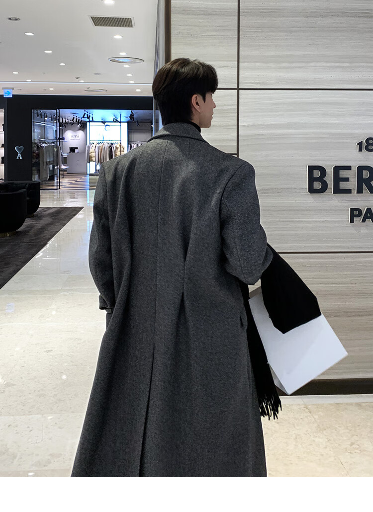 皮尔卡丹(pierre cardin)春秋韩版美拉德毛呢大衣男感中长款垫肩风衣过膝宽松呢子外套 咖啡色(加棉里衬) XL
